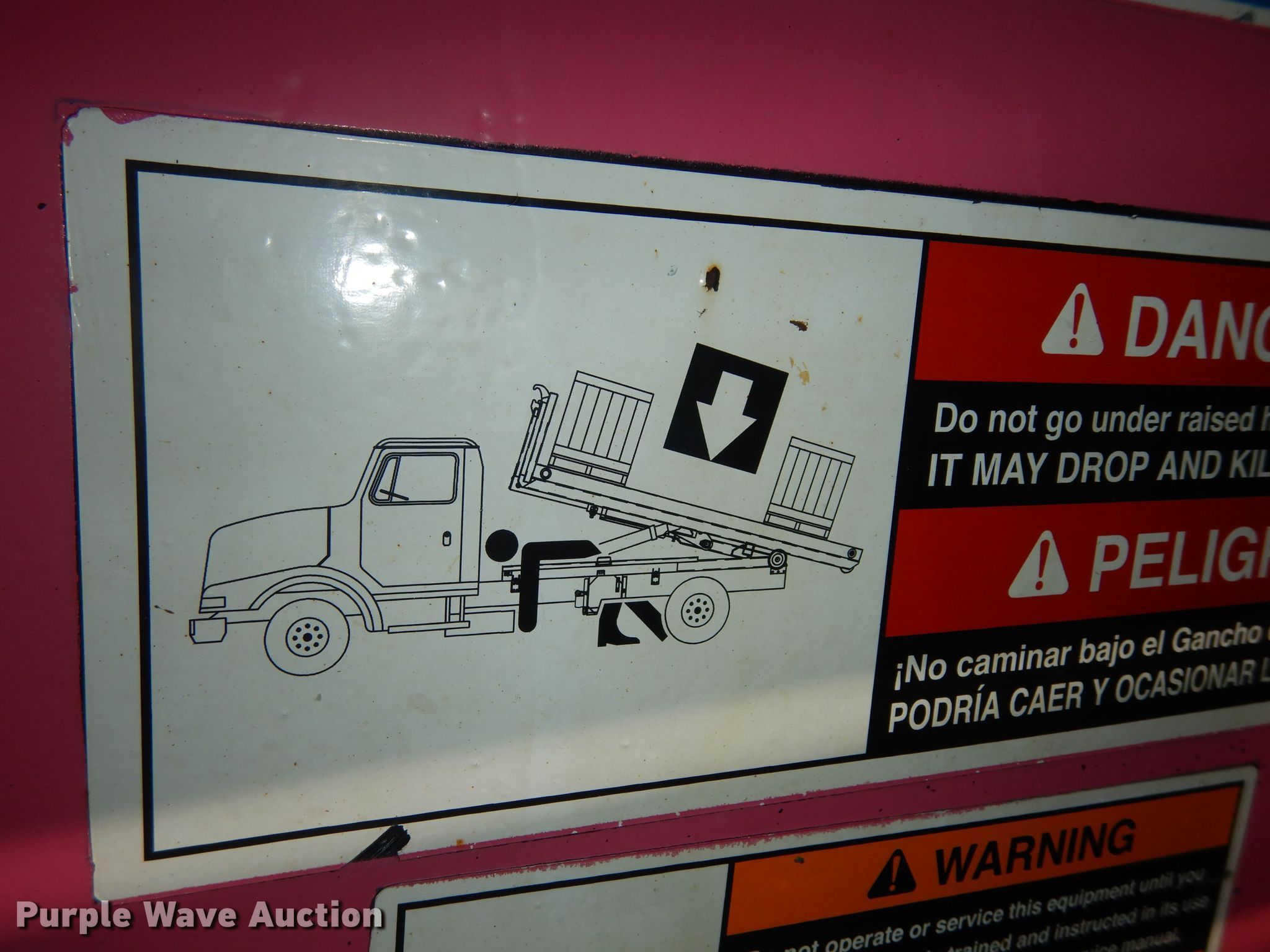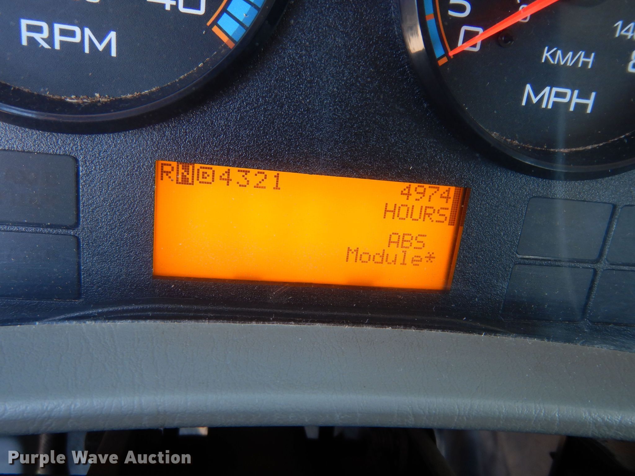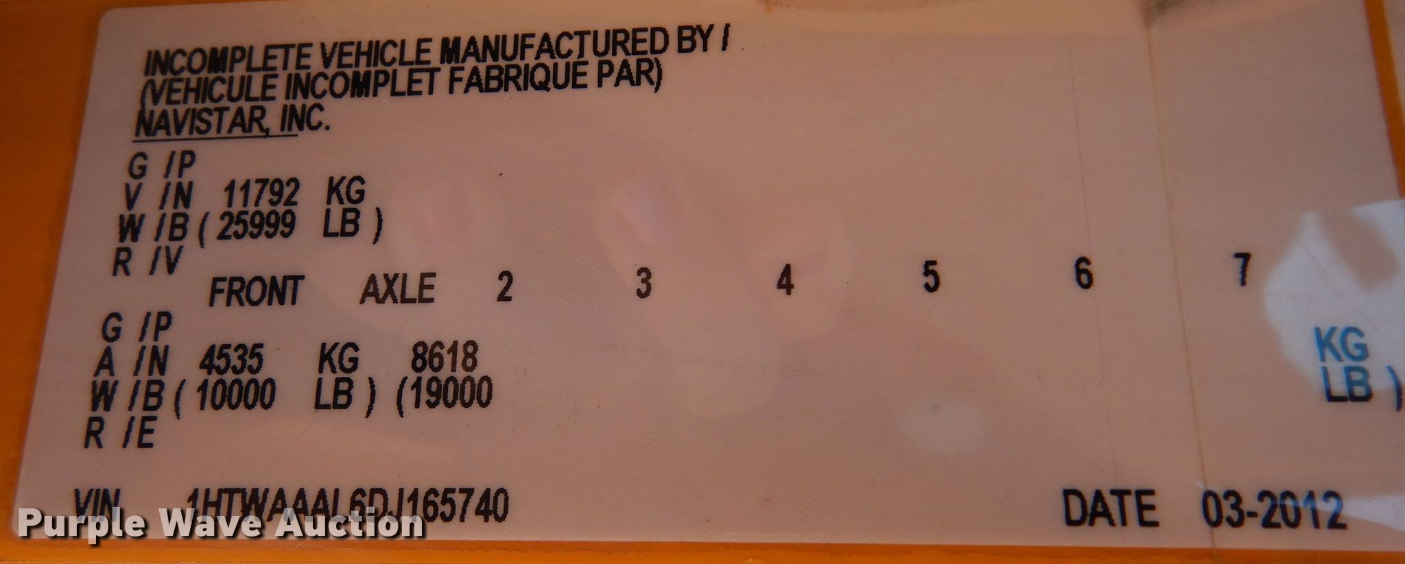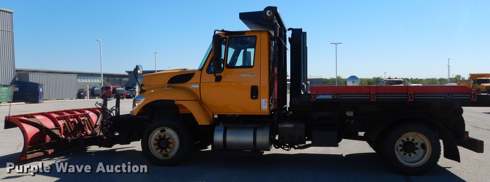 2013 International WorkStar 7300 hook lift truck. Miles: 110,792 on odometer, Hours: 4,974 on meter, VIN: 1HTWAAAL6DJ165740, Unit #: 10094. Engine Displacement: 7.6L, Cylinders: 6, Fuel type: Diesel. Transmission Allison, Automatic. Chassis Axles: Single, Suspension: Spring, Brakes: Air, GVWR: 25,999 lbs, Wheelbase: 171". Interior AC, Heat, Heated mirrors, Cruise control, Power mirrors. Features Hook lift bed Ram: Double, Jensen FB flatbed 12' L x 93" W, Tail length: 2', Removable sides, Front mount PTO, Plow Width: 10'W. Tires Size: 255/79R22.5. Notes Dash warning indicator: ABS. Kansas title. Douglas County. Lawrence, KS 66044