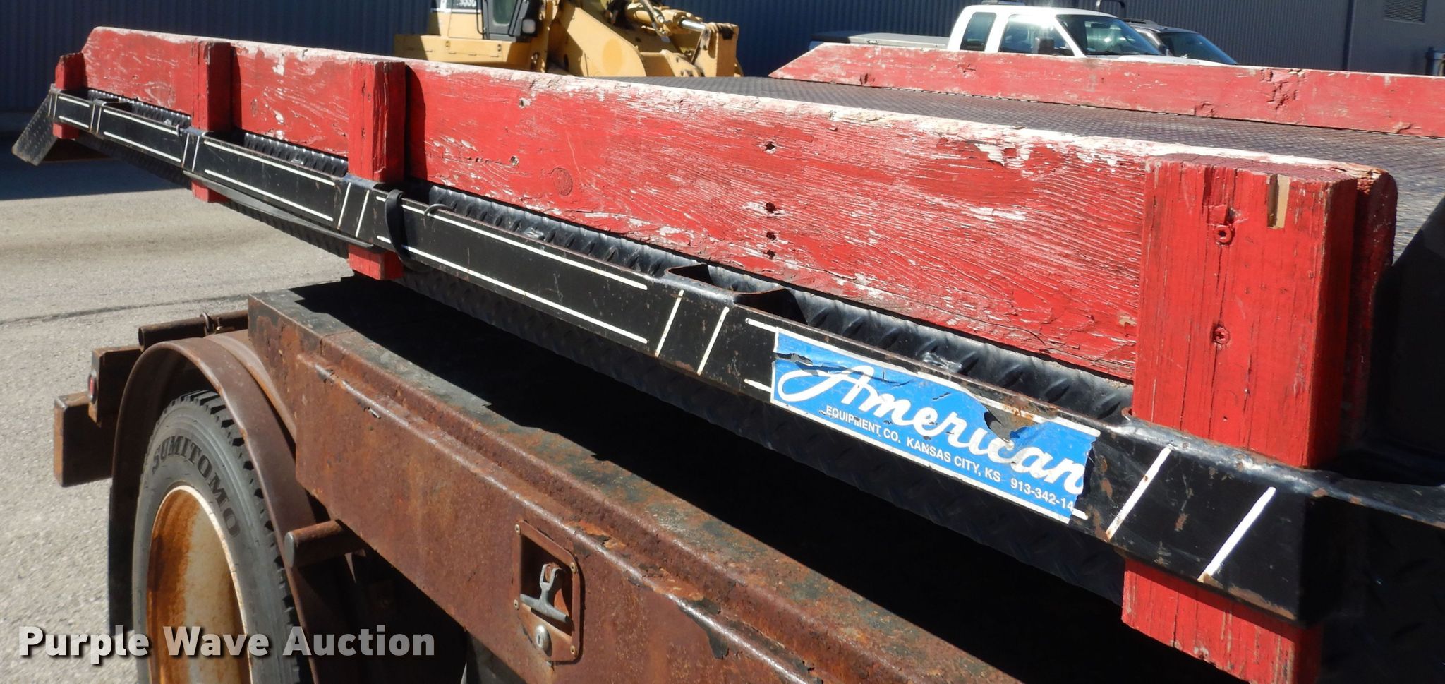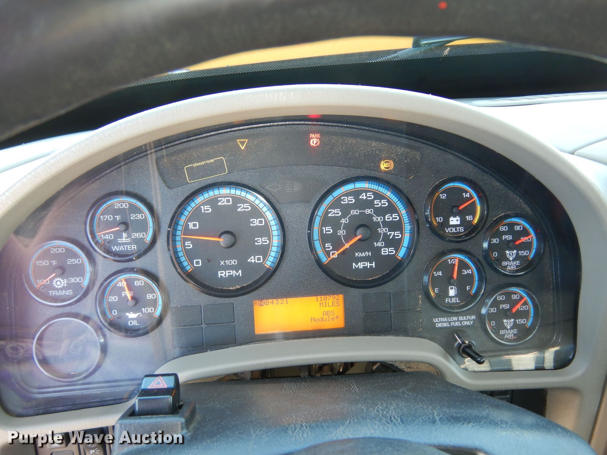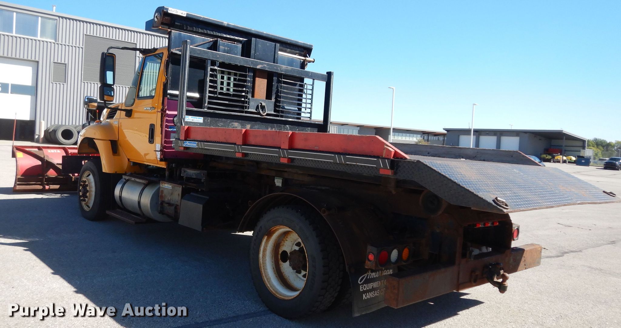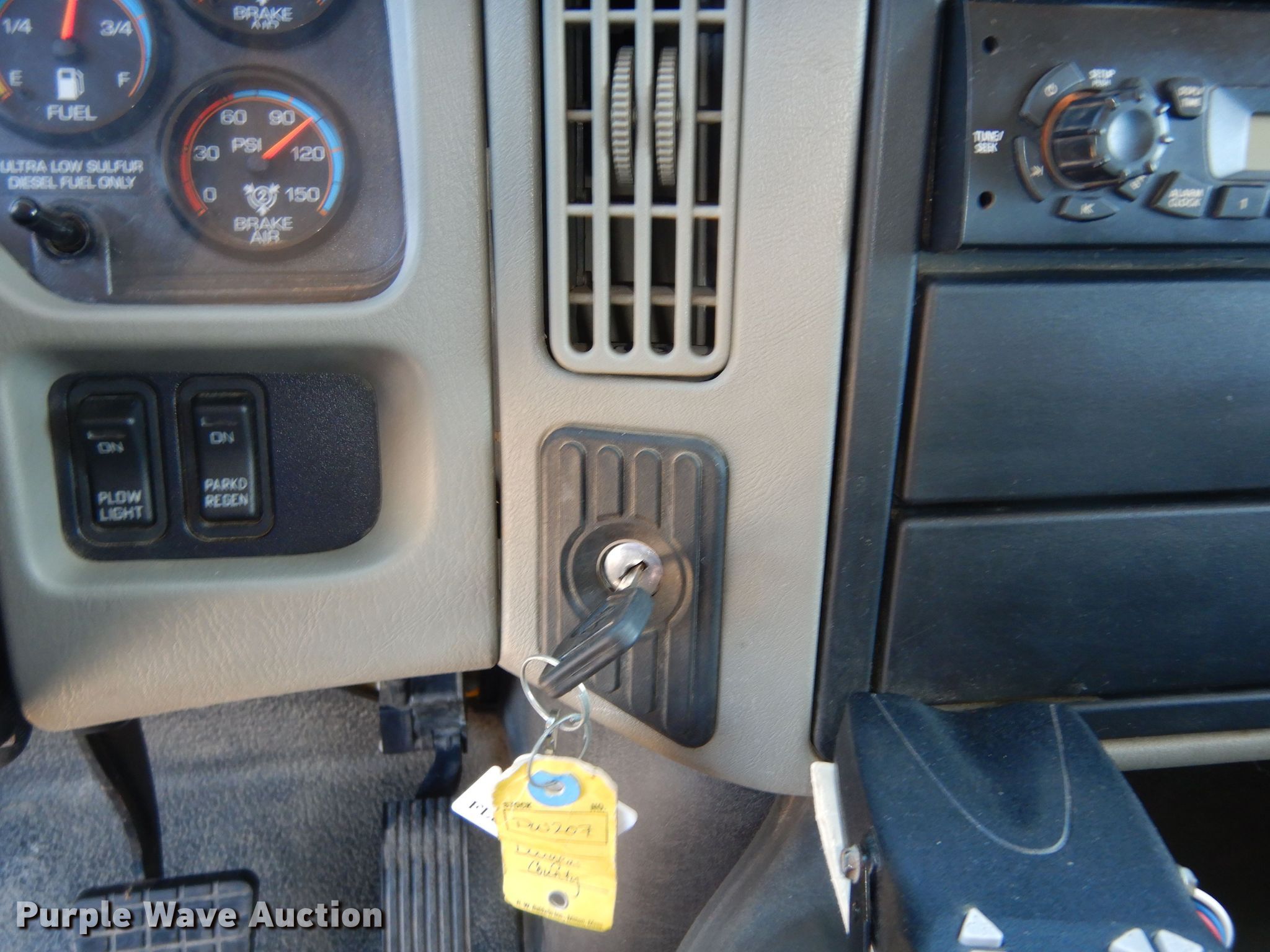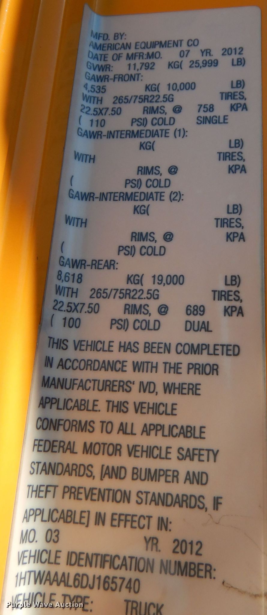 2013 International WorkStar 7300 hook lift truck. Miles: 110,792 on odometer, Hours: 4,974 on meter, VIN: 1HTWAAAL6DJ165740, Unit #: 10094. Engine Displacement: 7.6L, Cylinders: 6, Fuel type: Diesel. Transmission Allison, Automatic. Chassis Axles: Single, Suspension: Spring, Brakes: Air, GVWR: 25,999 lbs, Wheelbase: 171". Interior AC, Heat, Heated mirrors, Cruise control, Power mirrors. Features Hook lift bed Ram: Double, Jensen FB flatbed 12' L x 93" W, Tail length: 2', Removable sides, Front mount PTO, Plow Width: 10'W. Tires Size: 255/79R22.5. Notes Dash warning indicator: ABS. Kansas title. Douglas County. Lawrence, KS 66044
