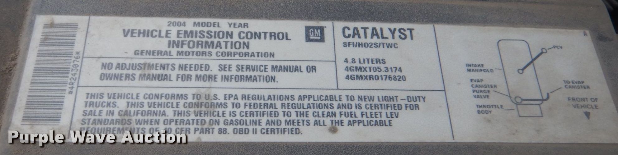2004 Chevrolet Tahoe SUV. Miles: 122,014 on odometer, VIN: 1GNEK13VX4R243076. Engine Displacement: 4.8L V8 OHV, Cylinders: 8, Fuel type: Gas. Transmission Automatic, Four wheel drive. Interior AC, Heat, Seat: Power driver, Power windows, Power locks, Cruise control. Tires Size: LT245/75R16. Notes Dead battery. Oklahoma title. City of Owasso. 200 South Main Street. Owasso, OK 74055