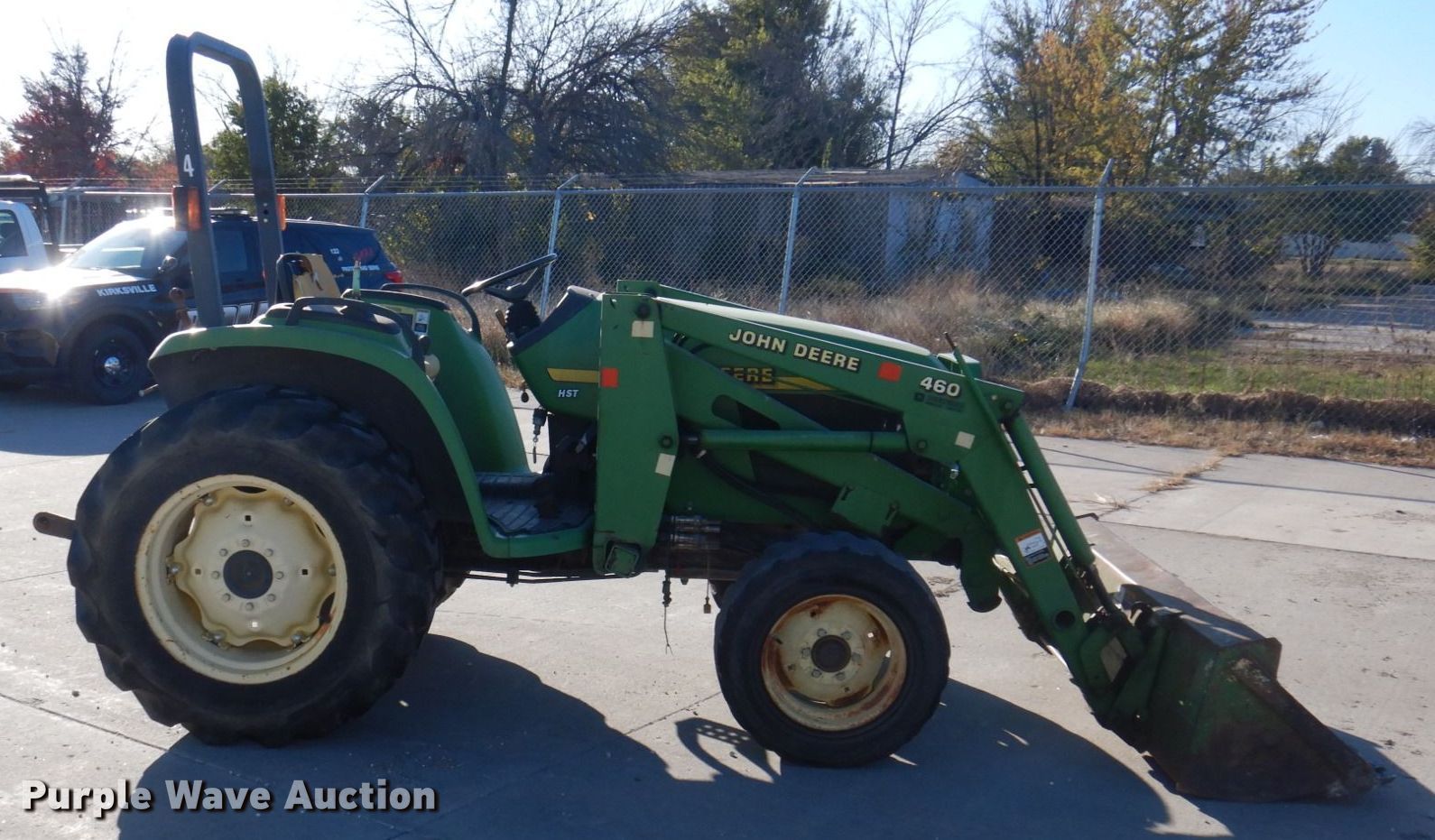 2000 John Deere 4700 tractor. Hours: 2,755 on meter, Serial: LV4700H175115. Engine John Deere 4TNE88-JT47, Serial: XCH4022D131371, Displacement: 2.19L, Cylinders: 4, Fuel type: Diesel. Transmission Hydrostatic, Differential lock. Features PTO: 540, Three point Top link, Hydraulic remote sets Rear: 1, Loader John Deere 460, Controls: Joystick, Bucket Width: 74".. Tires Front: 10-16.5, Rear: 17.5L-24. Notes Grill missing. City of Kirksville. 2001 N Osteopathy. Kirksville, MO 63501