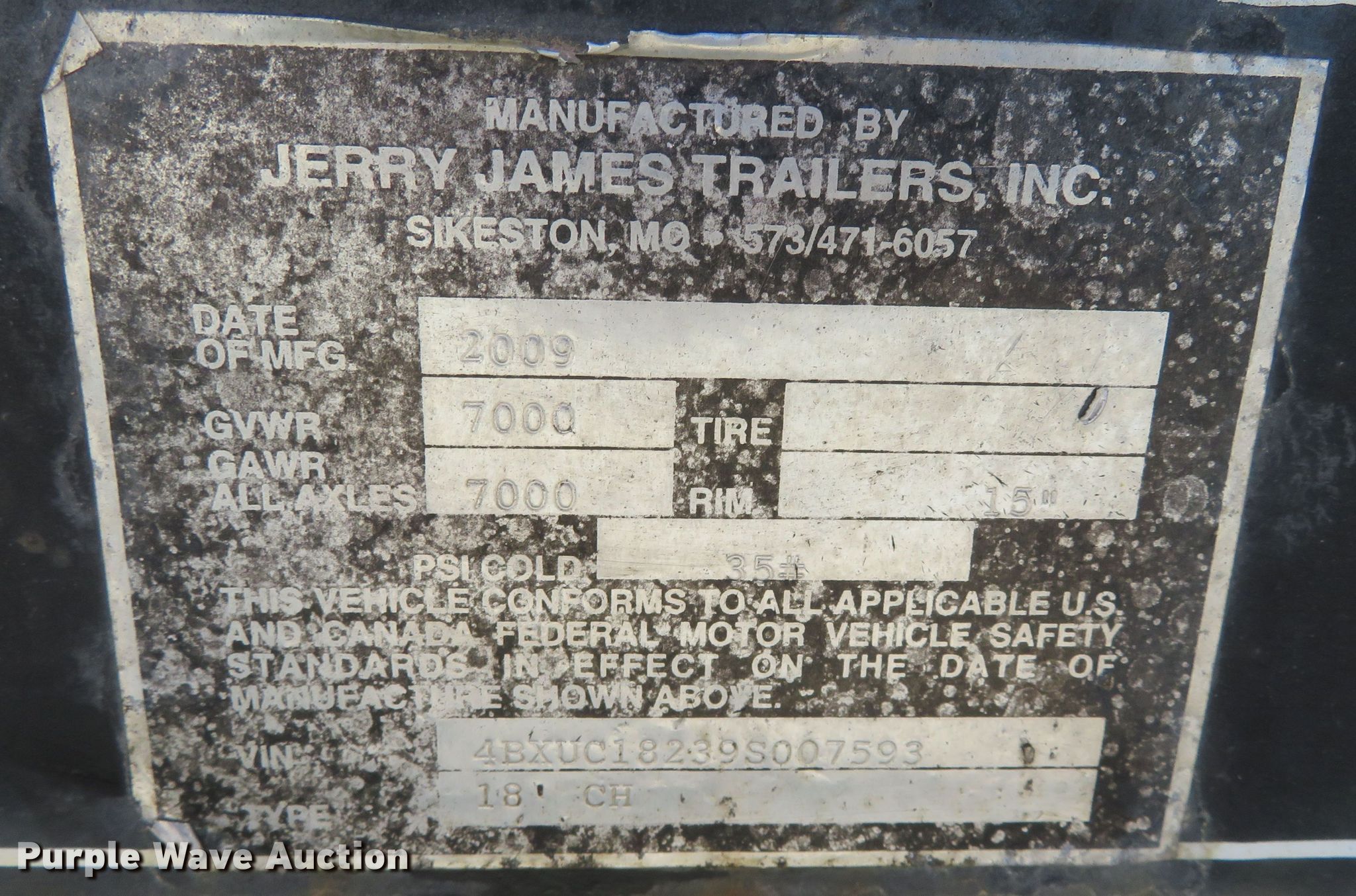 Purple Wave is selling a used Car or Utility Trailer in Missouri. This item is a 2009 Jerry James 18CH utility trailer with the following: VIN: 4BXUC18239S007593