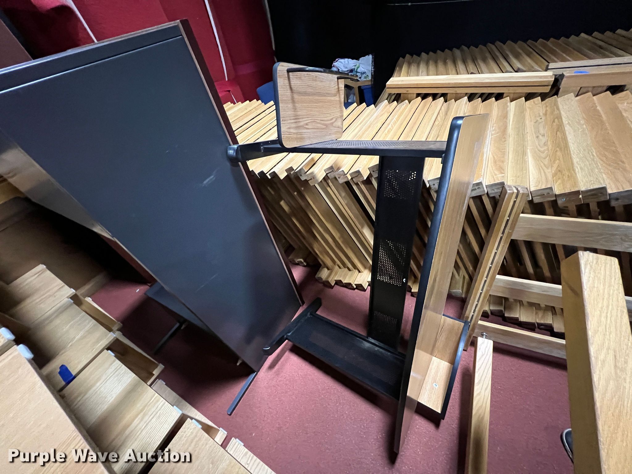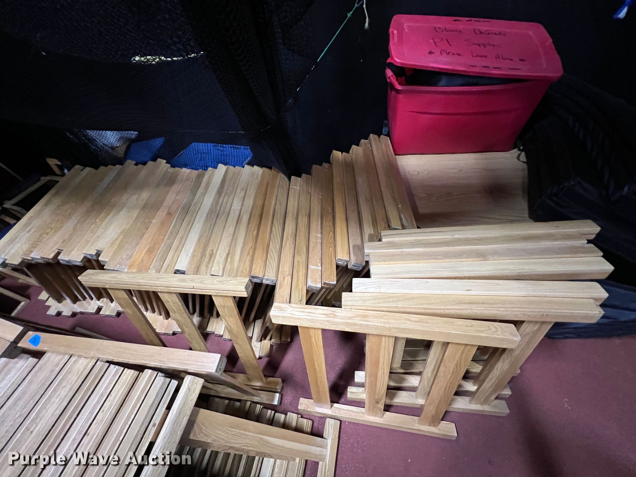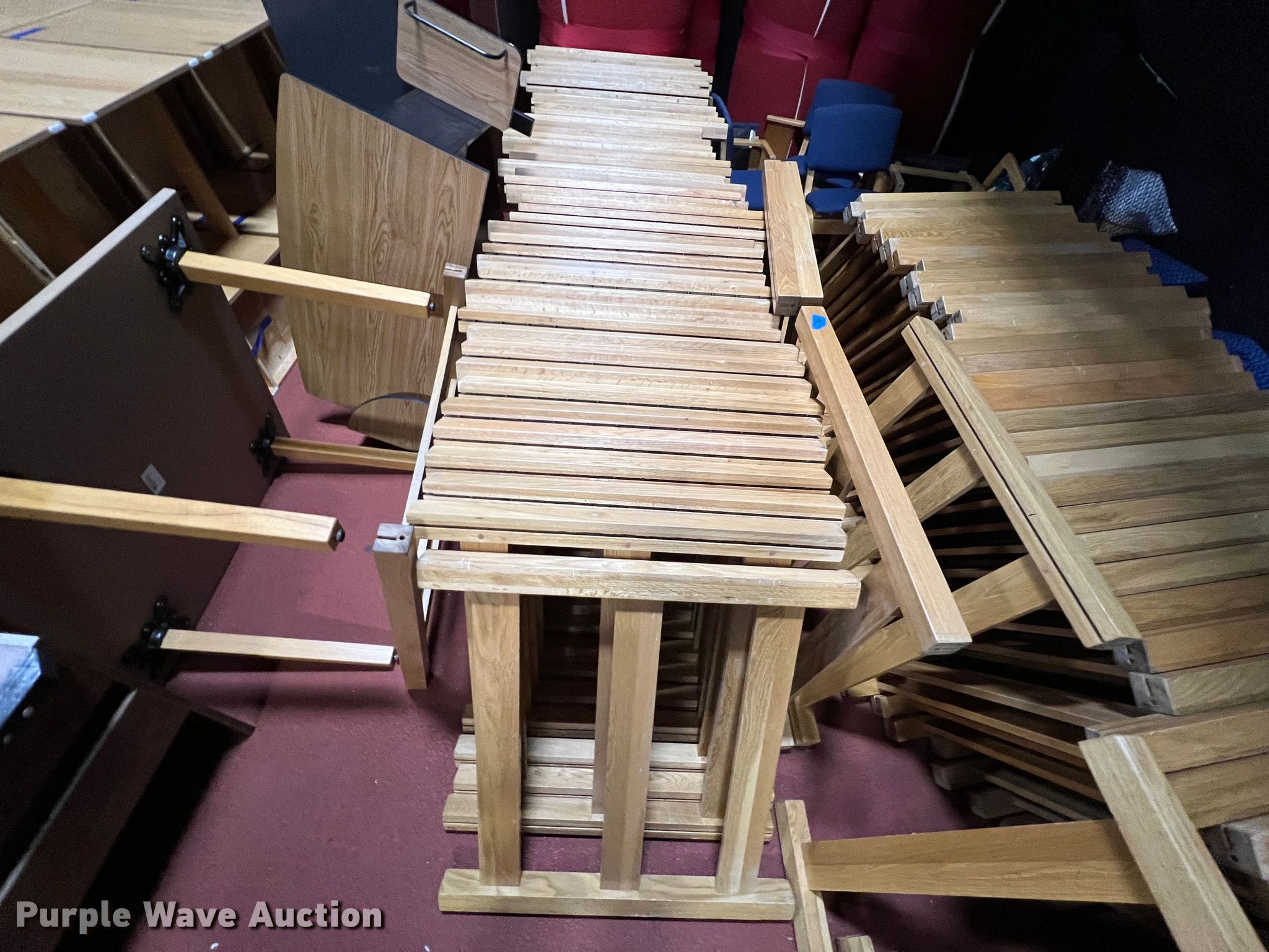 Purple Wave is selling a used Furniture in Kansas. This item is a Furniture with the following: (6) chairs, Approx. 55 headboards, Approx. 3 tables, Approx. 32 desks, Shelf, Metal cabinet and more