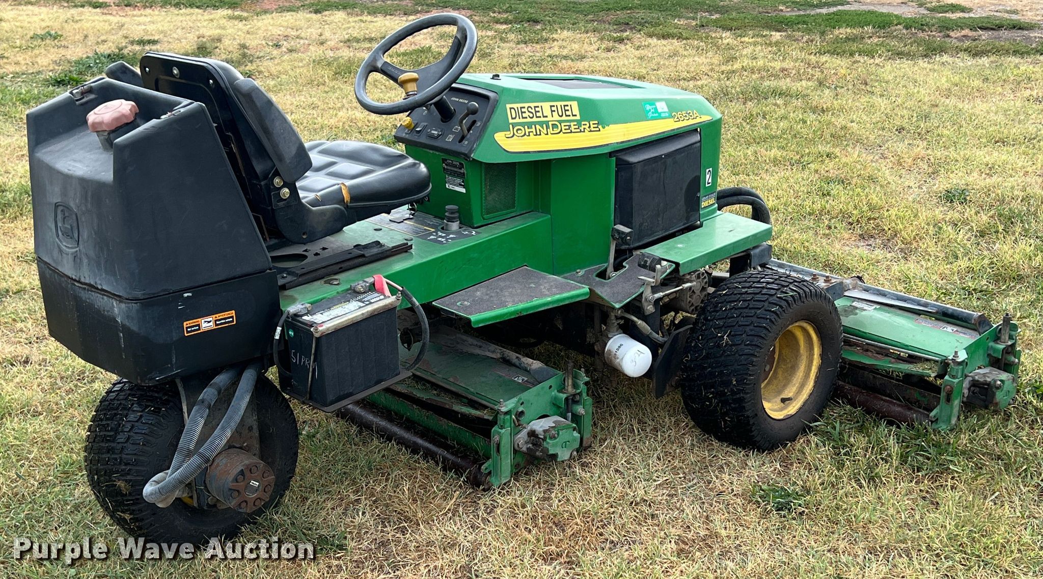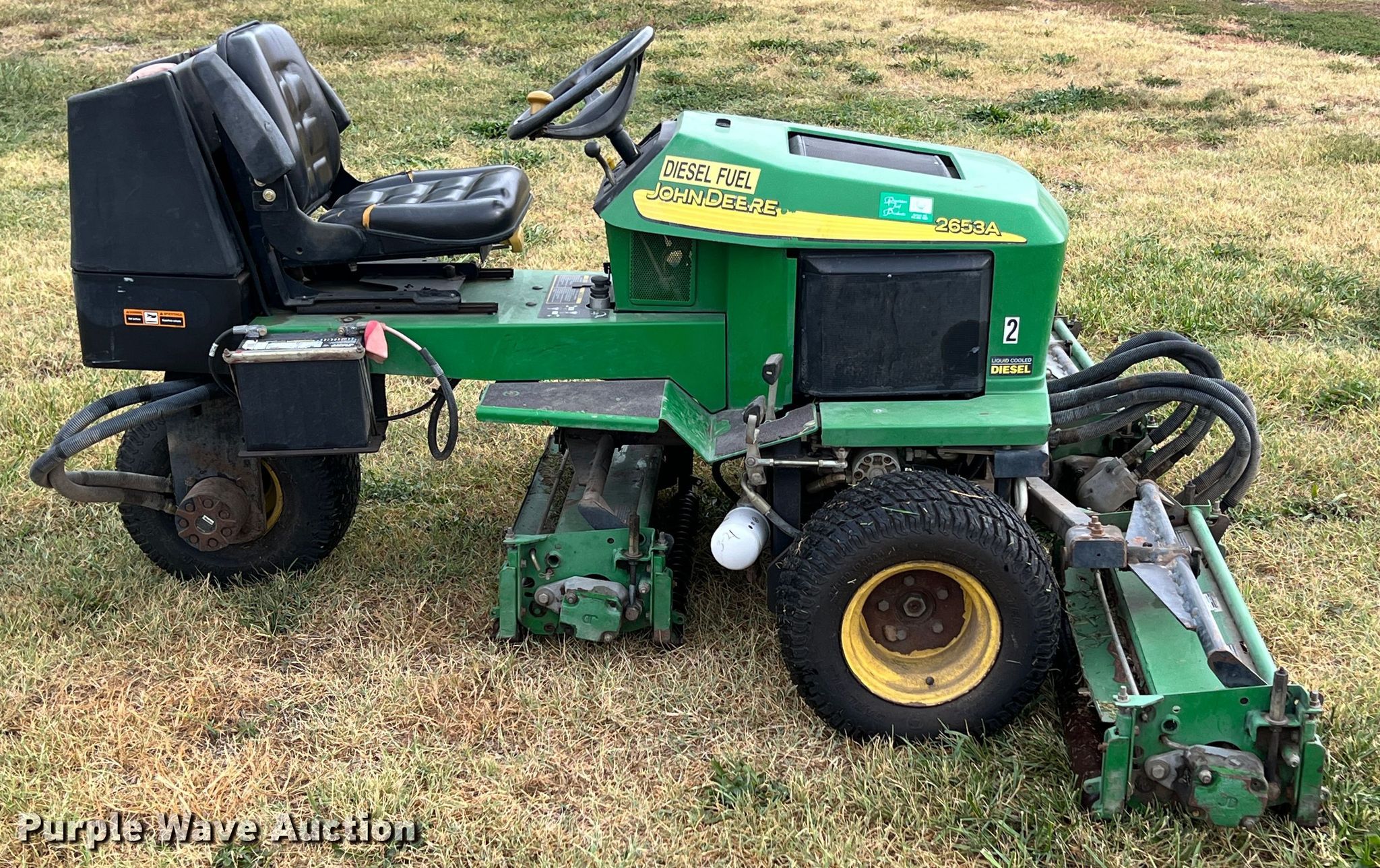 Purple Wave is selling a used Commercial Turf Mower in Kansas. This item is a John Deere 2653A reel mower with the following: Hours: 3,297 on meter, Cutting width: 84", Serial: TC2653D140518