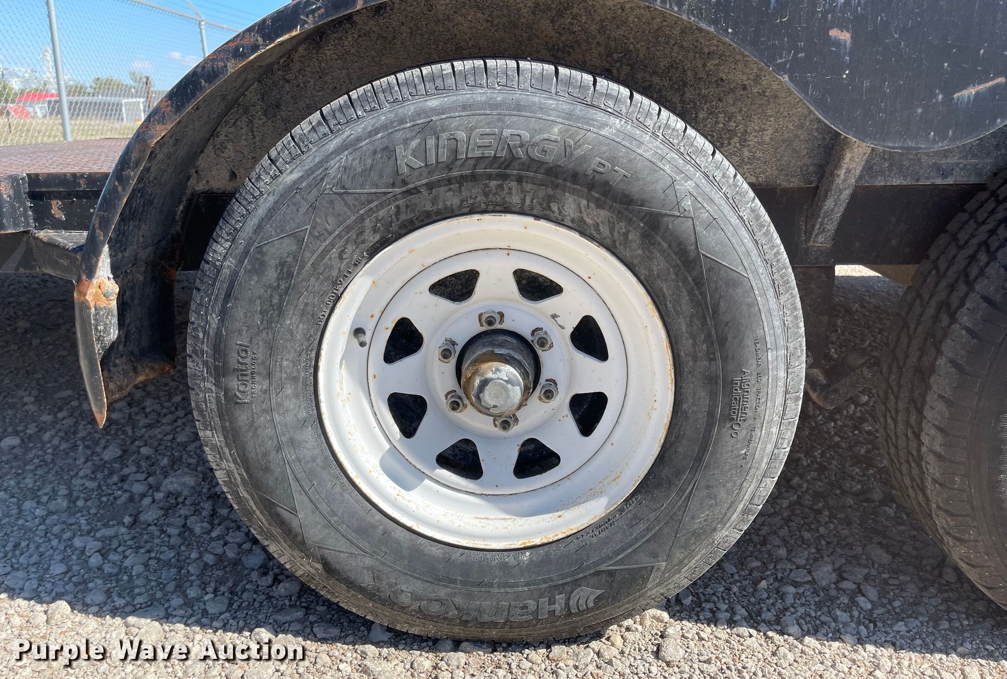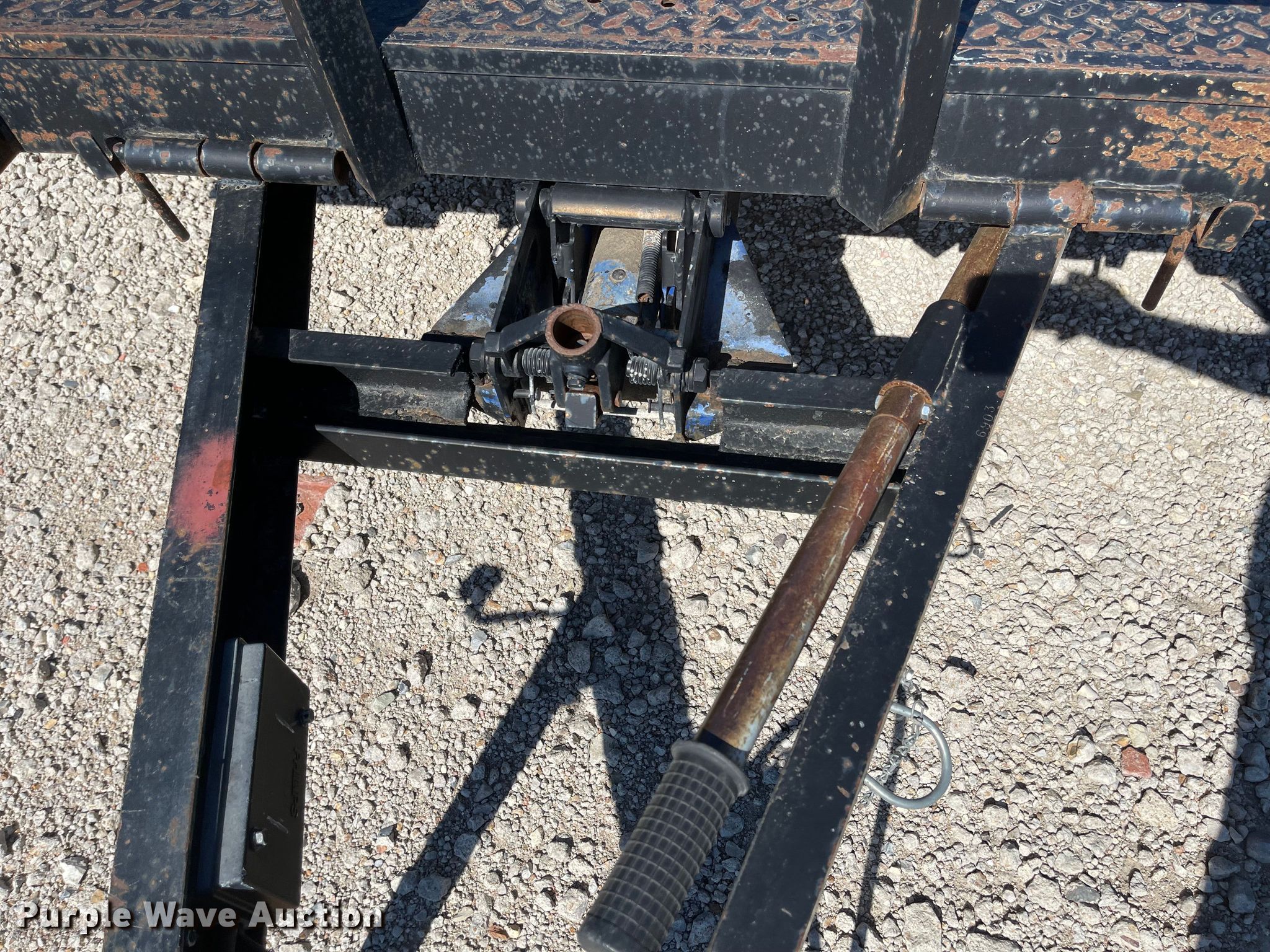 1992 tilt deck equipment trailer. VIN: 4HLFS1829NT086903. Dimensions Overall: 22' x 12" W, Deck: 18' x 84" W, Deck height: 24". Features Deck type: Steel, Hydraulic controls: Manual. Chassis Ball hitch: 2", Landing gear: Single, Suspension: Spring, Axles: Tandem. Tires Steel wheels, Size: 235/75R15. Notes Hydraulic jack is weak. Kansas title. Title distribution may be delayed up to 30 days from verification of funds. City of Stockton. 115 South Walnut Street. Stockton, KS 67669