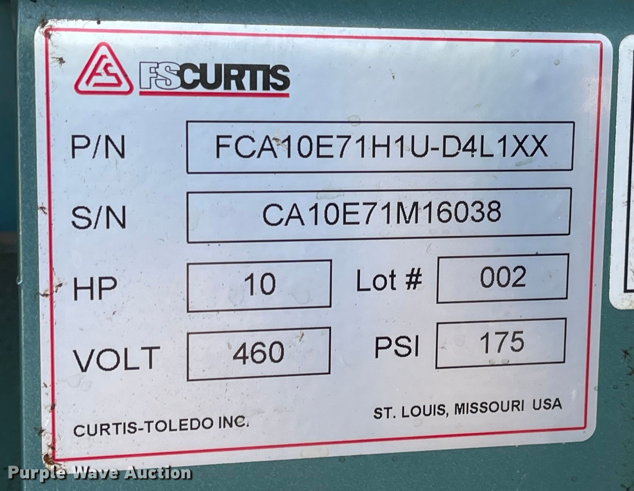 Purple Wave is selling a used Air Compressor in Kansas. This item is a FS Curtis air compressor with the following: Serial: CA10E71M16038