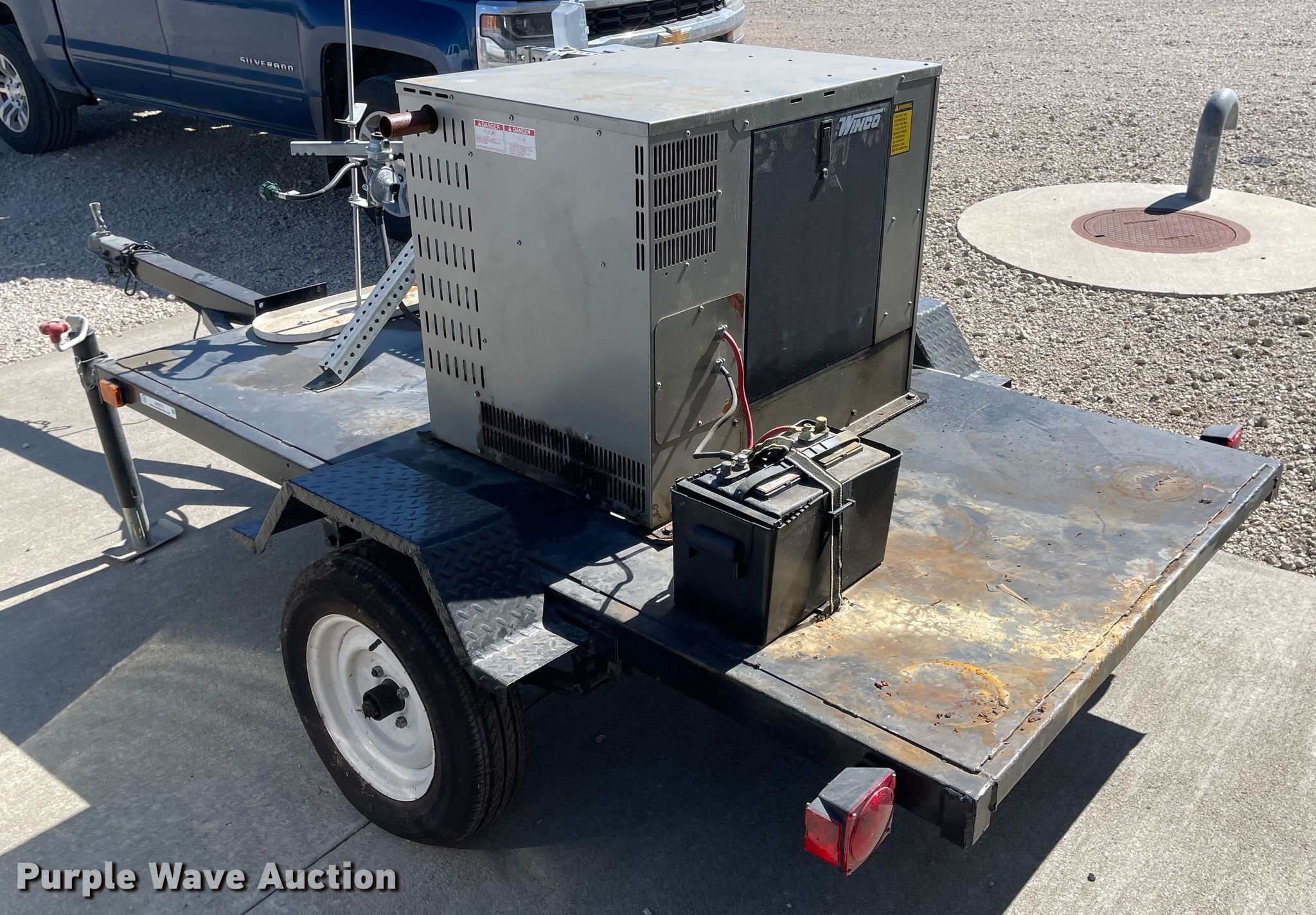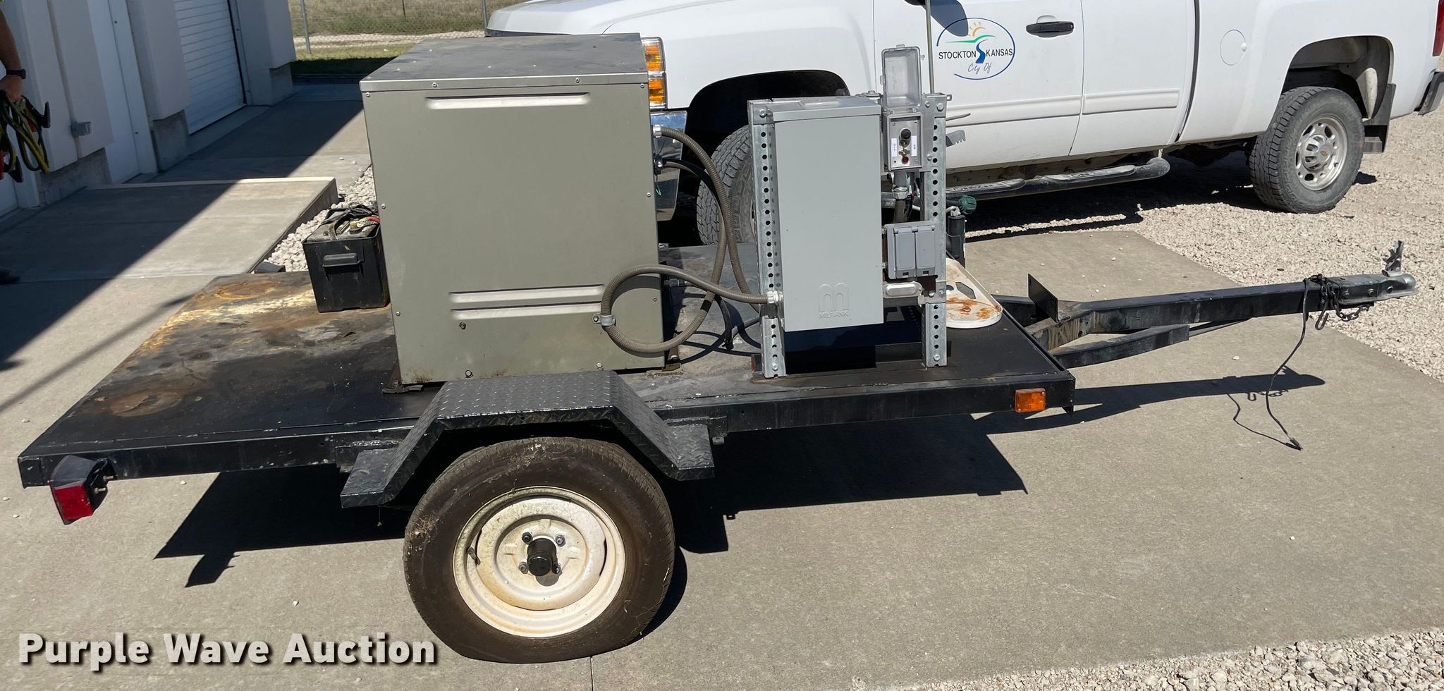 Winco generator. Engine. Honda, Cylinders: 2, Fuel type: LPG. Features Generator Winco CSAPSS8000/N, kW: 8, Phase: Single, Electric start. Trailer Shop built, 12' L x 70" W, Ball hitch size: 2", Suspension: Spring, Axles: Single, Tire size: 155/80R13. Transfer of ownership documentation will be a bill of sale. City of Stockton. 115 South Walnut Street. Stockton, KS 67669