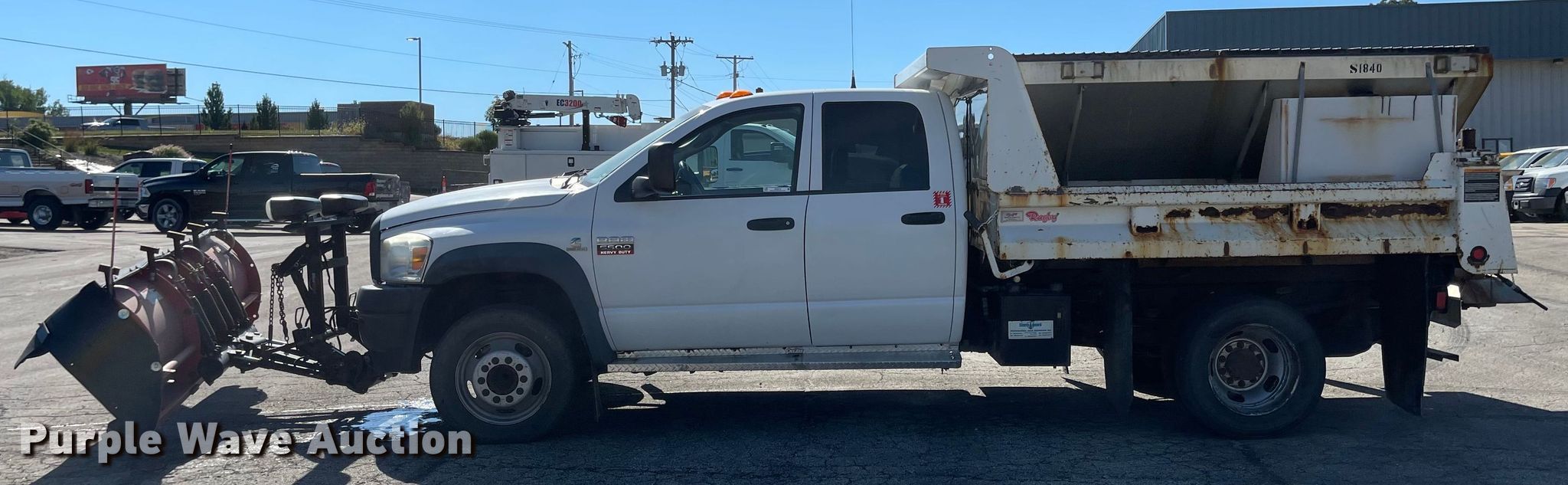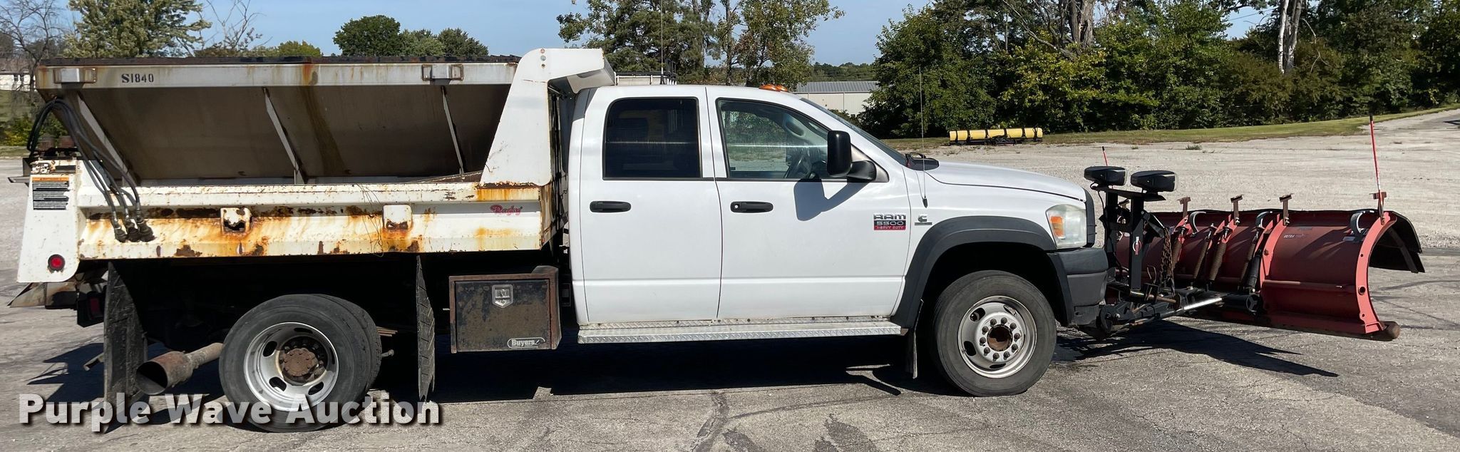2009 Dodge Ram 5500HD Quad Cab dump truck. Miles: 215,543 on odometer, VIN: 3D6WC78L09G558295. Engine Displacement: 6.7L, Cylinders: 6, Fuel type: Diesel. Transmission Automatic. Chassis Axles: Single, Suspension: Spring, Brakes: Hydraulic, PTO. Interior AC, Heat, Cruise control. Features Dump bed Rugby, 9' L x 96" W, Side height: 12", Side board height: 6", Bed type: Steel, Ram: Single , End gate: Manual, Spreader Flink, Plow Western, Width: 108". Tires Size: 225/70R19.5. Notes Dash warning indicator: Check engine, Non-operational AC. Missouri title. Title distribution may be delayed up to 14 days from verification of funds. 3602 N Belt Hwy. Saint Joseph, MO 64506
