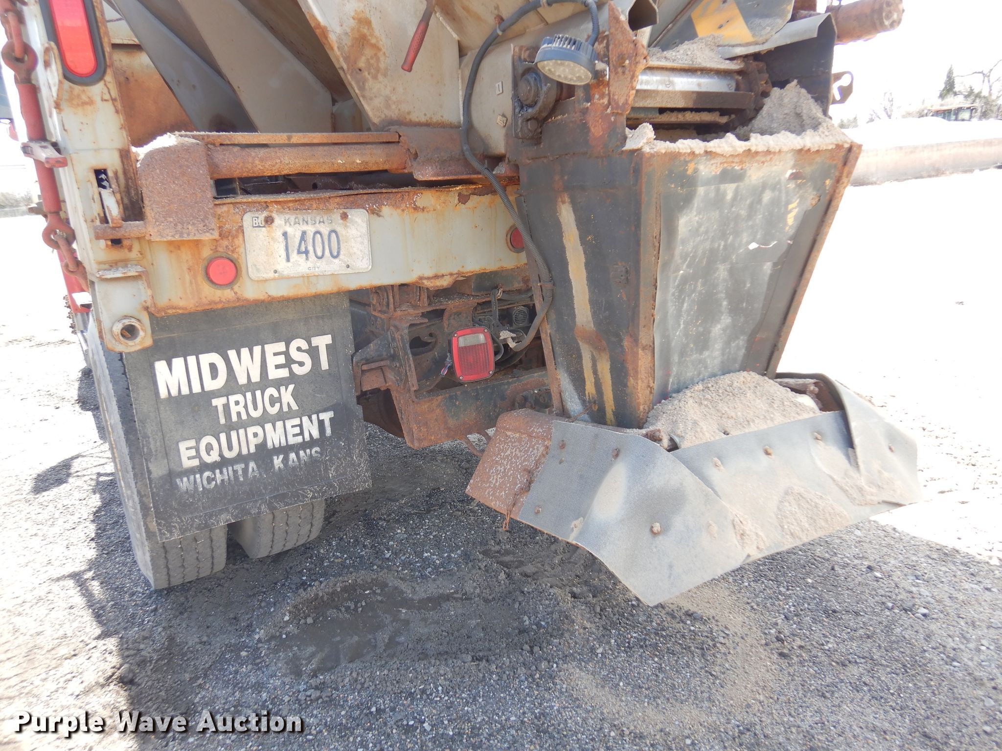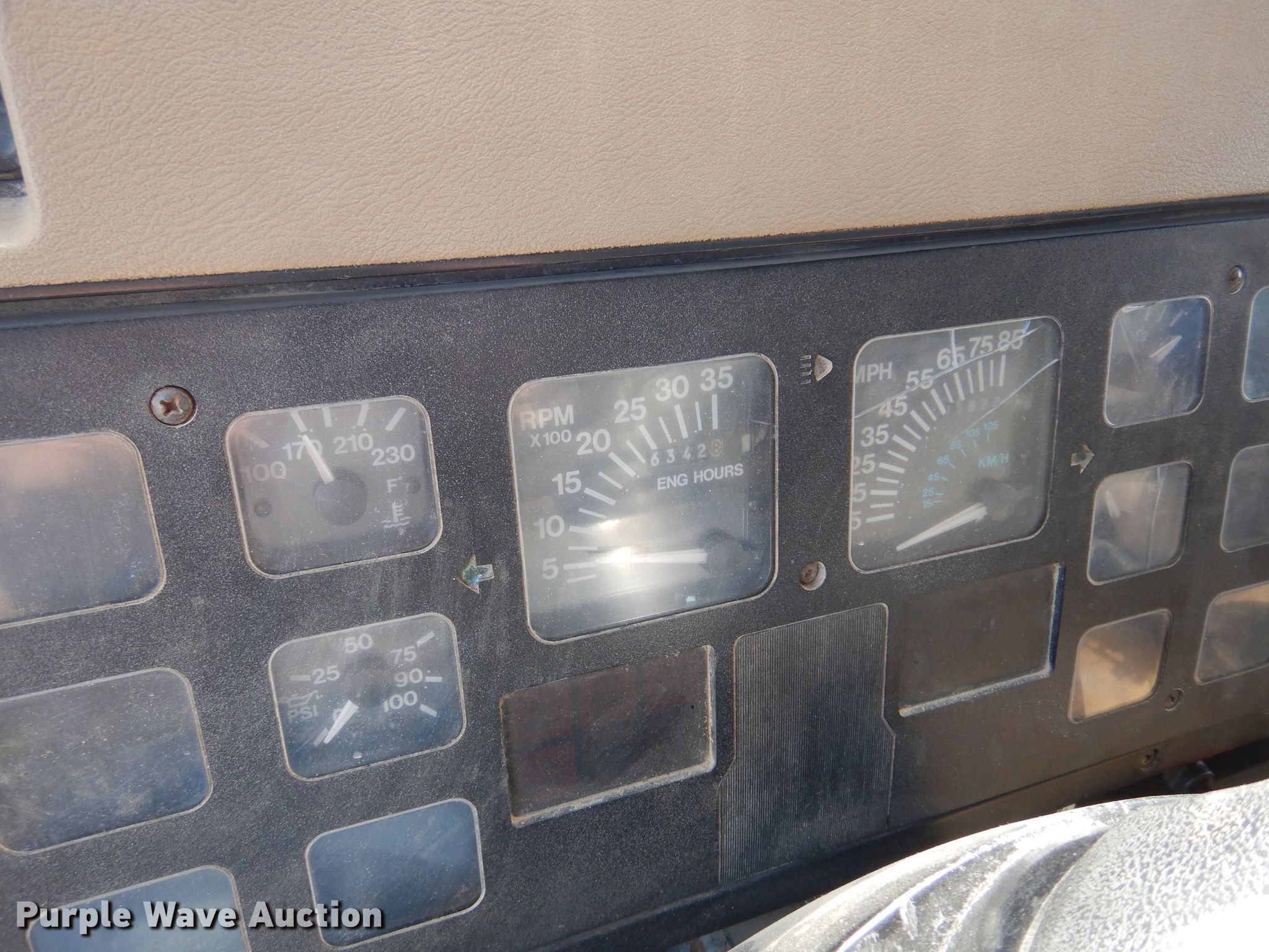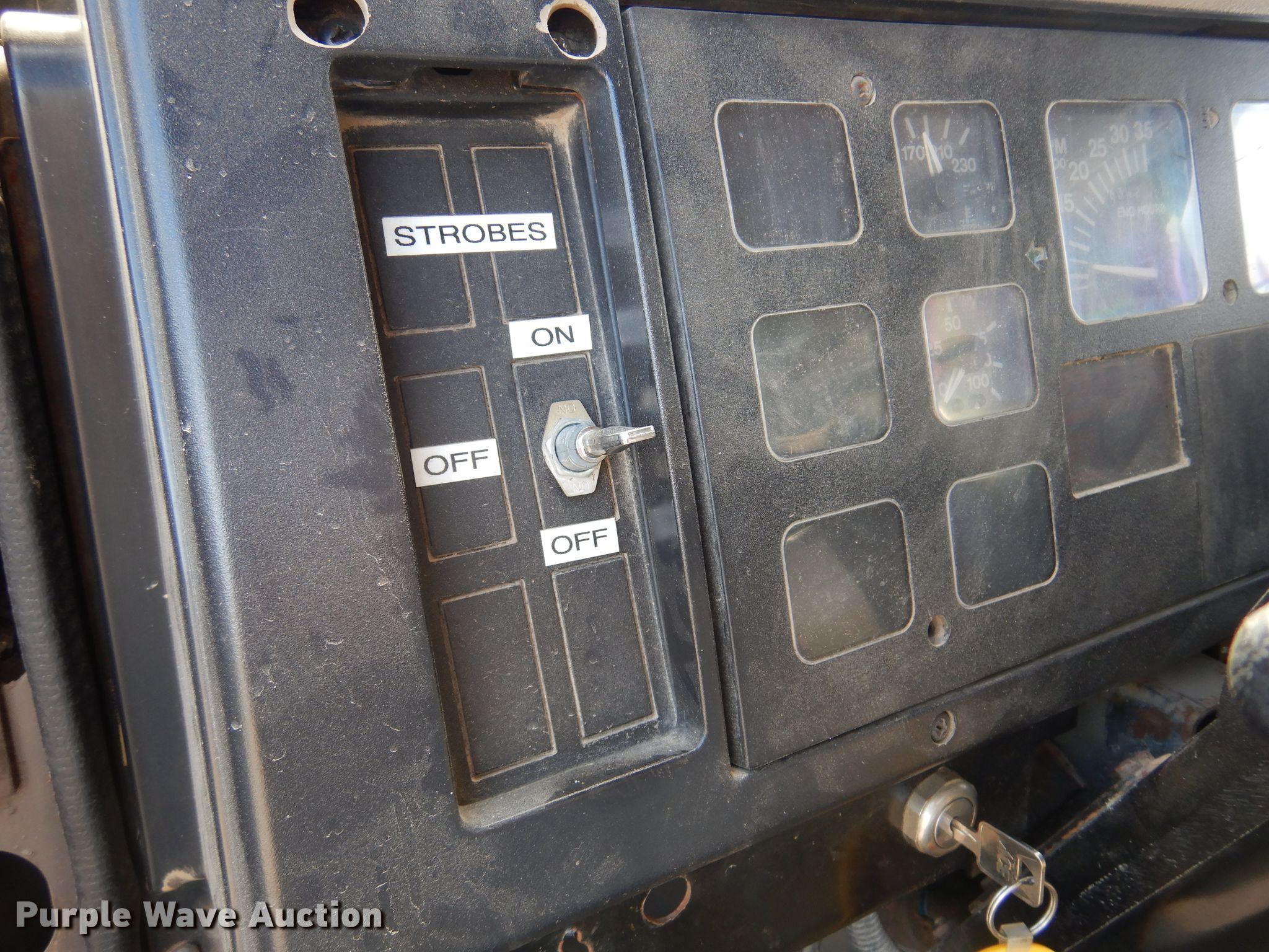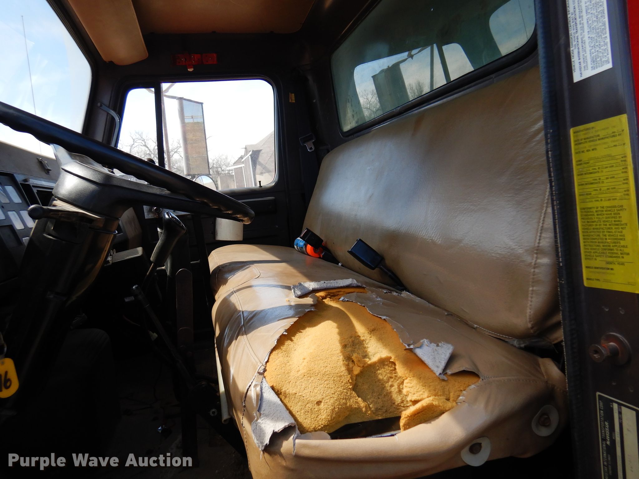 1991 International 4700 dump truck. Miles: 58,228 on odometer, Hours: 6,342 on meter, VIN: 1HTSCNKP2MH392481. Engine Displacement: 5.9L, Cylinders: 6, Fuel type: Diesel. Transmission Manual, Speed: 7. Chassis Axles: Single, Suspension: Spring, Brakes: Hydraulic, PTO. Interior Heat. Features Dump bed 10' L x 94" W, Side height: 30", Bed type: Steel, Roll tarp, Ram: Single , End gate: Manual, Spreader Henderson. Tires Front: 295/75R22.5, Rear: 275/80R22.5. Kansas title. 1606 N Andover Rd. Andover, KS 67002
