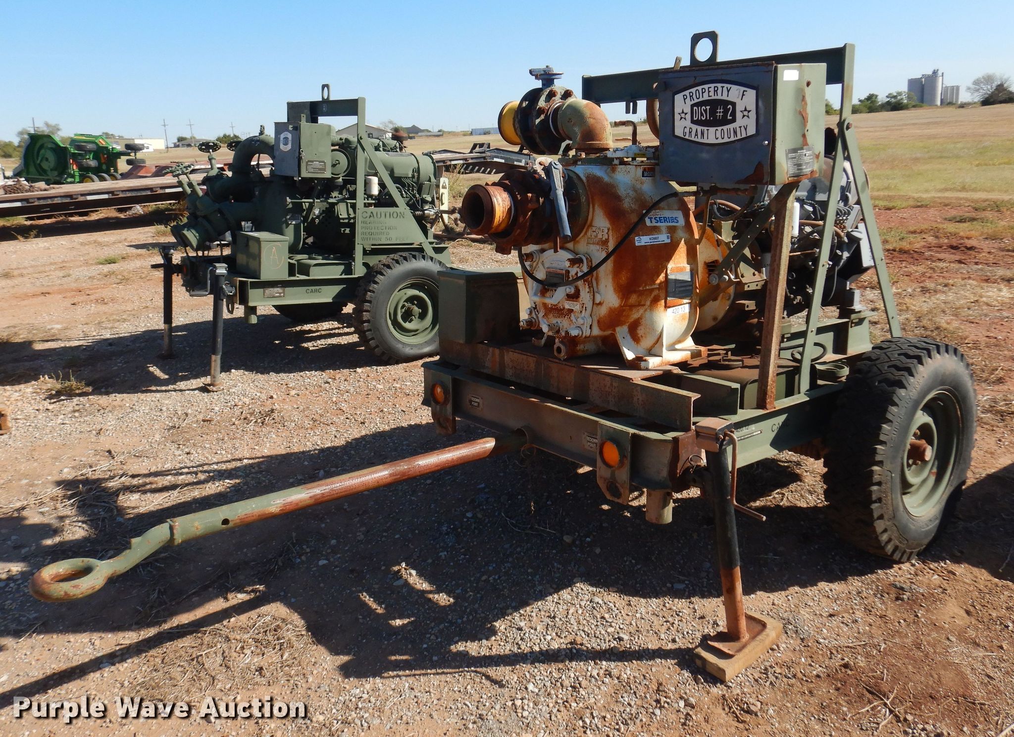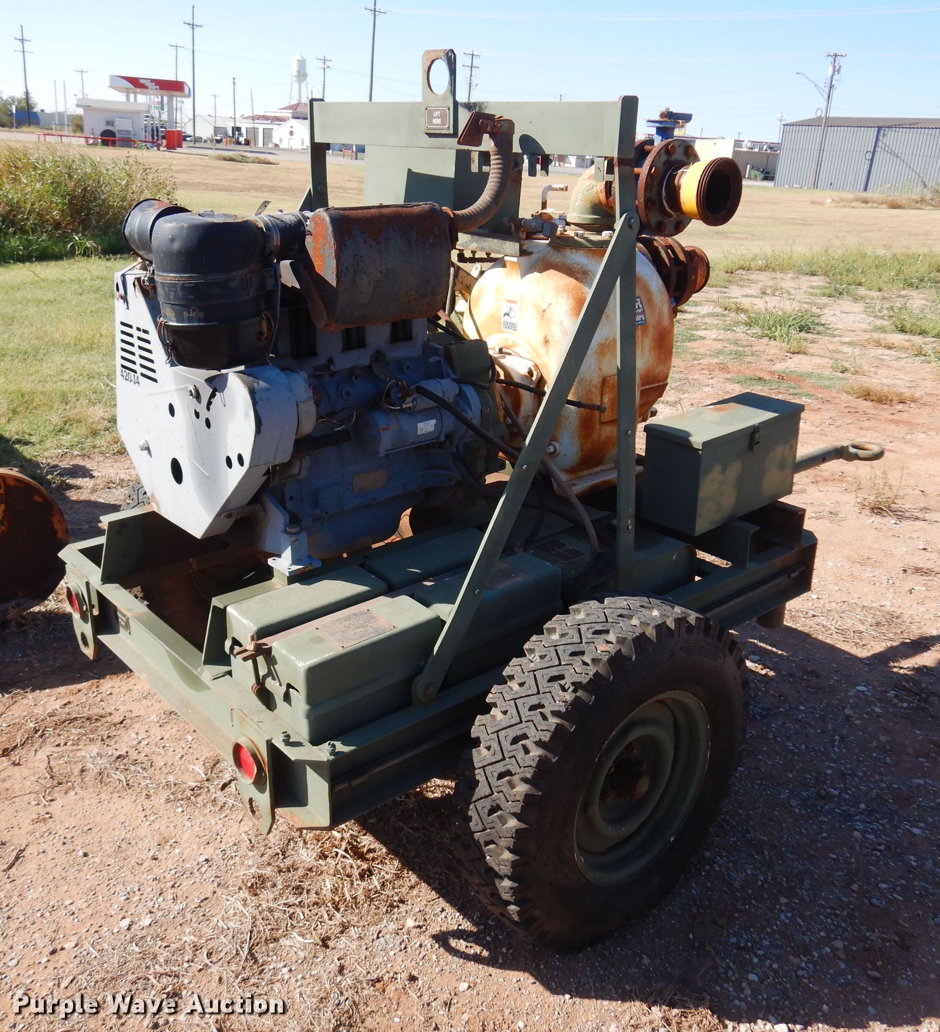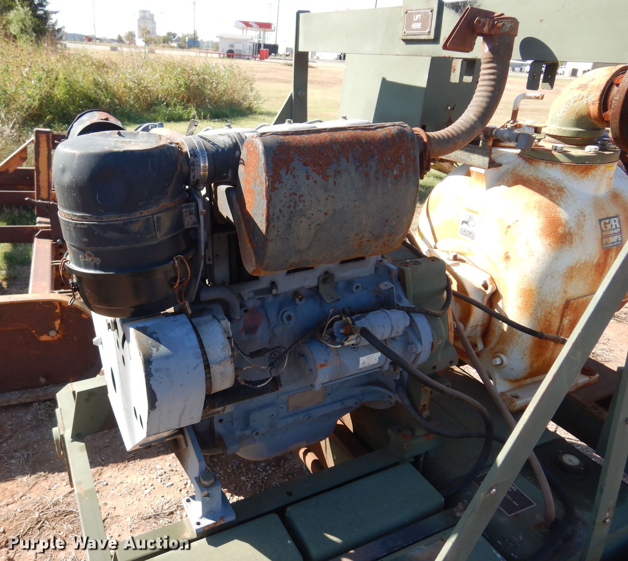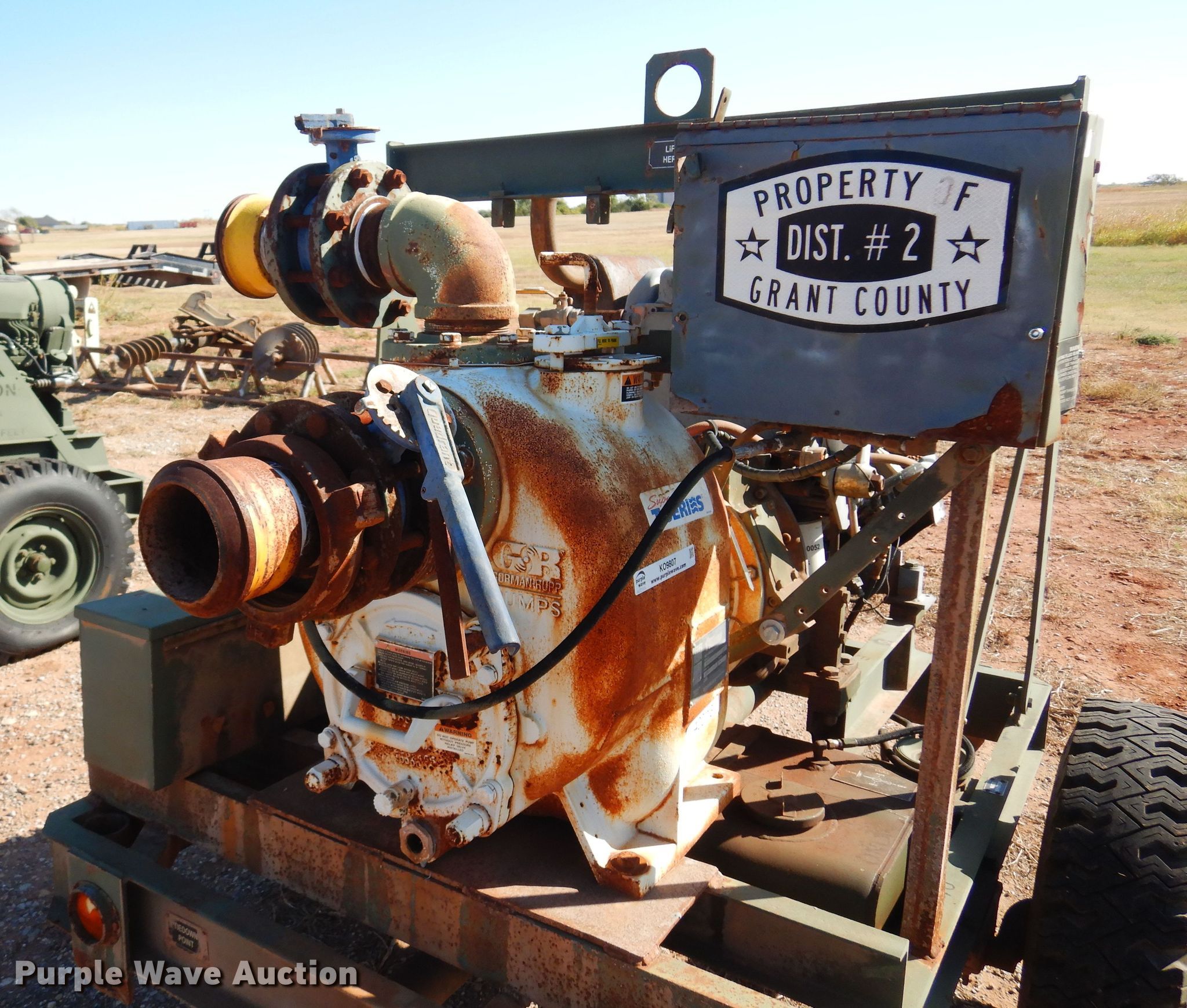 1983 G&R T4A60S pump. Serial: 350F045, Hours: 3237 on meter, Intake/discharge 4". Engine Fuel type: diesel, Cylinders: 3. Trailer 10' L x 4' W. Tires Size: 7.00-15LT. Grant County. Medford, OK 73759