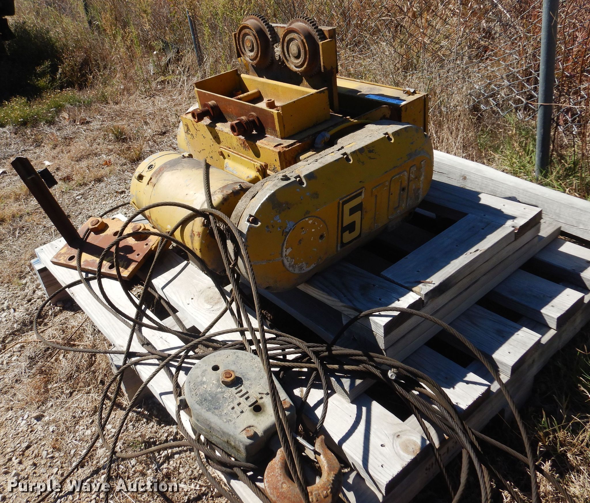 Purple Wave is selling a used Tools in Kansas. This item is a Detroit hoist with the following: Serial: 36013, Capacity: 5 tons, Volts: 230/460, Three phase