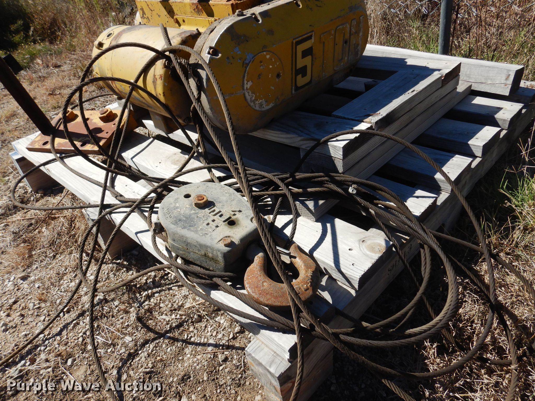 Detroit hoist. Serial: 36013, Capacity: 5 tons, Volts: 230/460 , Three phase. Notes Unknown operating condition. Chautauqua County. Sedan, KS 67361