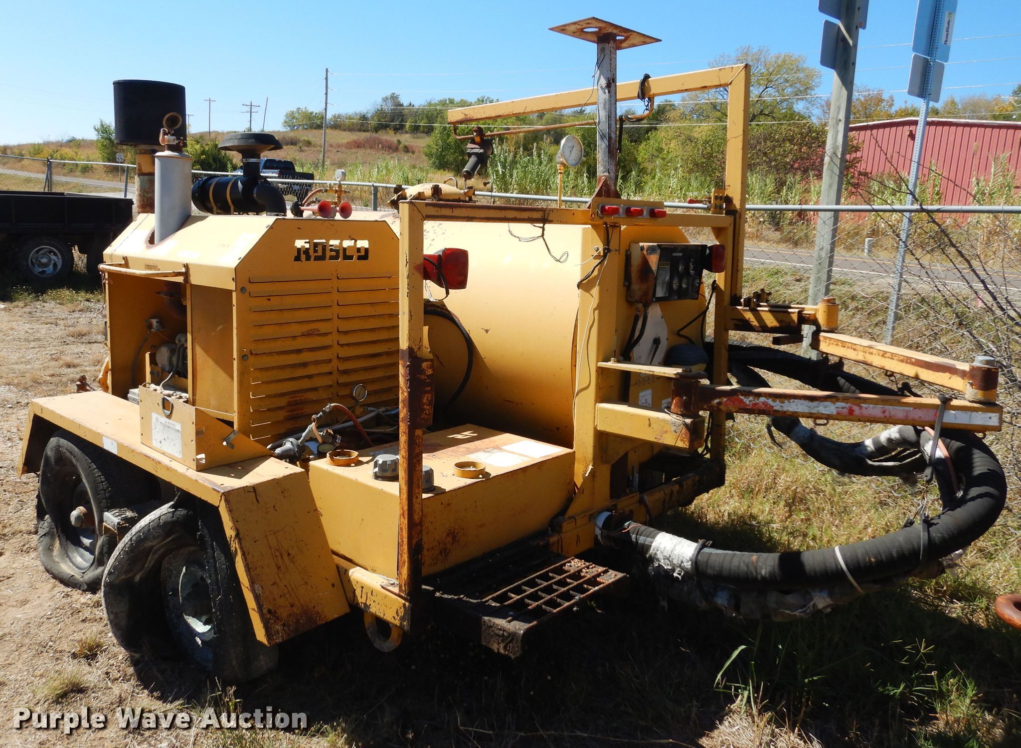 Roscoe RA2000 pot hole patcher. Hours: 6,069 on meter, Serial: 35871. Engine Cylinders: 4, Fuel type: Diesel. Trailer 15' L x 7' 3" W, Landing gear: Single, Suspension: Spring, Axles: Tandem , Tires: ST225/75R15. Notes Unknown operating condition. This is worksite support equipment and will not come with a title. Transfer of ownership documentation will be a bill of sale. Chautauqua County. Sedan, KS 67361
