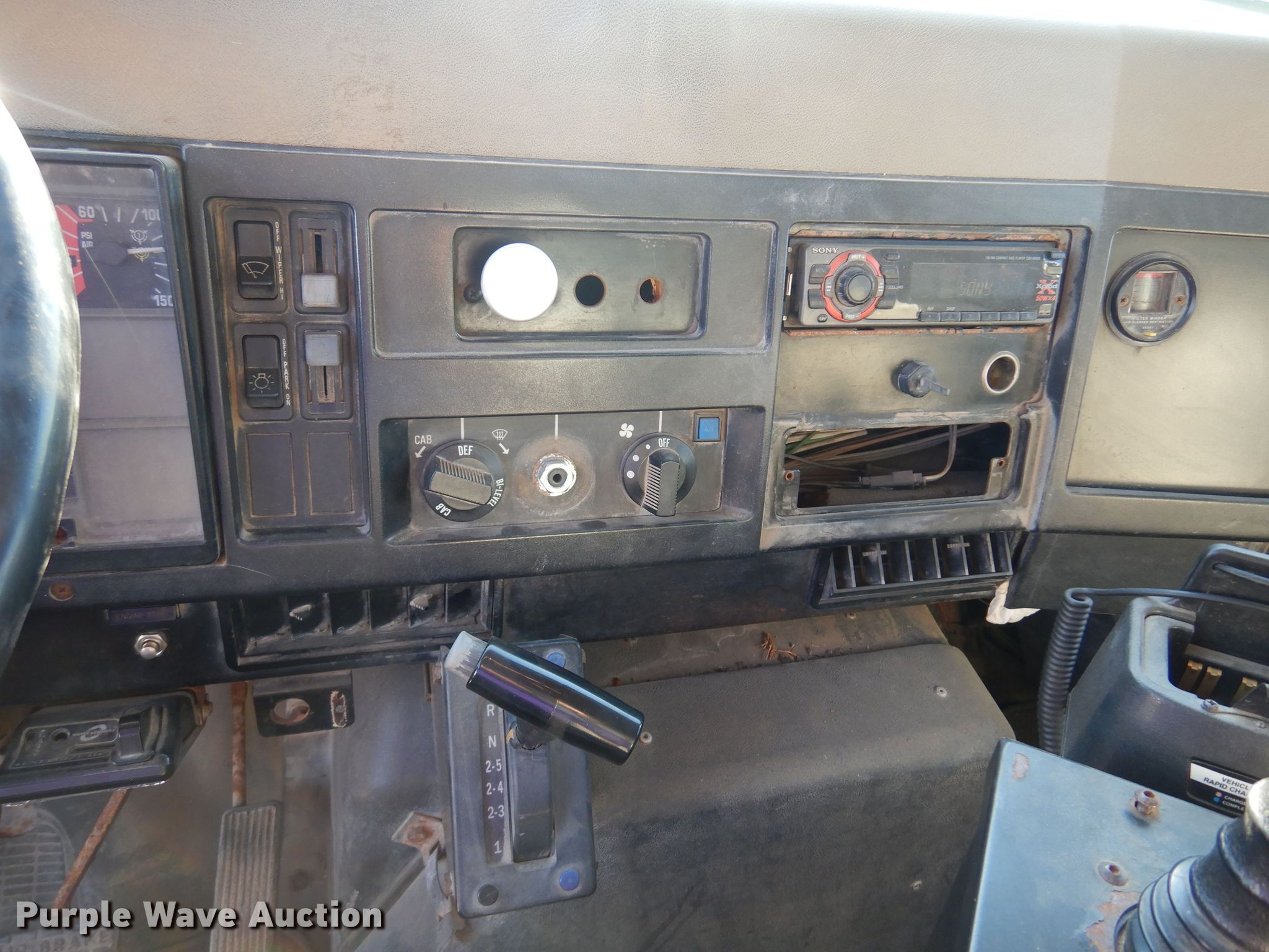 1995 International 4700 dump truck. Miles: 135,273 on odometer, Hours: 9,284 on meter, VIN: 1HTSCACN6SH623787. Engine Displacement: 6.7L, Cylinders: 6, Fuel type: Diesel. Transmission Automatic. Chassis Axles: Single, Suspension: Spring, Brakes: Air, PTO. Interior AC, Heat. Features Dump bed 10' L x 96" W, Side height: 40", Bed type: Steel, Ram: Single, End gate: Air operated, Spreader Model: MV-120-84-50/1210. Tires Size: 11R22.5. Kansas title. City of El Dorado. El Dorado, KS 67042