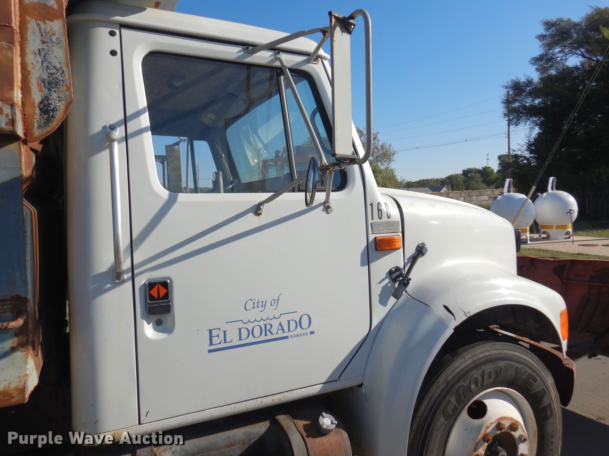 1991 International 4700 dump truck. Miles: 133,982 on odometer, VIN: 1HTSCNDP8MH312596. Engine Displacement: 5.9L, Cylinders: 6, Fuel type: Diesel. Transmission Automatic, Speed: plus 2. Chassis Axles: Single, Suspension: Spring, Brakes: Air, PTO. Interior AC, Heat. Features Dump bed 10' L x 96" W, Side height: 31", Side board height: 9", Bed type: Steel, Ram: Single, Snow plow Width: 120". Tires Size: 11R22.5. Notes Unknown operating condition snow plow, Possible hydraulic issues. Kansas title. City of El Dorado. El Dorado, KS 67042