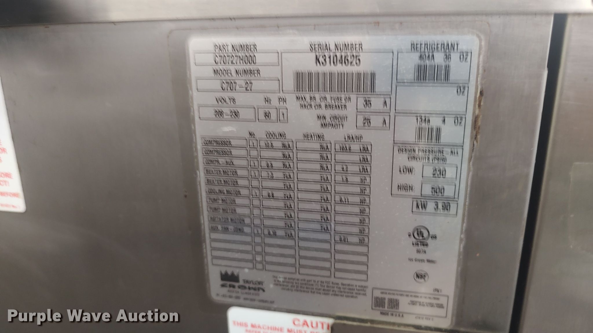 - Taylor C707-27 ice cream machine