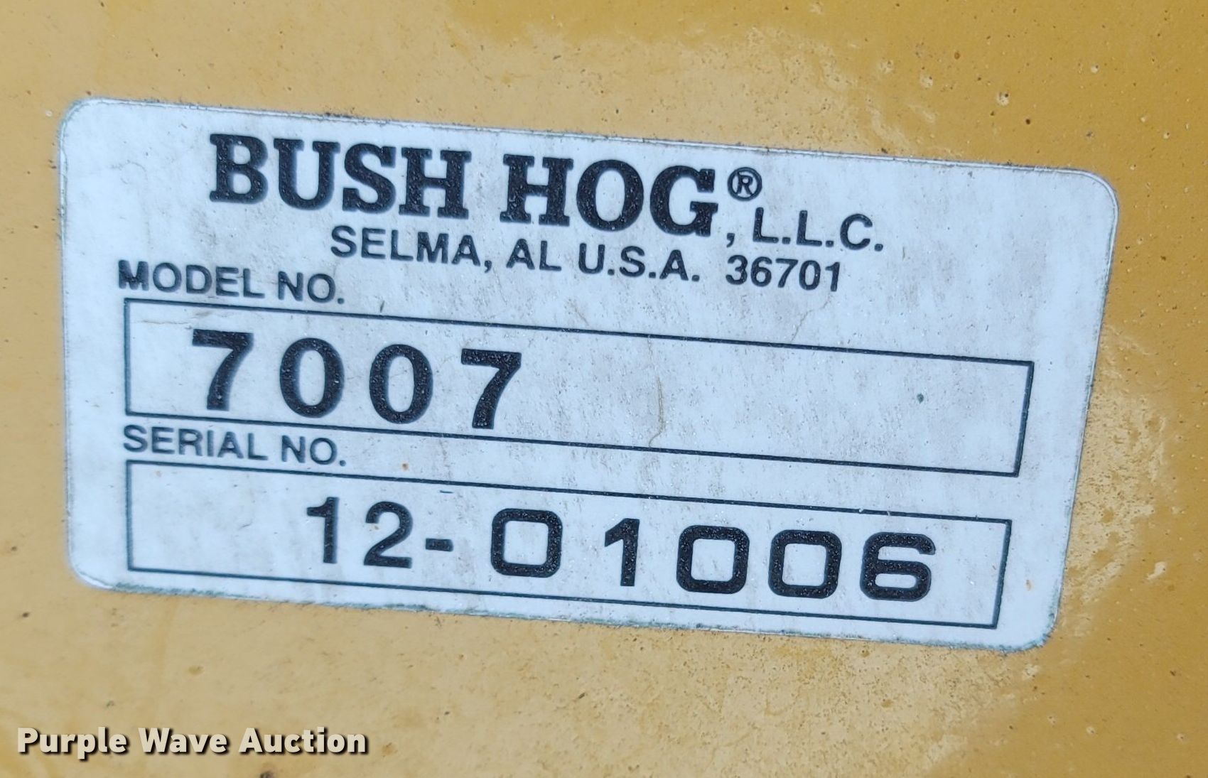Purple Wave is selling a used Ag Equip. Other in Arkansas. This item is a 2012 Bush Hog 7007 blade with the following: Serial: 12-01006