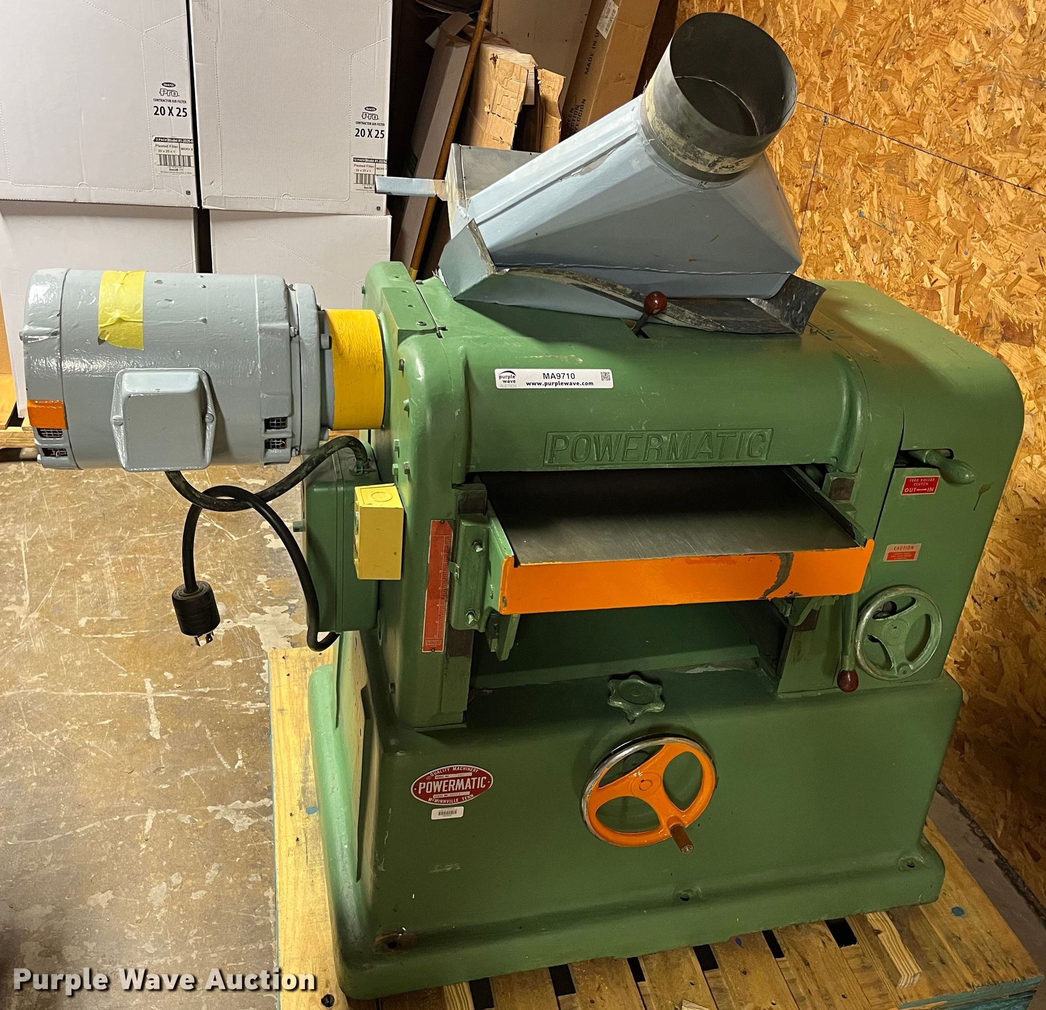 Purple Wave is selling a used Tools in Kansas. This item is a Powermatic 180 planer with the following: 18" capacity, Serial: 98021