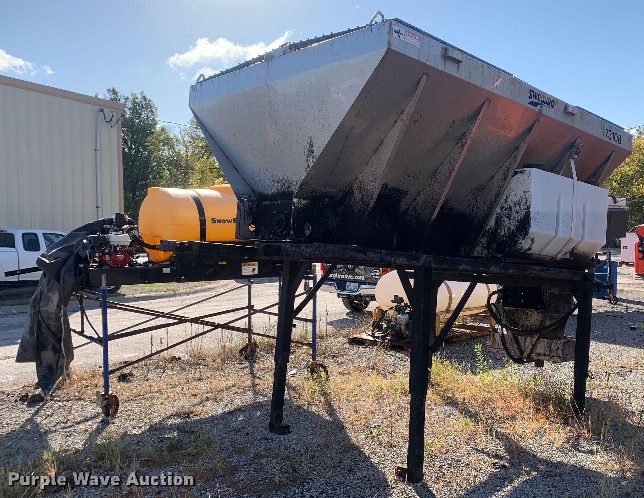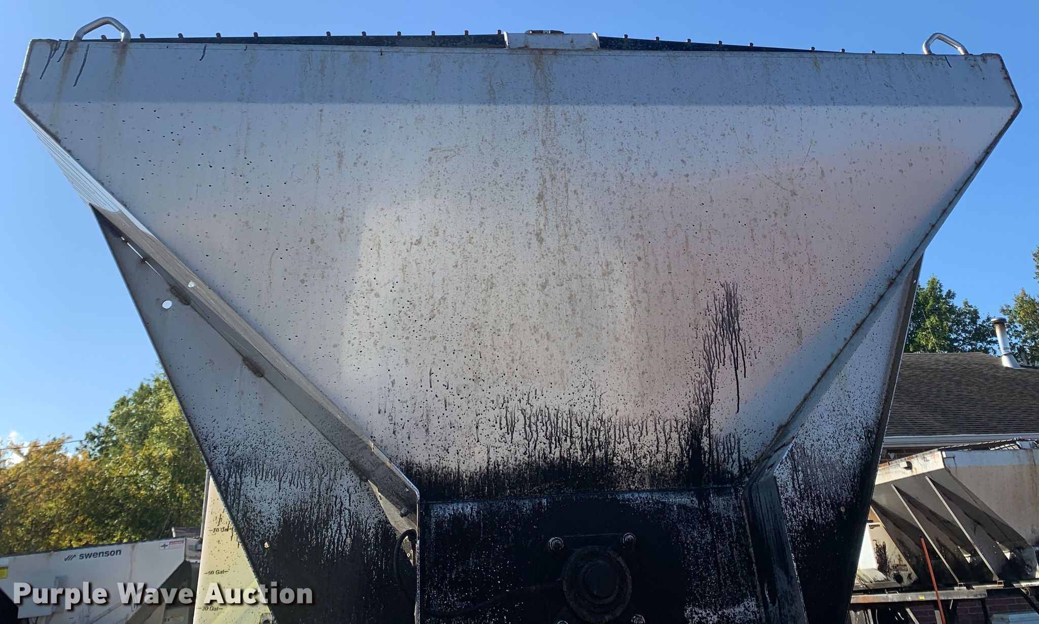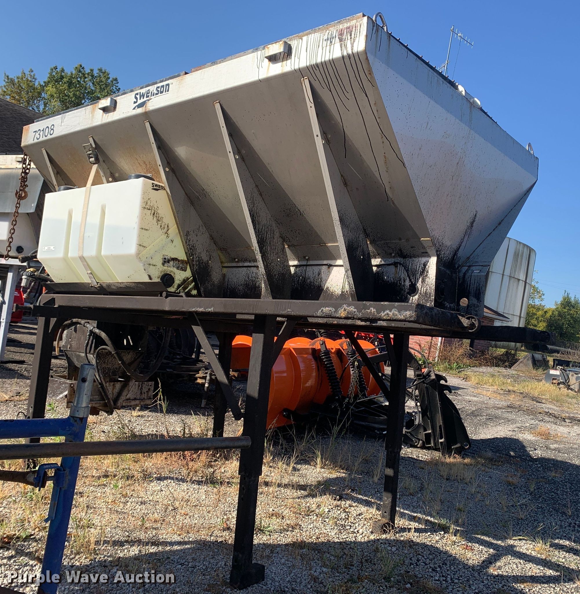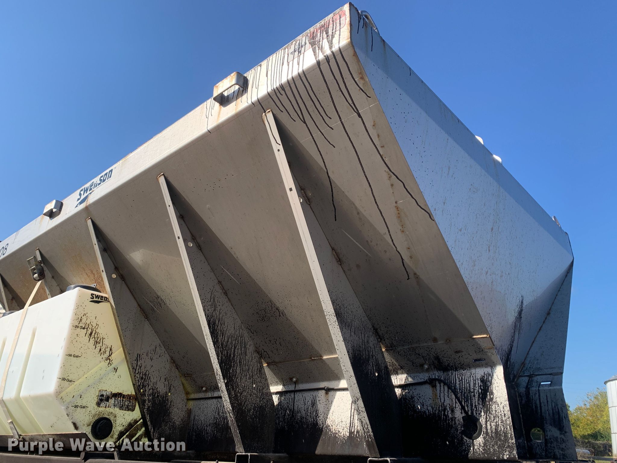 Purple Wave is selling a used Truck Part and Attach. in Missouri. This item is a 2013 Swenson EV-100 10-84-48 spreader with the following: 10'L x 84"W x 48"H, 5.5 cu.ft. capacity, (2) 90 gallon poly tanks, Stand