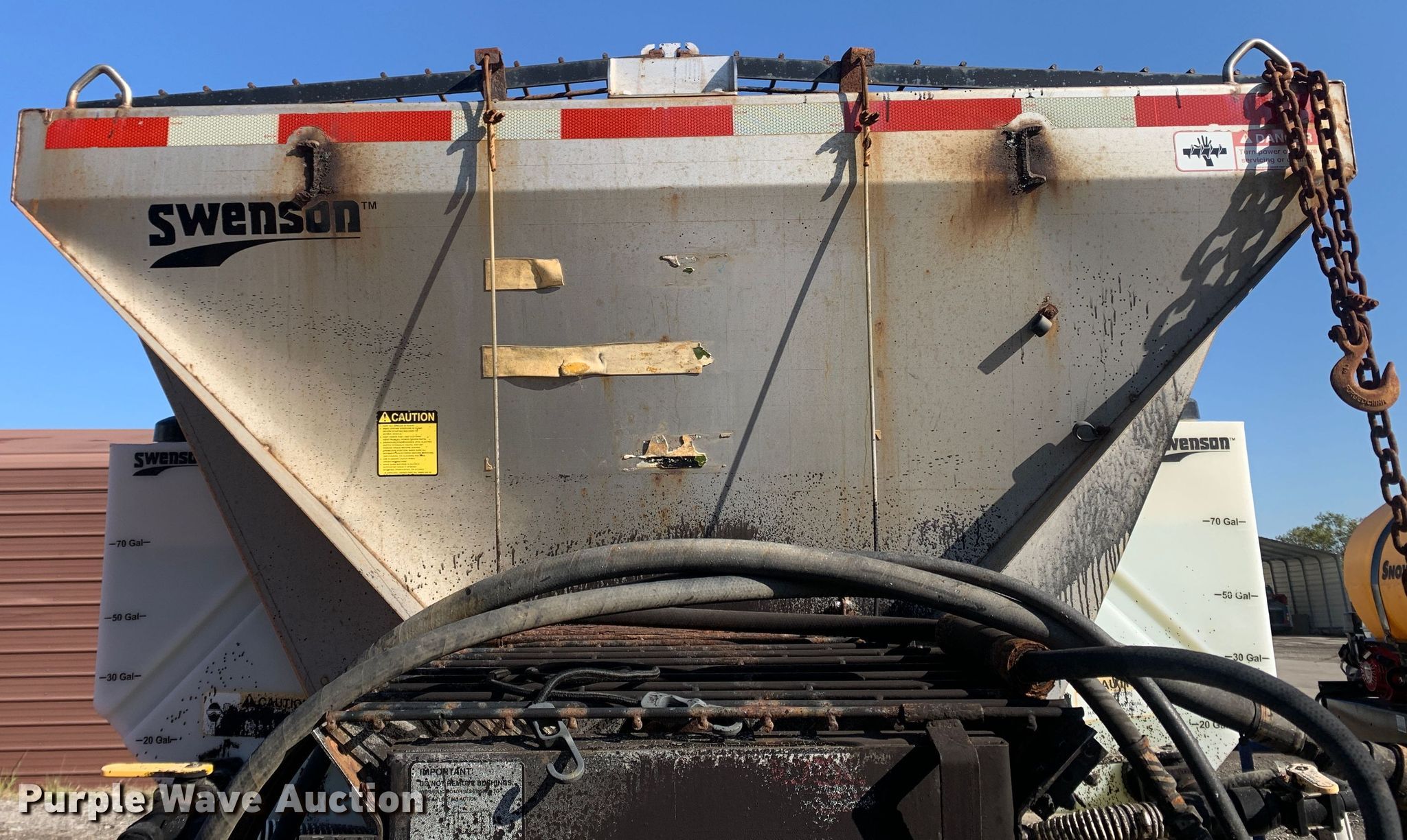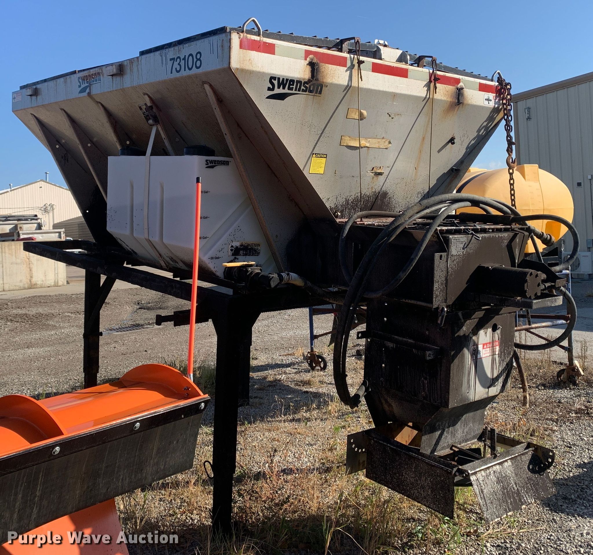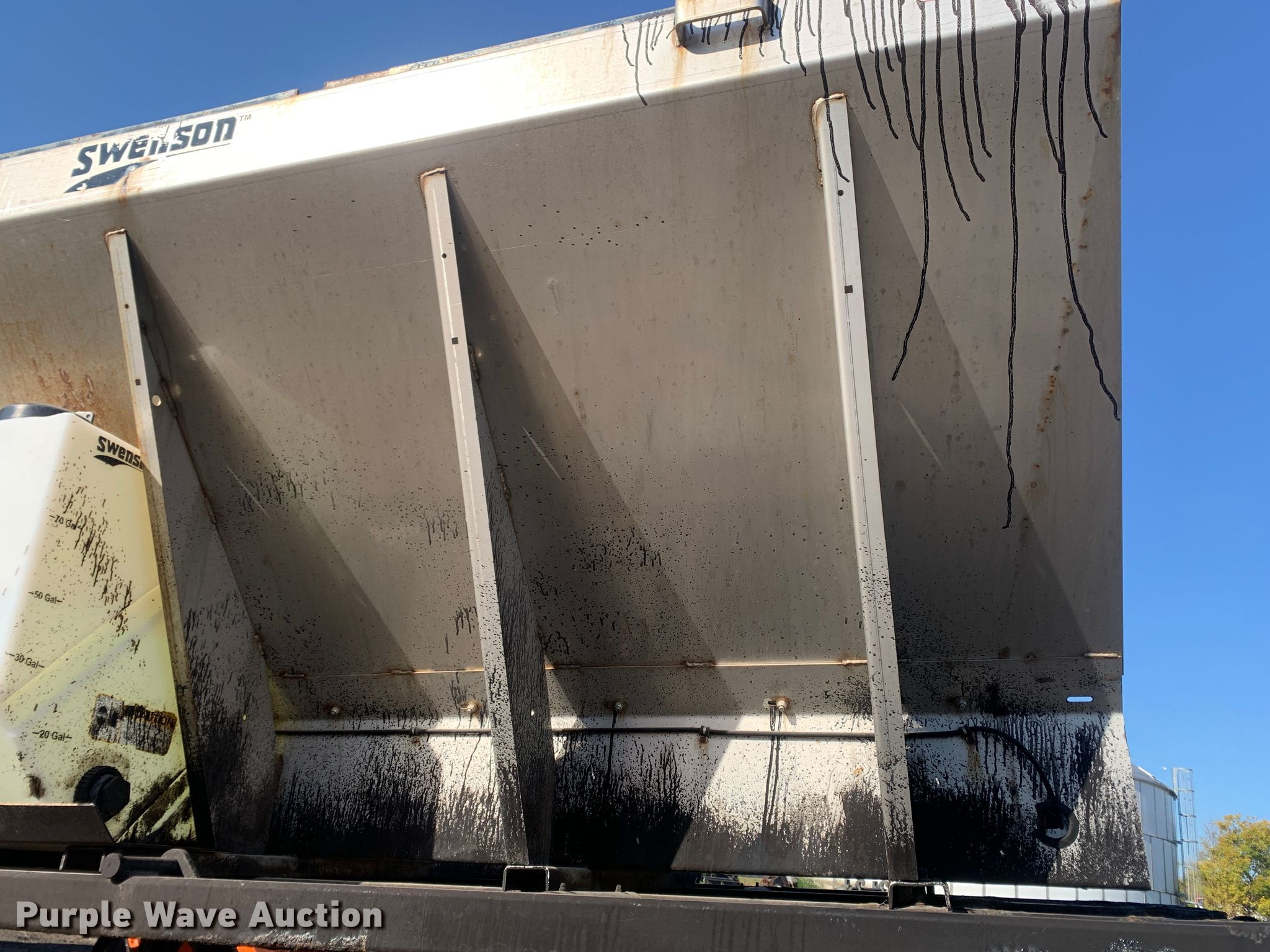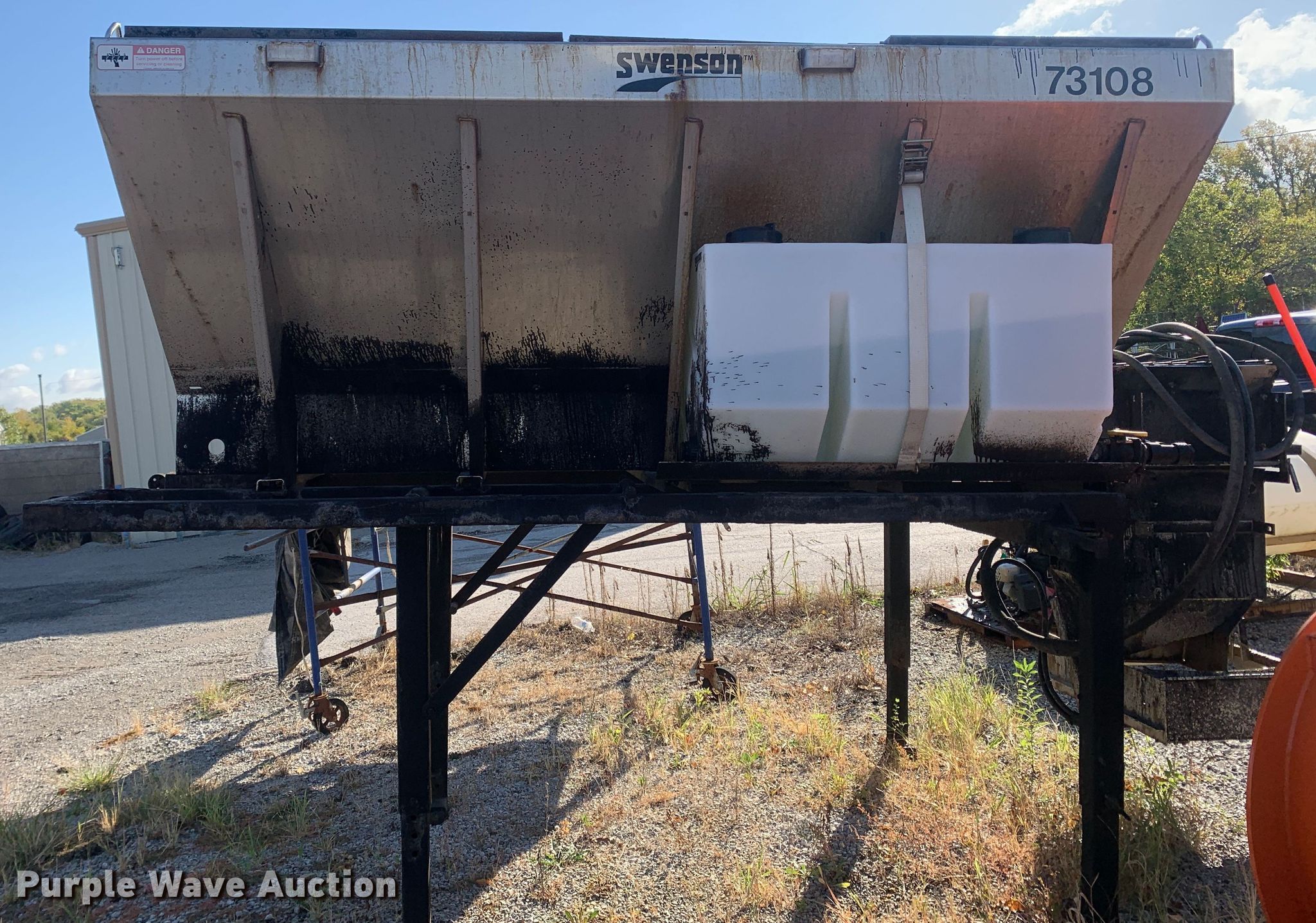 Purple Wave is selling a used Truck Part and Attach. in Missouri. This item is a 2013 Swenson EV-100 10-84-48 spreader with the following: 10'L x 84"W x 48"H, 5.5 cu.ft. capacity, (2) 90 gallon poly tanks, Stand