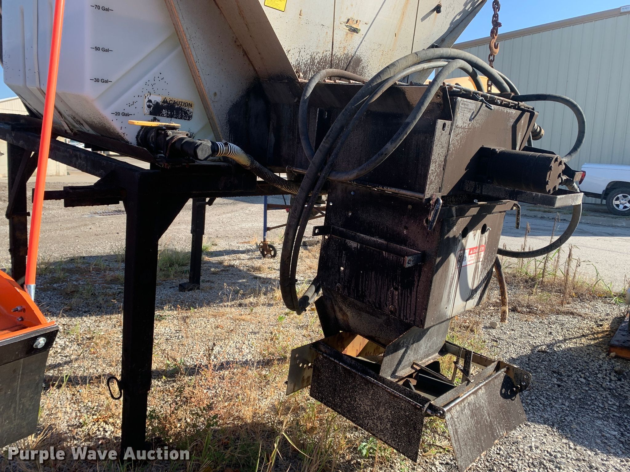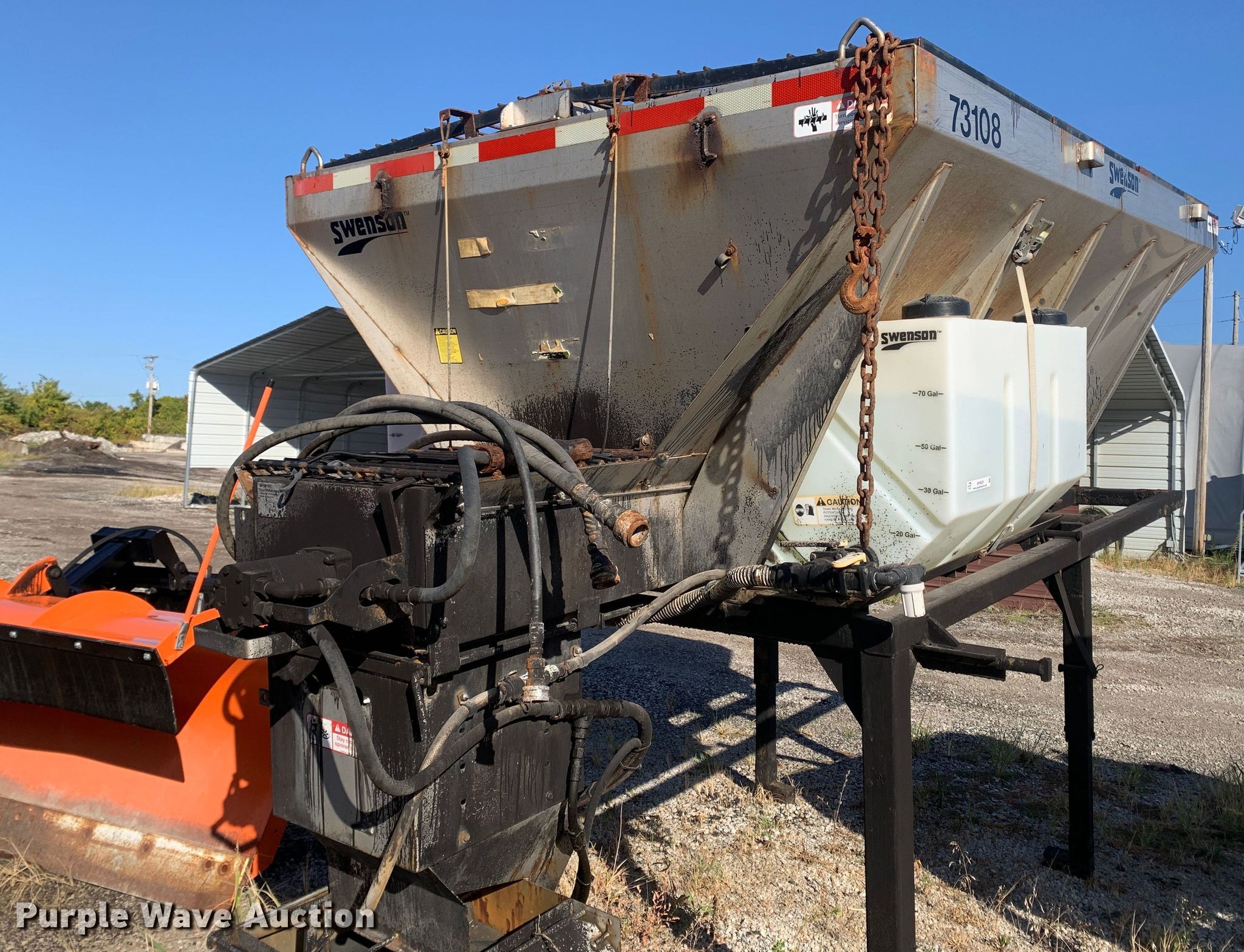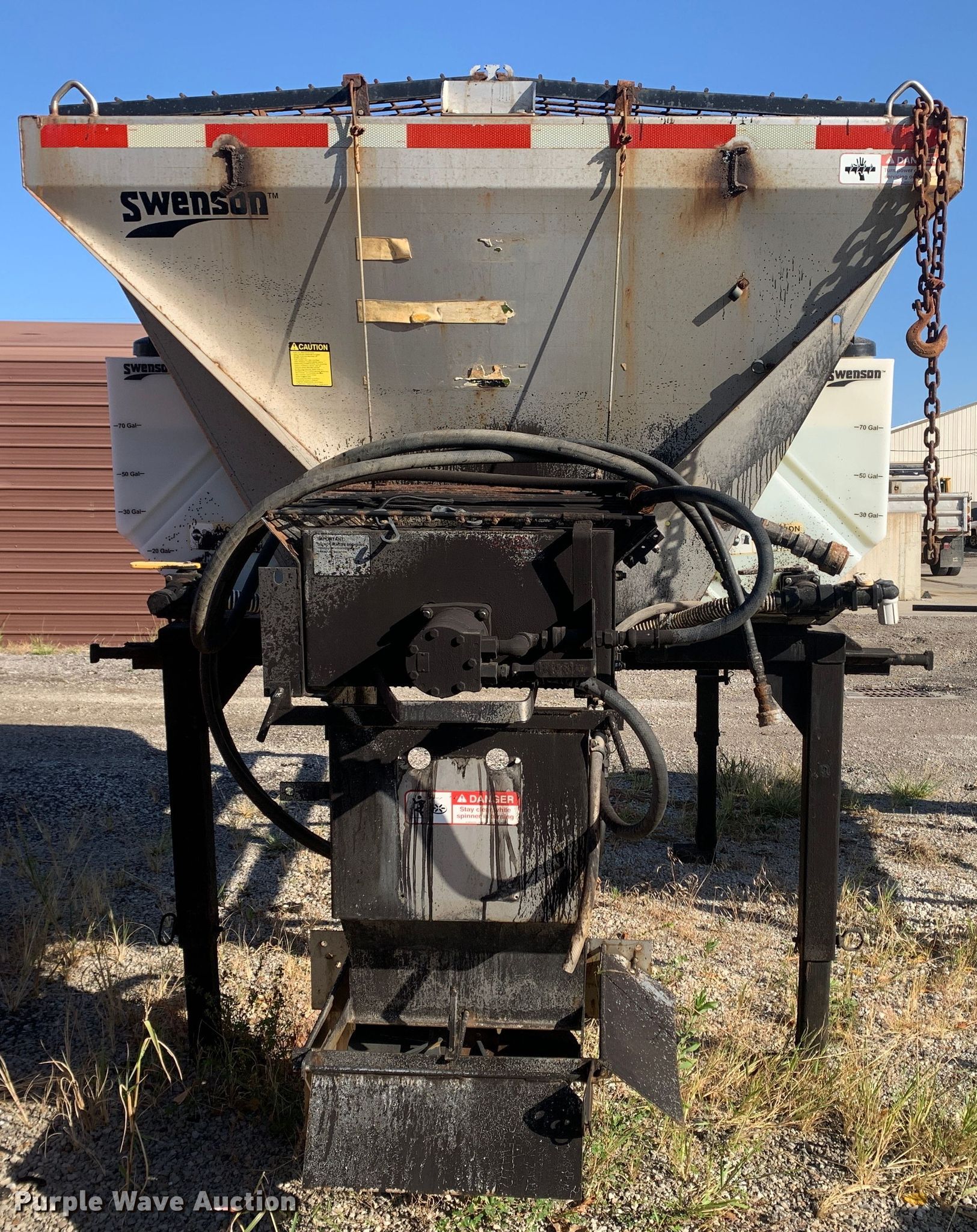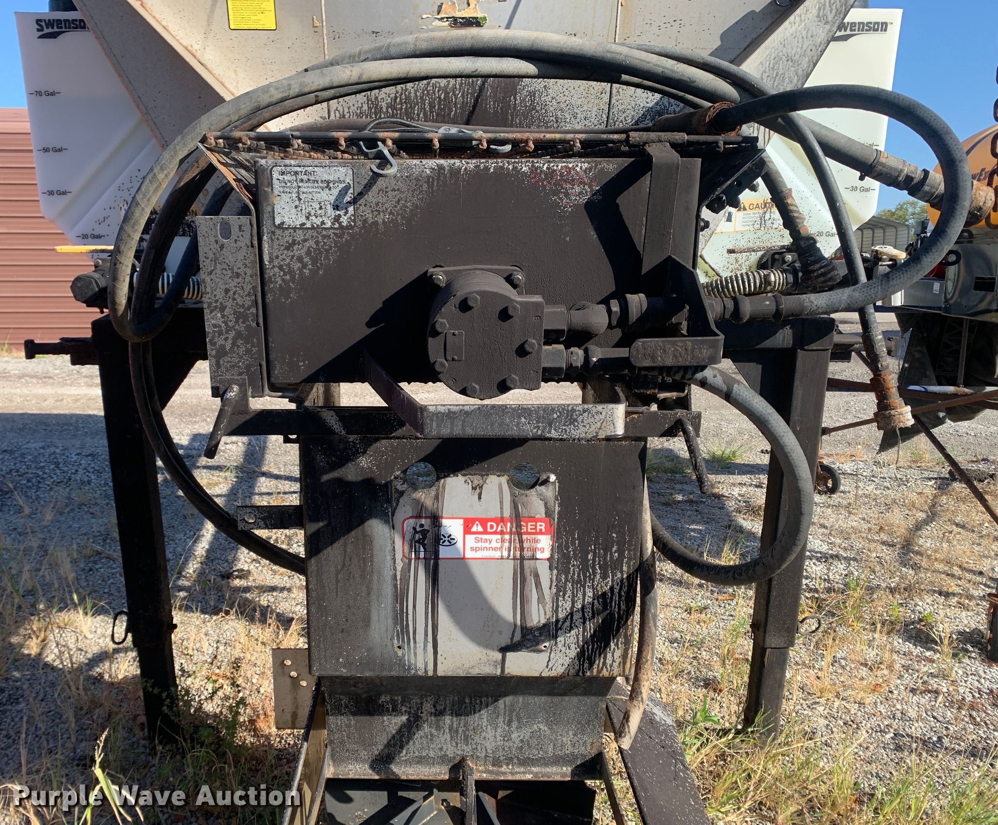 Purple Wave is selling a used Truck Part and Attach. in Missouri. This item is a 2013 Swenson EV-100 10-84-48 spreader with the following: 10'L x 84"W x 48"H, 5.5 cu.ft. capacity, (2) 90 gallon poly tanks, Stand