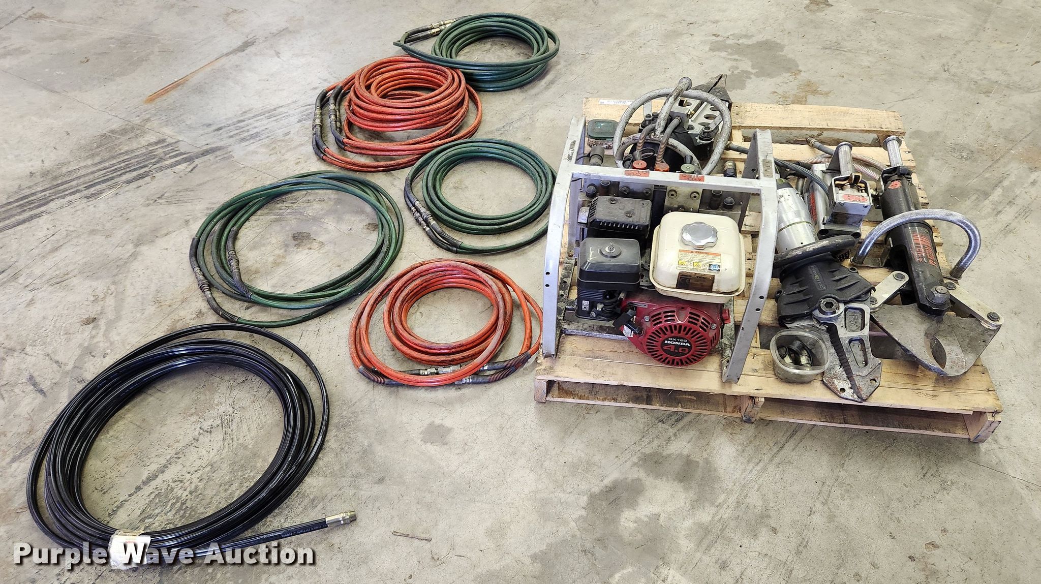 Purple Wave is selling a used Tools in Missouri. This item is a ResQtec rescue equipment with the following: Hydraulic power pack, Honda GX120 engine, (2) cutters, Spreader, Ram, Hoses