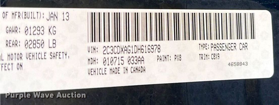 Purple Wave is selling a used Passenger Vehicle in Kansas. This item is a 2013 Dodge Charger Police with the following: Miles: 108,896 on odometer, VIN: 2C3CDXAG1DH616978