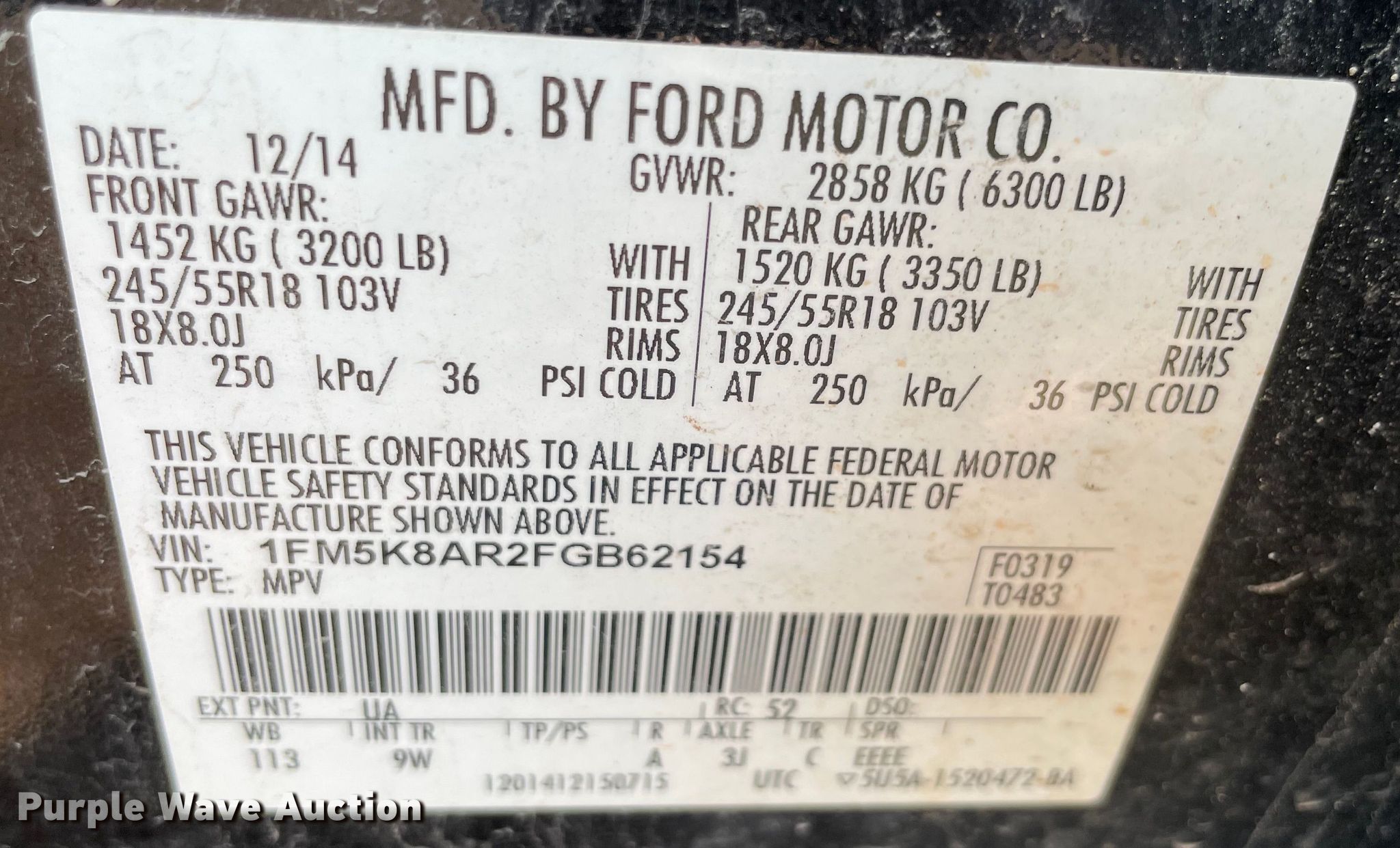 - VIN: 1FM5K8AR2FGB62154