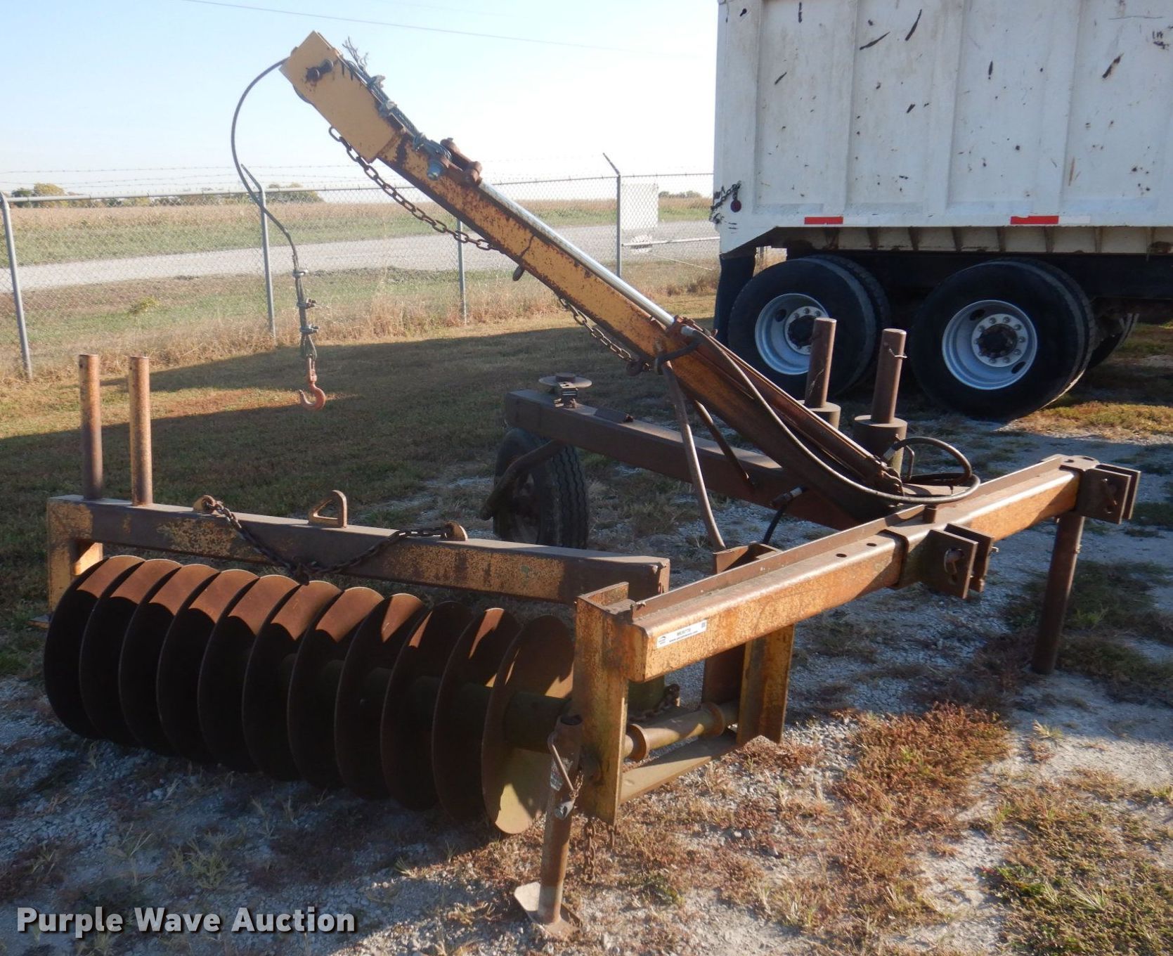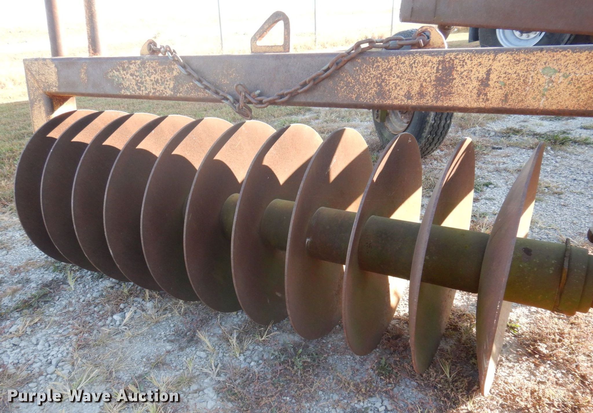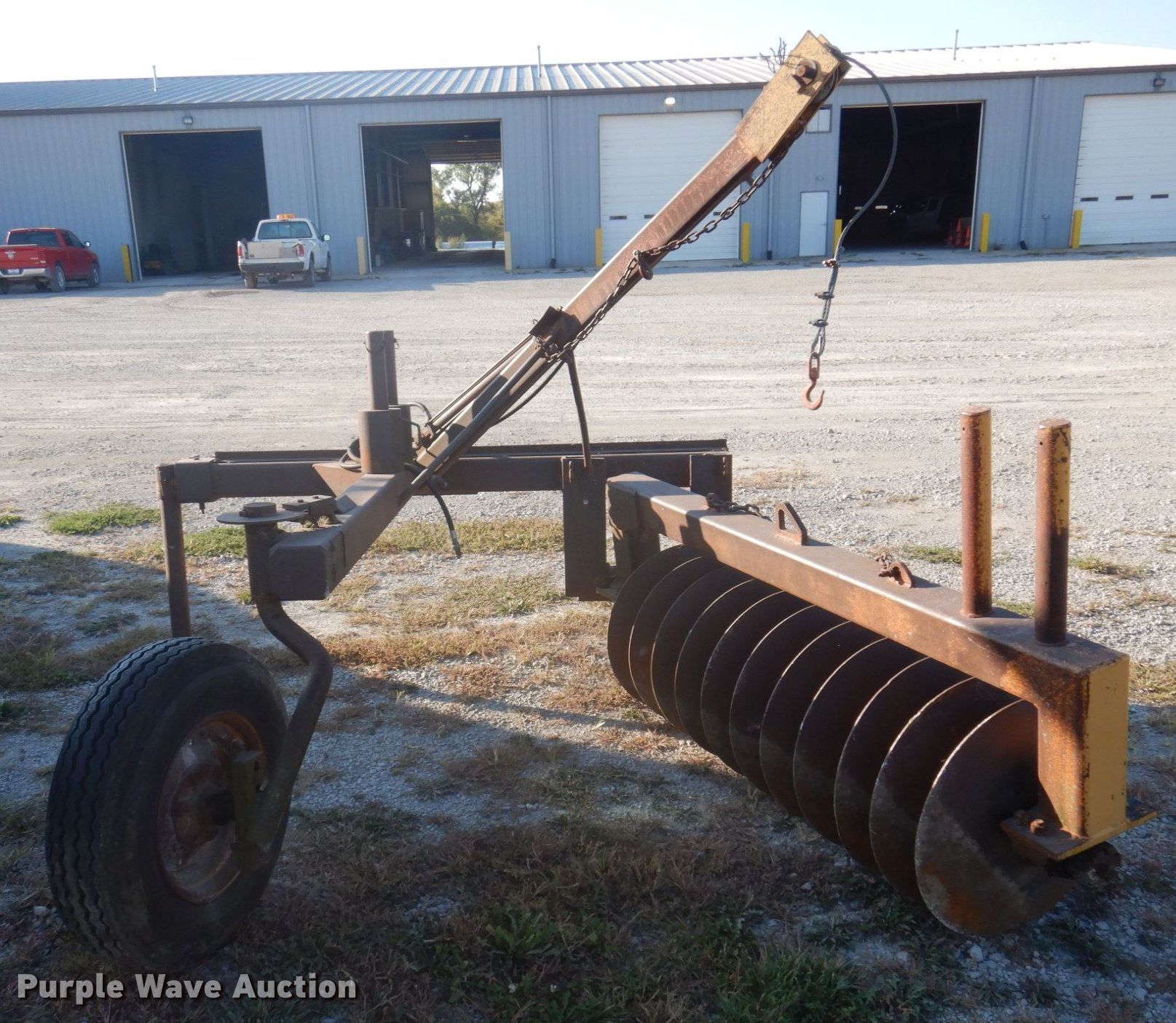 Purple Wave is selling a used Paving Sply. or Attach. in Missouri. This item is a Shoulder reclaimer disk with the following: Blades, Spacing: 5.5", Operation, Hydraulic lift, Attachments, Hitch: Three point