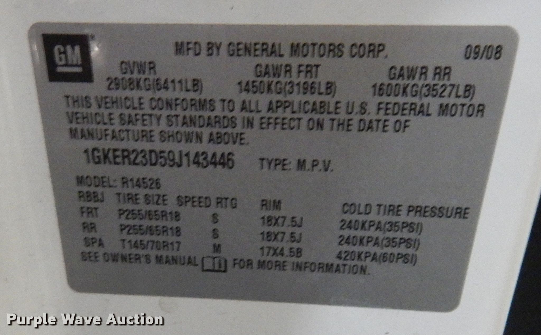 - VIN: 1GKER23D59J143446
