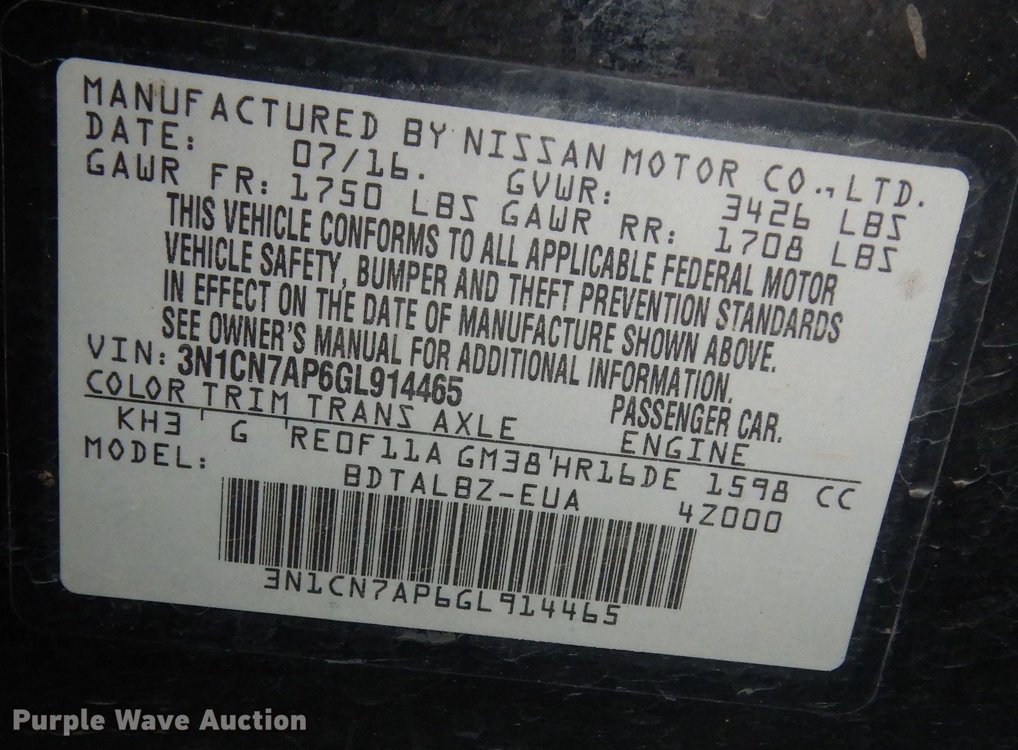 • DI6766 image for item DI6766 2016 Nissan Versa SV