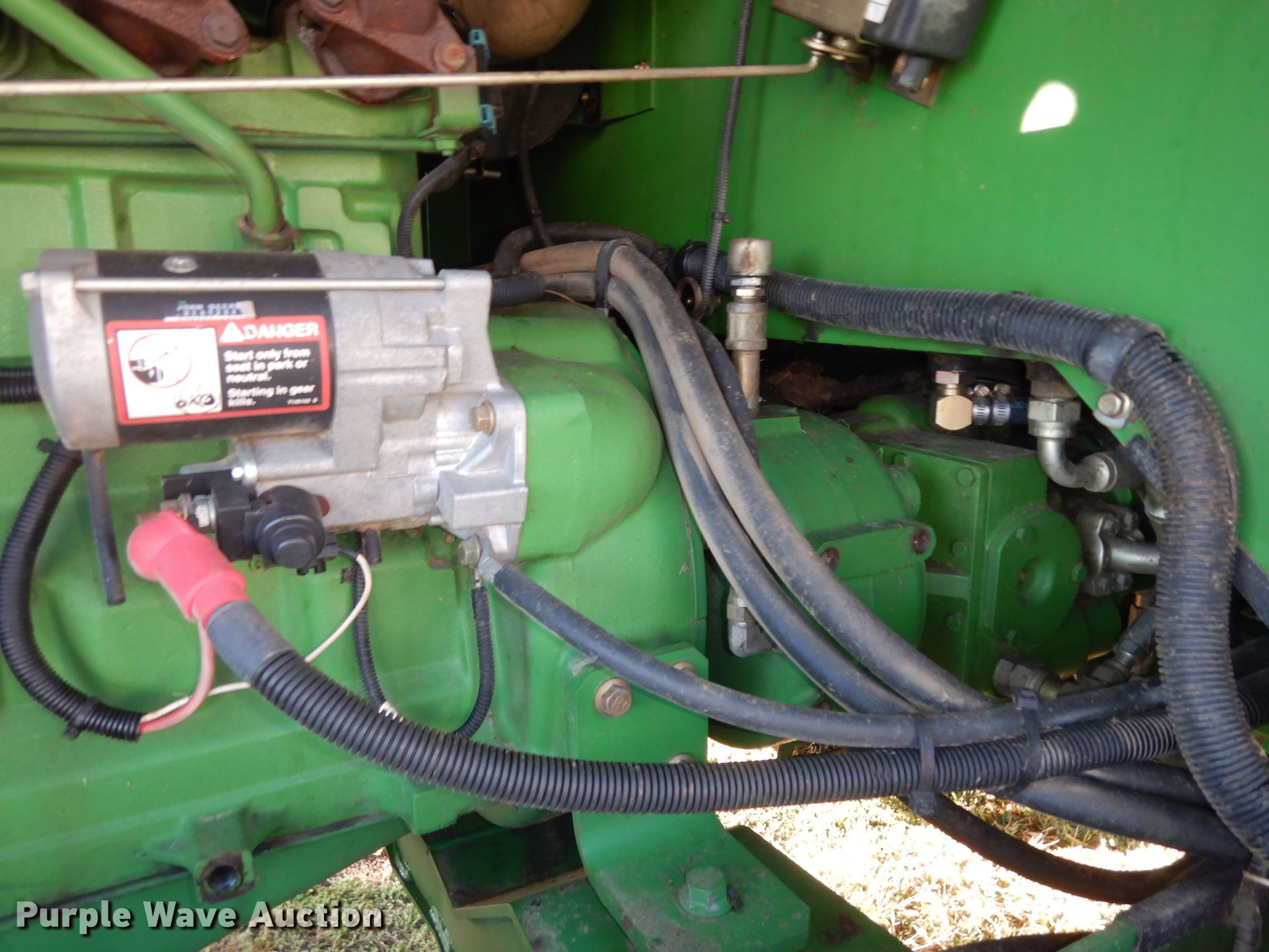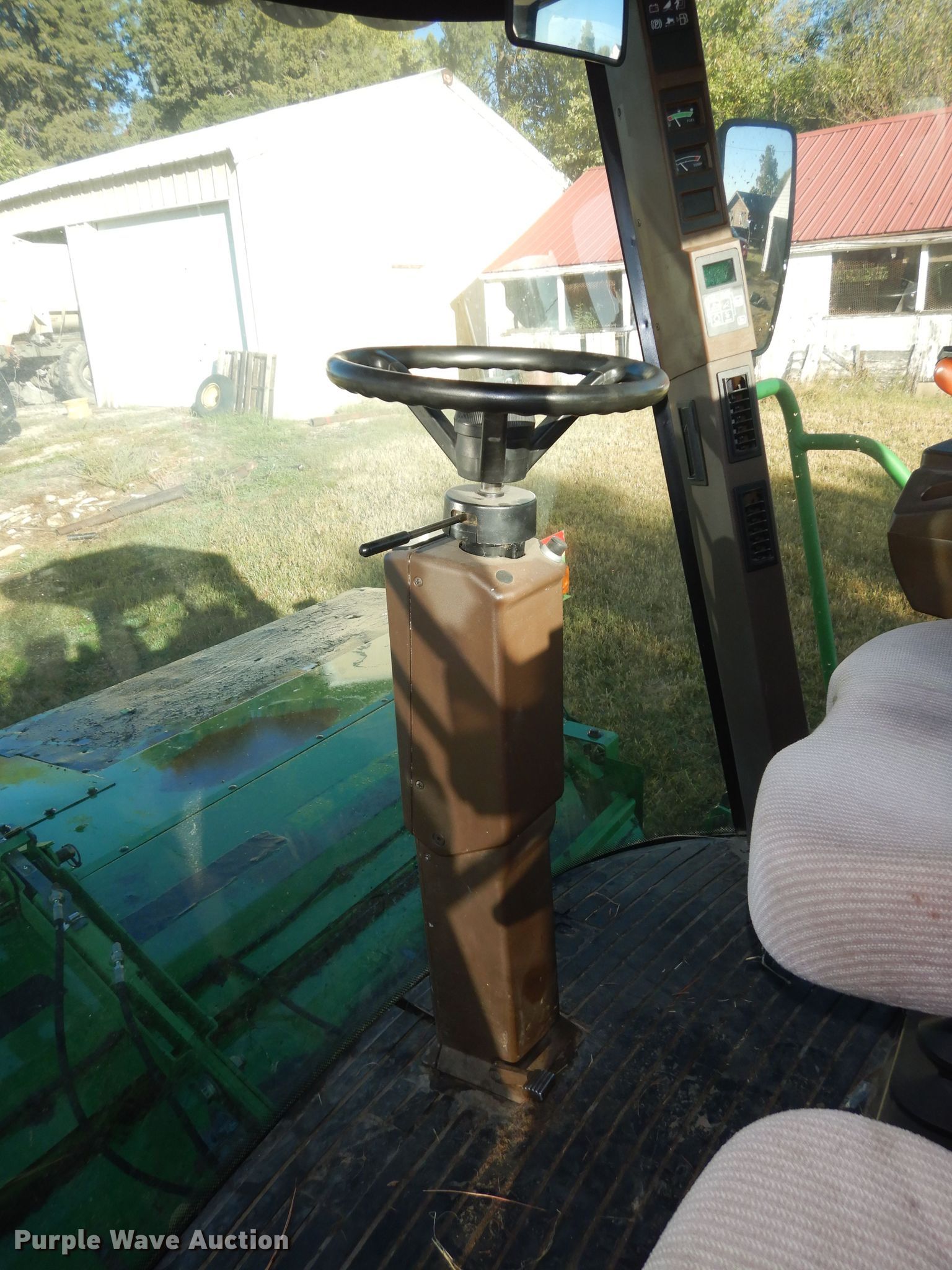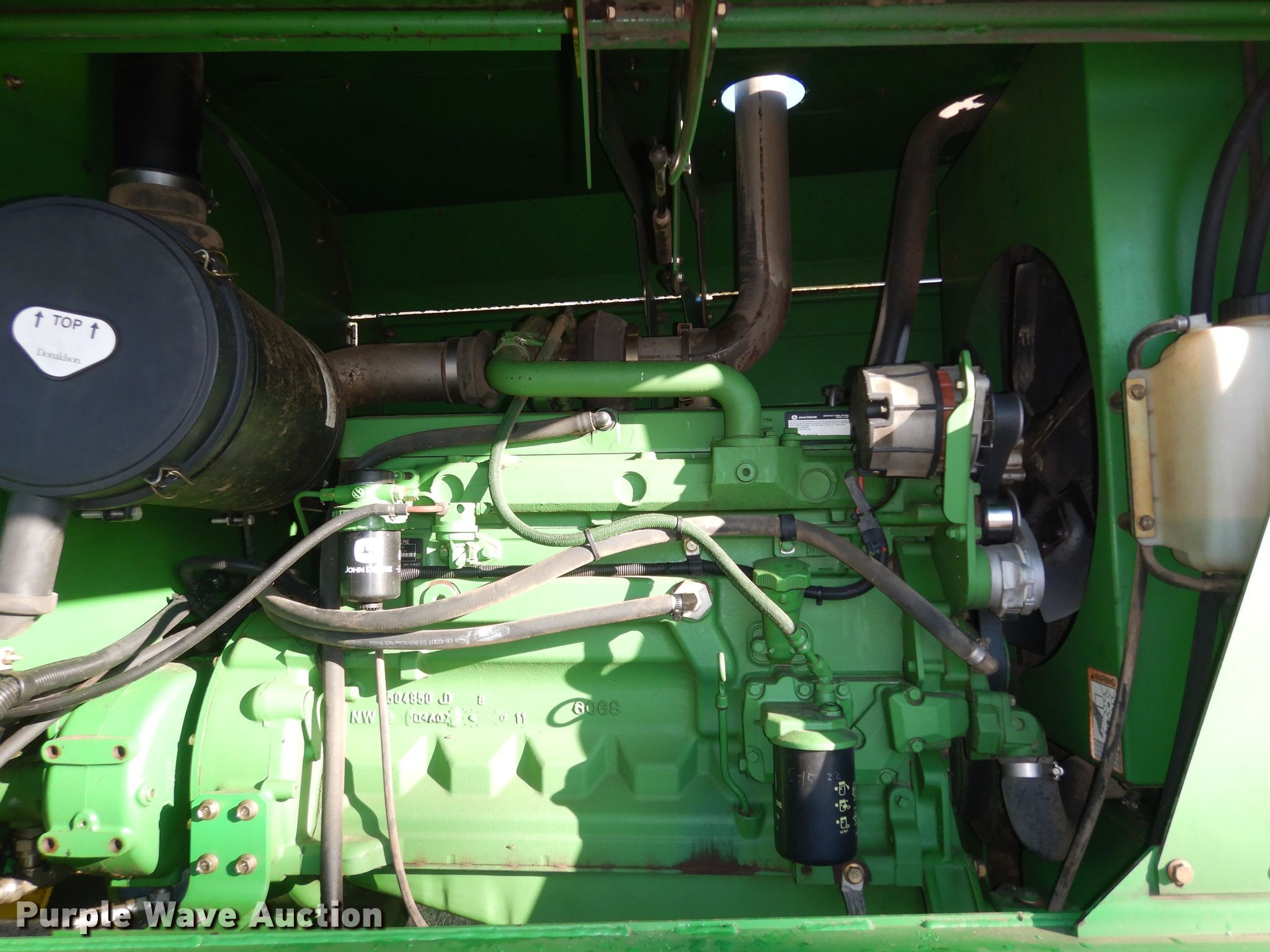 2007 John Deere 4995 windrower. Engine hours: 2,689 on meter, Header hours: 1,988 on meter, Serial: E04995X330682. Engine John Deere 6068TE051, Serial: PE6068T643523, Displacement: 6.8L, Cylinders: 6, Fuel type: Diesel, kW: 136. Transmission Hydrostatic. Operators station AC, Heat. Features Disc head John Deere, Width: 16', Conditioners: Steel/ steel, Suitcase weights: 10. Tires Front: 18.4-26, Rear: 14L-16.1. Riley, KS 66531