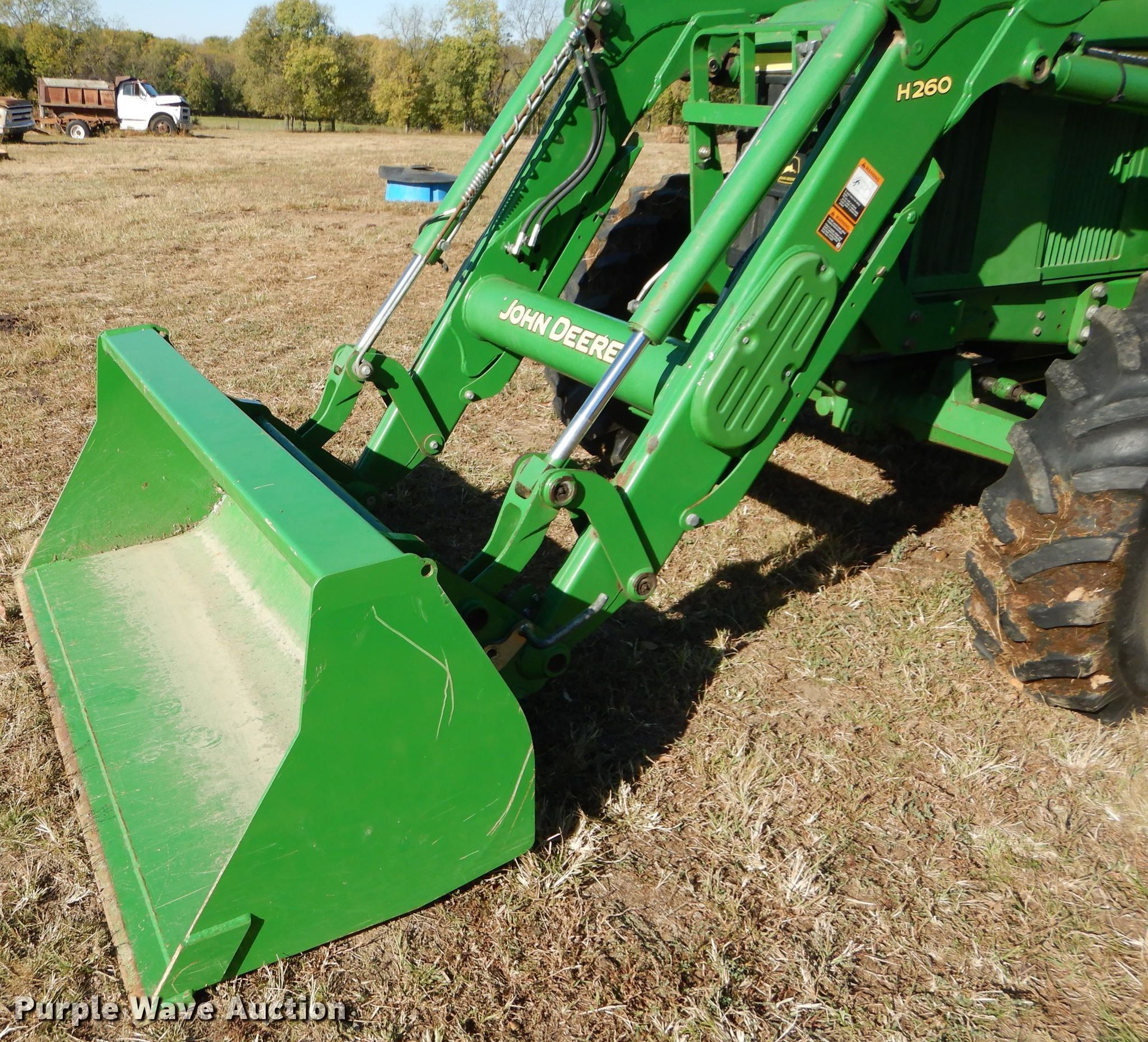 2000 John Deere 6405 MFWD tractor. Hours: 3,732 on meter, Serial: L06405M302897. Engine John Deere, Cylinders: 4, Fuel type: Diesel. Transmission Synchro, 12F - 4R. Chassis Differential lock. Operators station AC, Heat. Features PTO: 540, Three point Top link, Seven pin outlet, Hydraulic remote sets Front: 2, Rear: 3, Loader John Deere H260, Quick attach, Controls: Joystick, Bucket Width: 72".. Tires Front: 12.4-24, Rear: 18.4-34. Lawrence, KS 66044