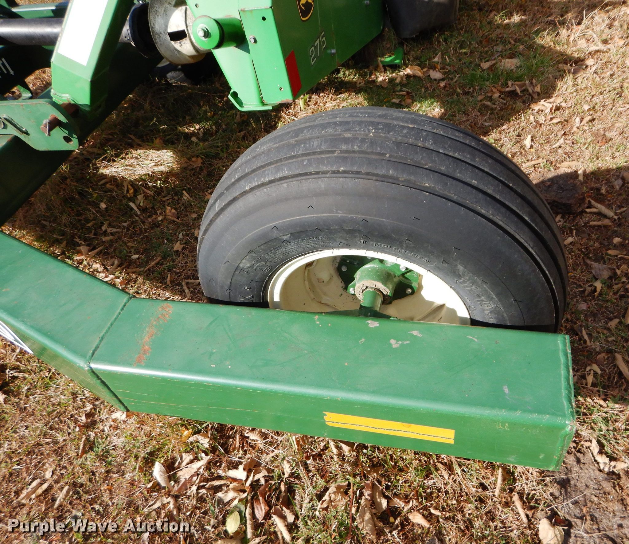 John Deere 275 rotary mower. Serial: E00275X351233. Features Width: 9', Hydraulic lift, Hydraulic fold, PTO: 540, Caddy KMC. Tires Size: 11L-15SL. Lawrence, KS 66044