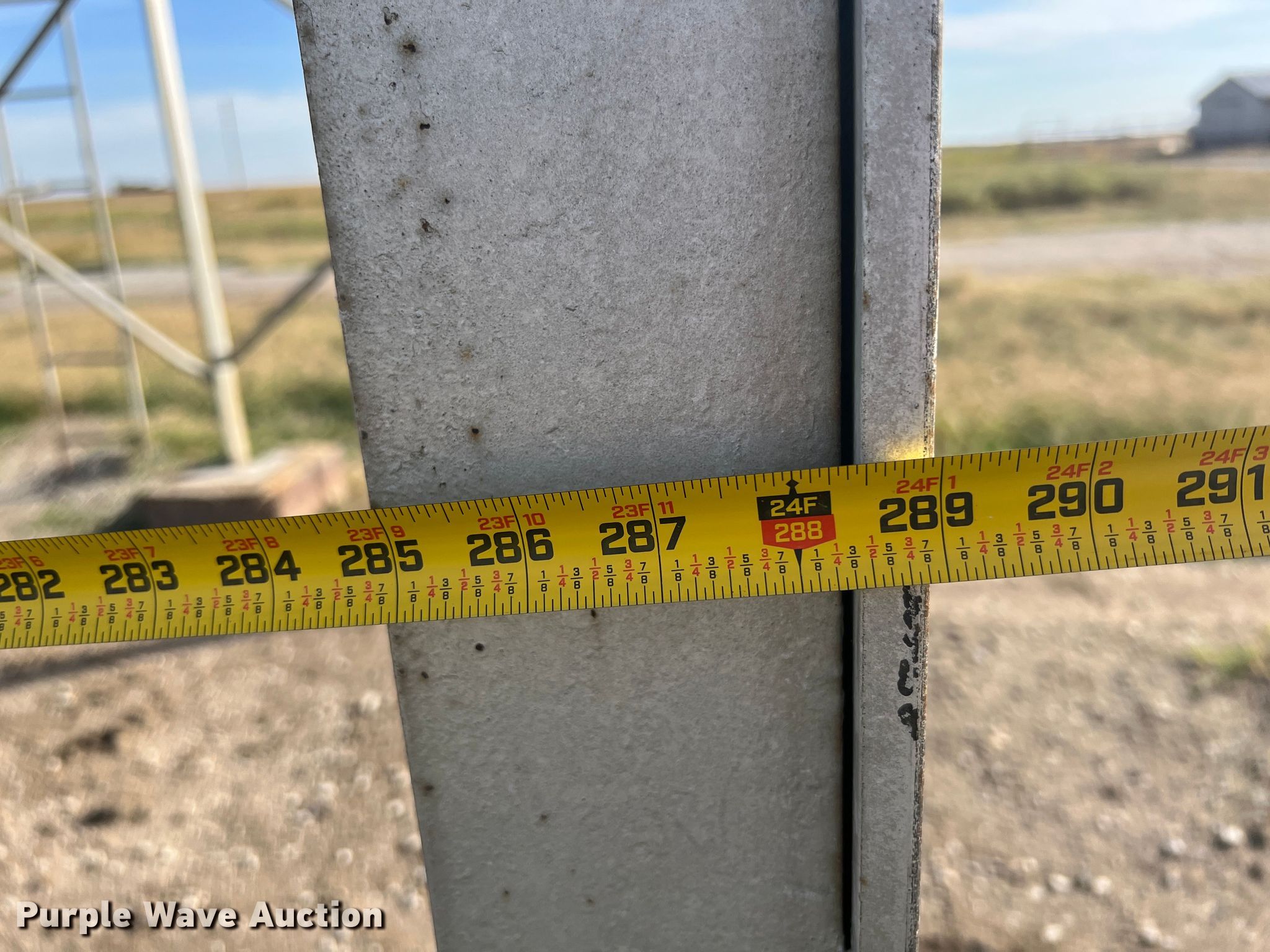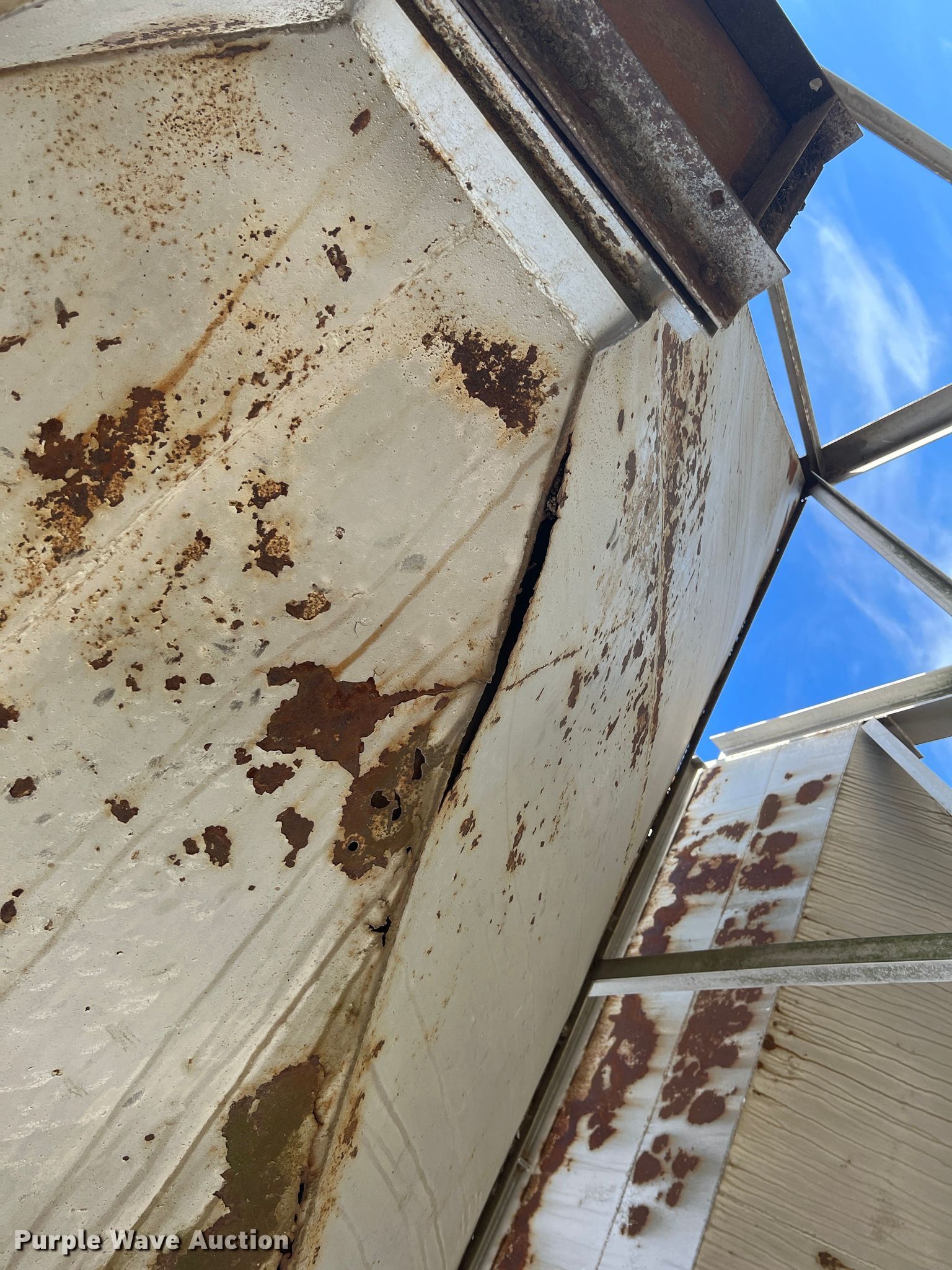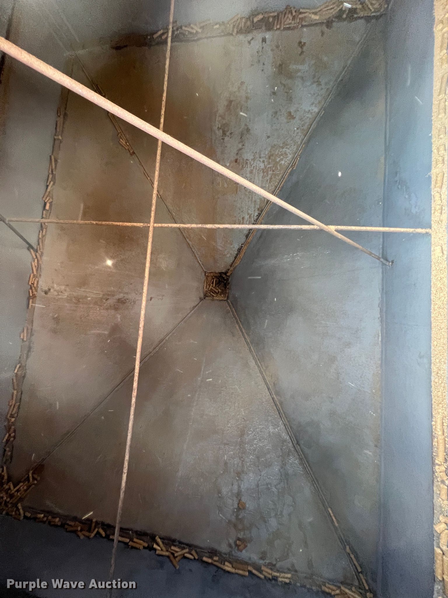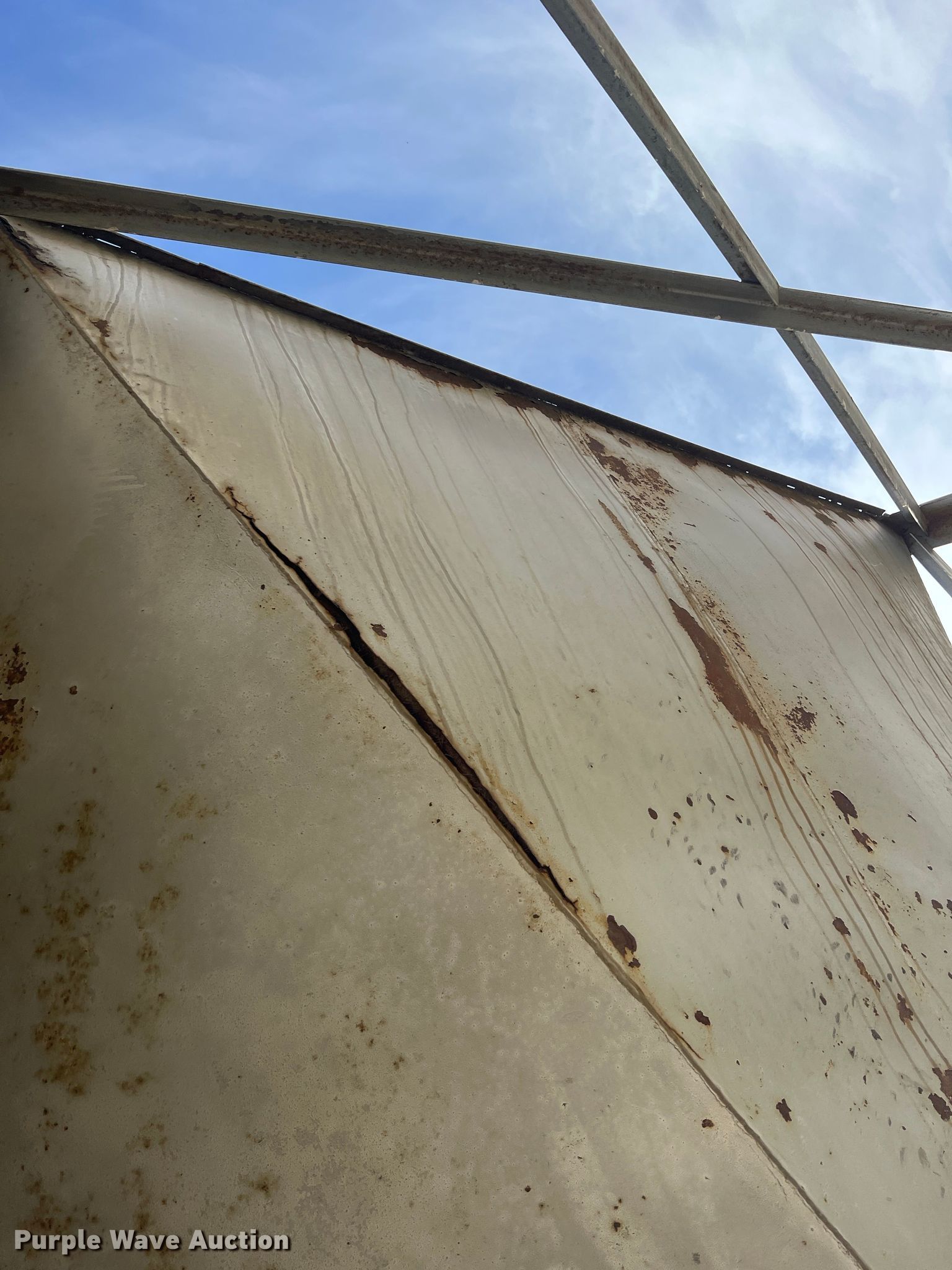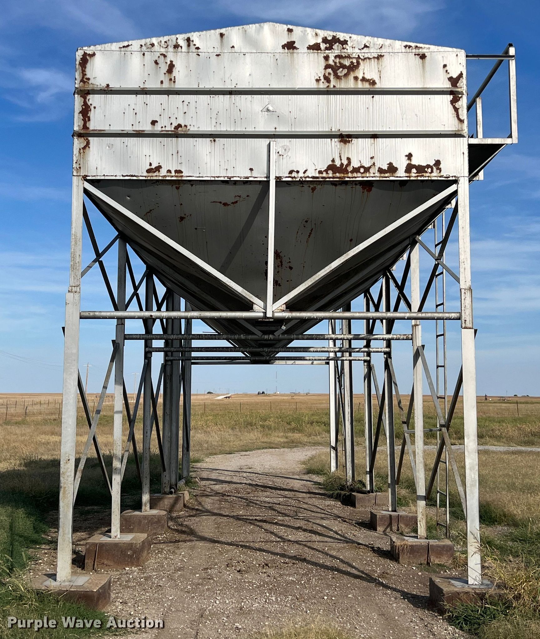Purple Wave is selling a used Other Grain or Fertilizer Handling in Oklahoma. This item is a Feed bin with the following: 18'H, 25 ton capacity, 12' x 24' base, Bottom cracked, fiberglass lined