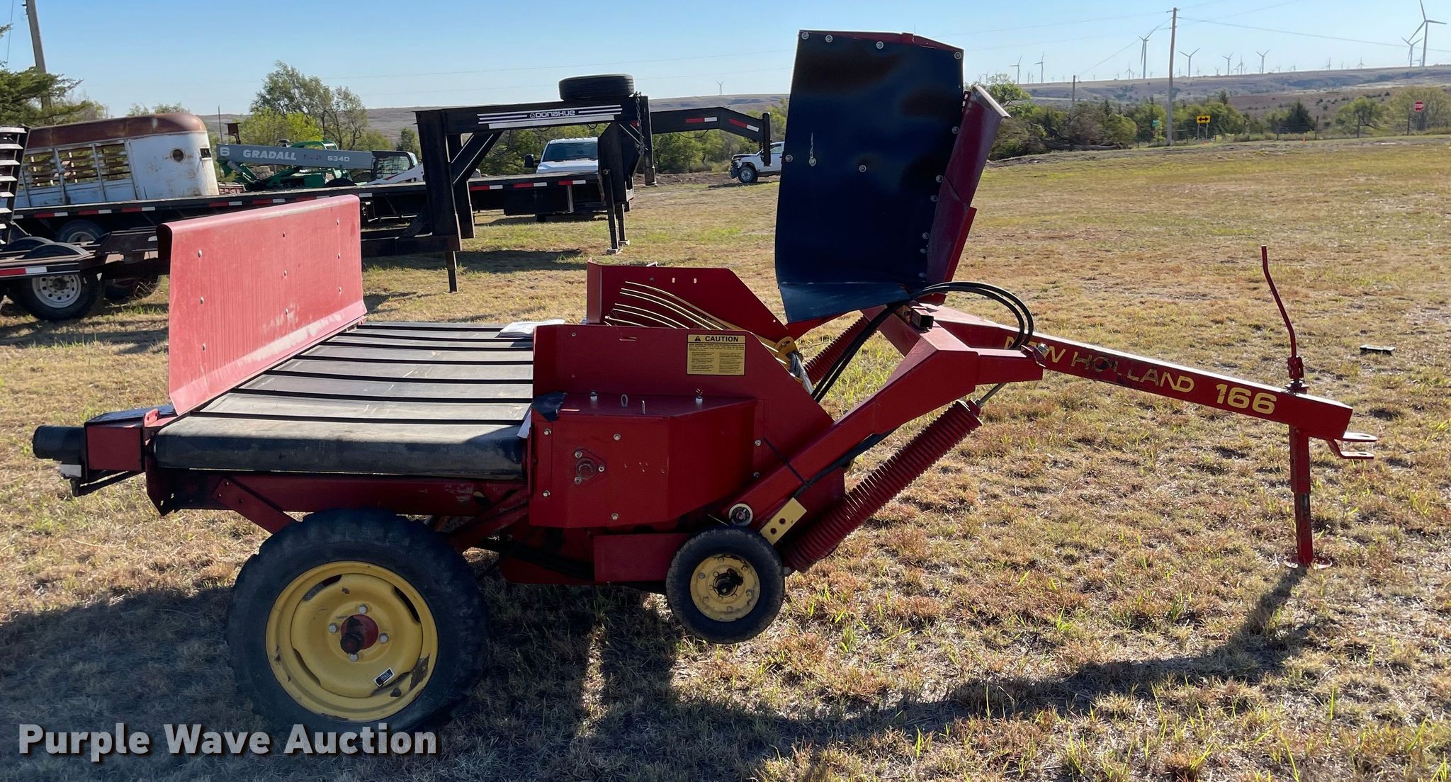 Purple Wave is selling a used Hay Handling in Kansas. This item is a New Holland 166 windrow turner with the following: 64"W pickup, 36"W conveyor, Hydraulic driven, 5.00-15 tires, Serial: 846188