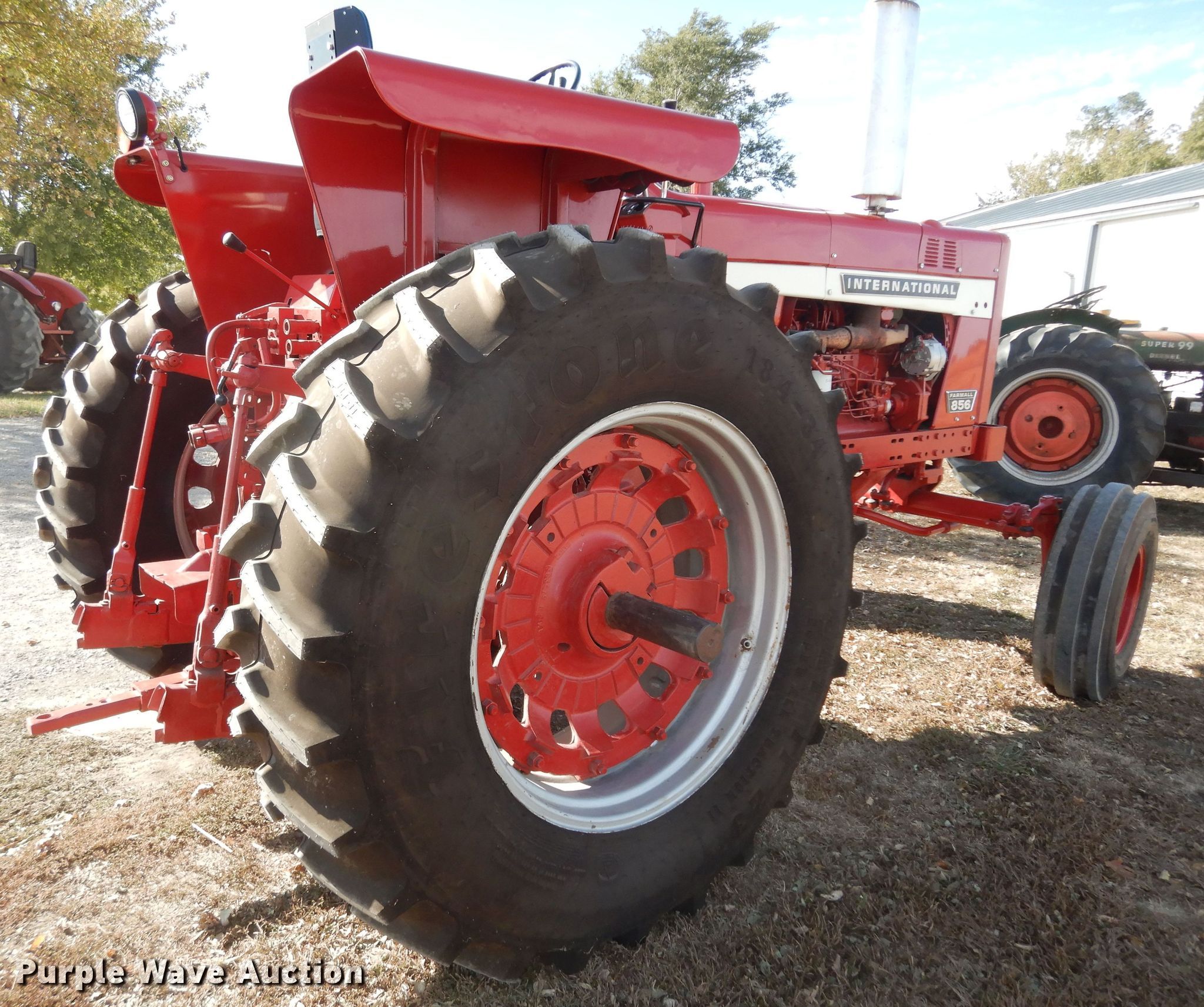 1970 International Farmall 856 tractor. Hours: 1,245 on meter, Serial: 2610142U029437. Engine International, Cylinders: 6, Fuel type: Diesel. Transmission Torque amplifier, 8F - 2R. Features PTO: 540, 1000, Three point, Hydraulic remote sets Rear: 2. Tires Front: 10.00-16, Rear: 18.4-34, Wheel weights: 1. Seneca, KS 66538