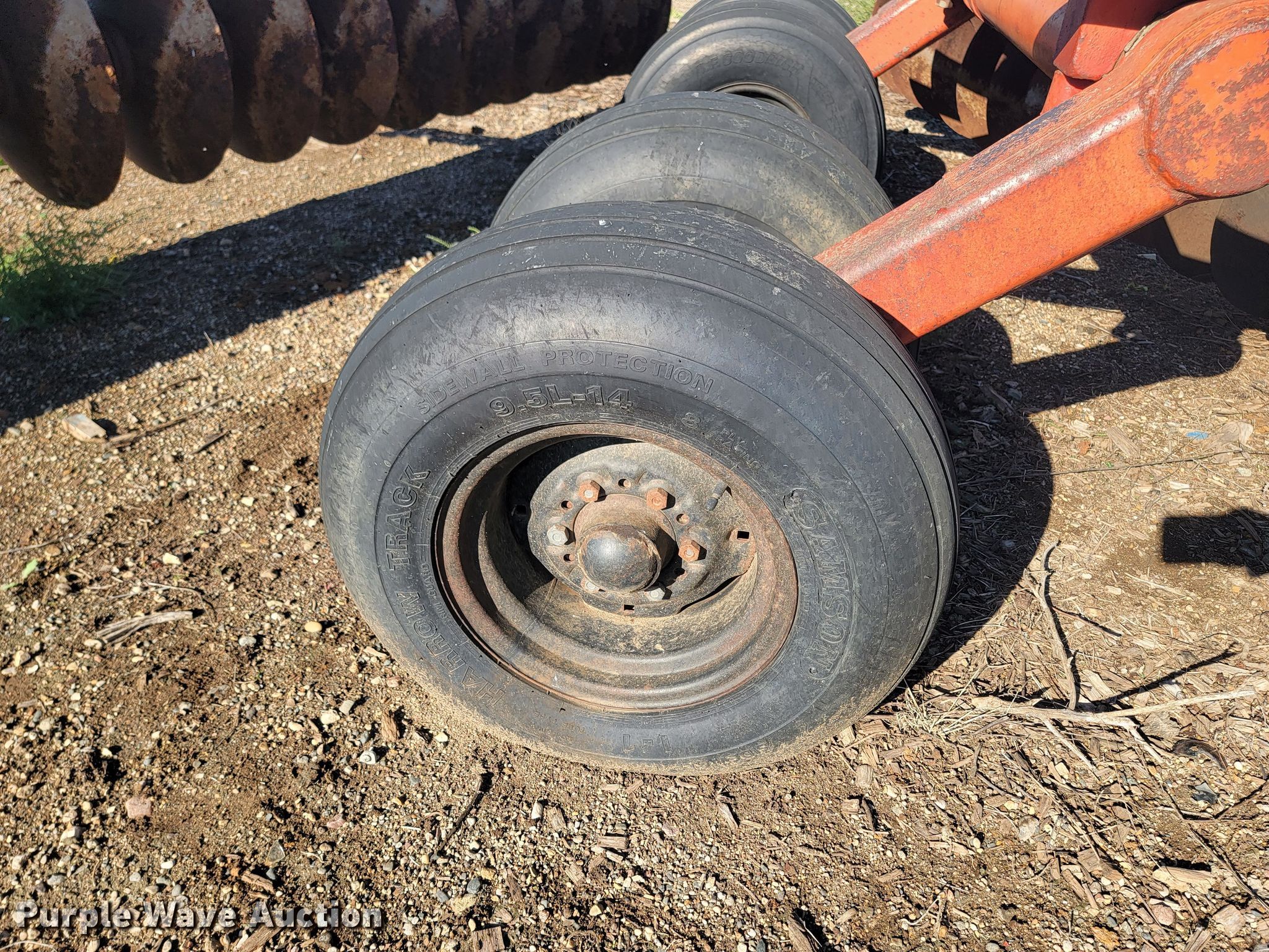 Miller off-set disk. Overall width: 17' 6", Serial: 181HN 3331S. Features Front blades Diameter: 23", Spacing: 9", Rear blades Diameter: 23", Spacing: 11", Disk scrapers, Operation Hydraulic lift, Leveler: Hydraulic. Tires Tire size: 9.5L-14. 47029 282nd. Lennox, SD 57039