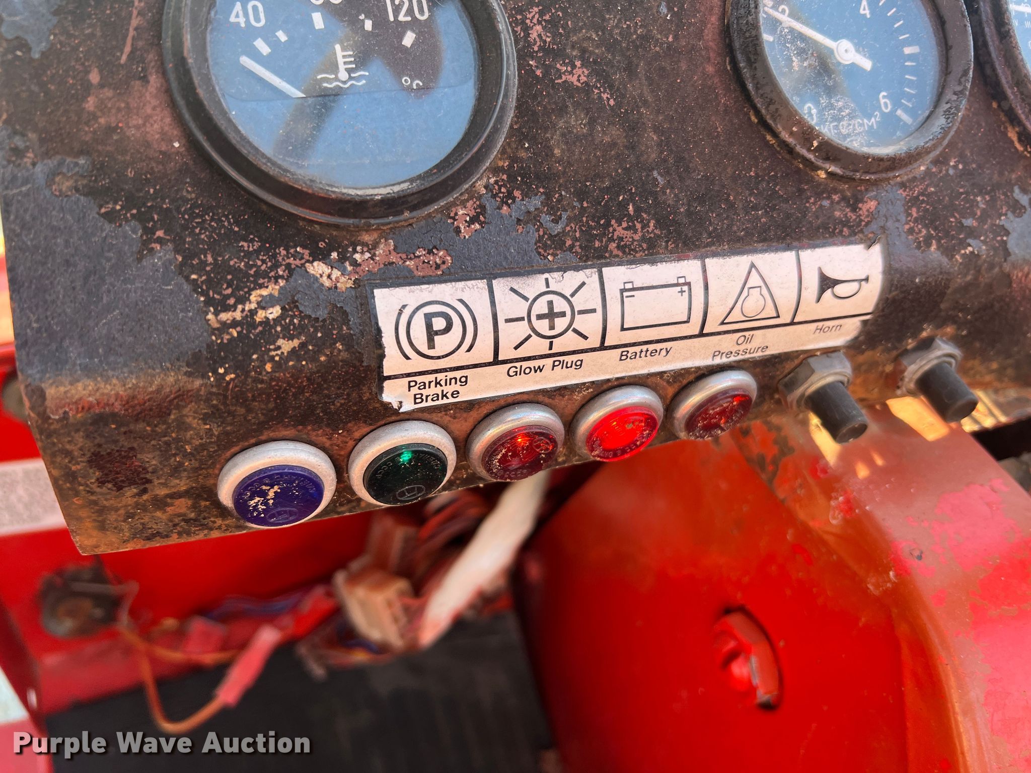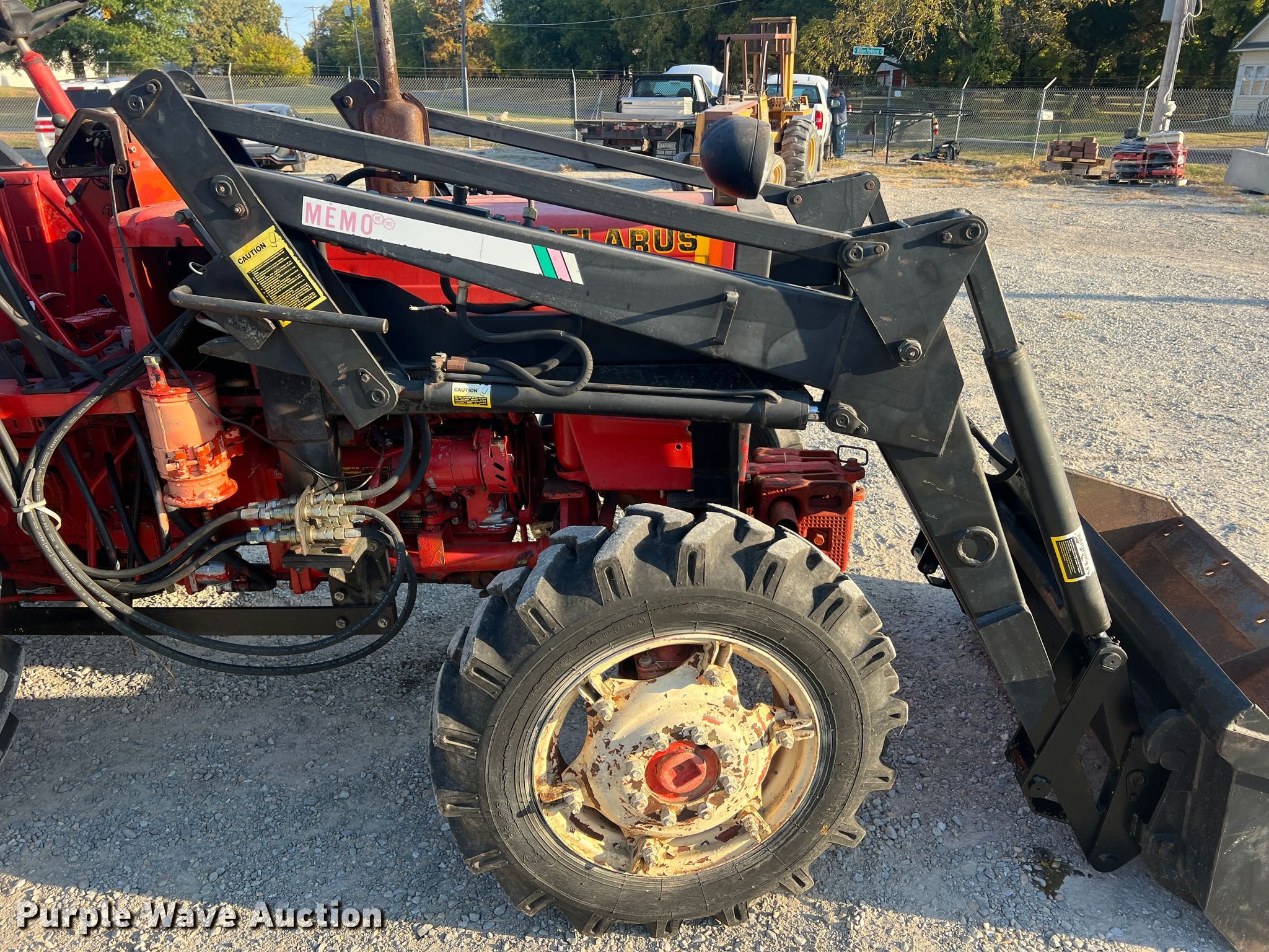 Belarus 310 MFWD tractor. Hours: 146 on meter, Serial: 1257. Engine Cylinders: 2, Fuel type: Diesel. Transmission Manual, 6F - 6R. Features PTO: 540, Three point, Hydraulic remote sets Rear: 1, Suitcase weights: 4, Loader Memo ML300, Controls: Joystick, Bucket Width: 61.5".. Tires Front: 8.3-20, Rear: 11.2-28. Notes Injection pump line leak, will be repaired prior to auction, Loader tilt cylinder leak. 923 N Grand Ave. Sedalia, MO 65301