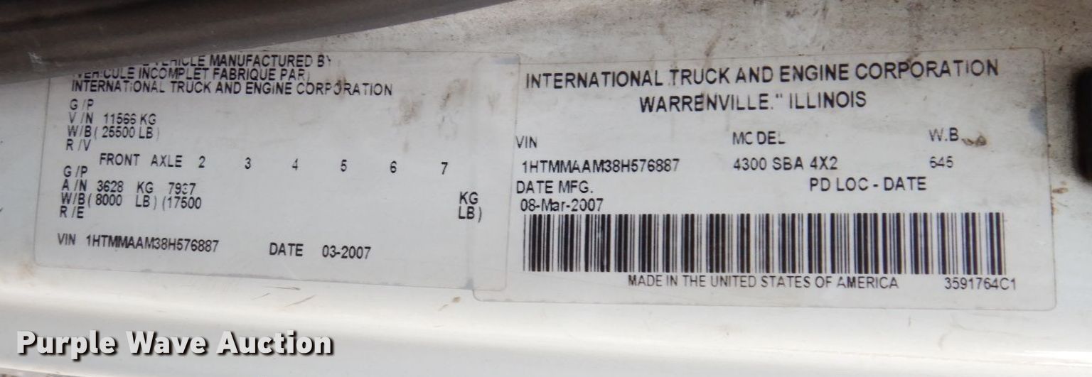 Purple Wave is selling a used Flat Bed Truck in Michigan. This item is a 2008 International 4300 flatbed truck with the following: Miles: Unknown, VIN: 1HTMMAAM38H576887, Unit #: 809