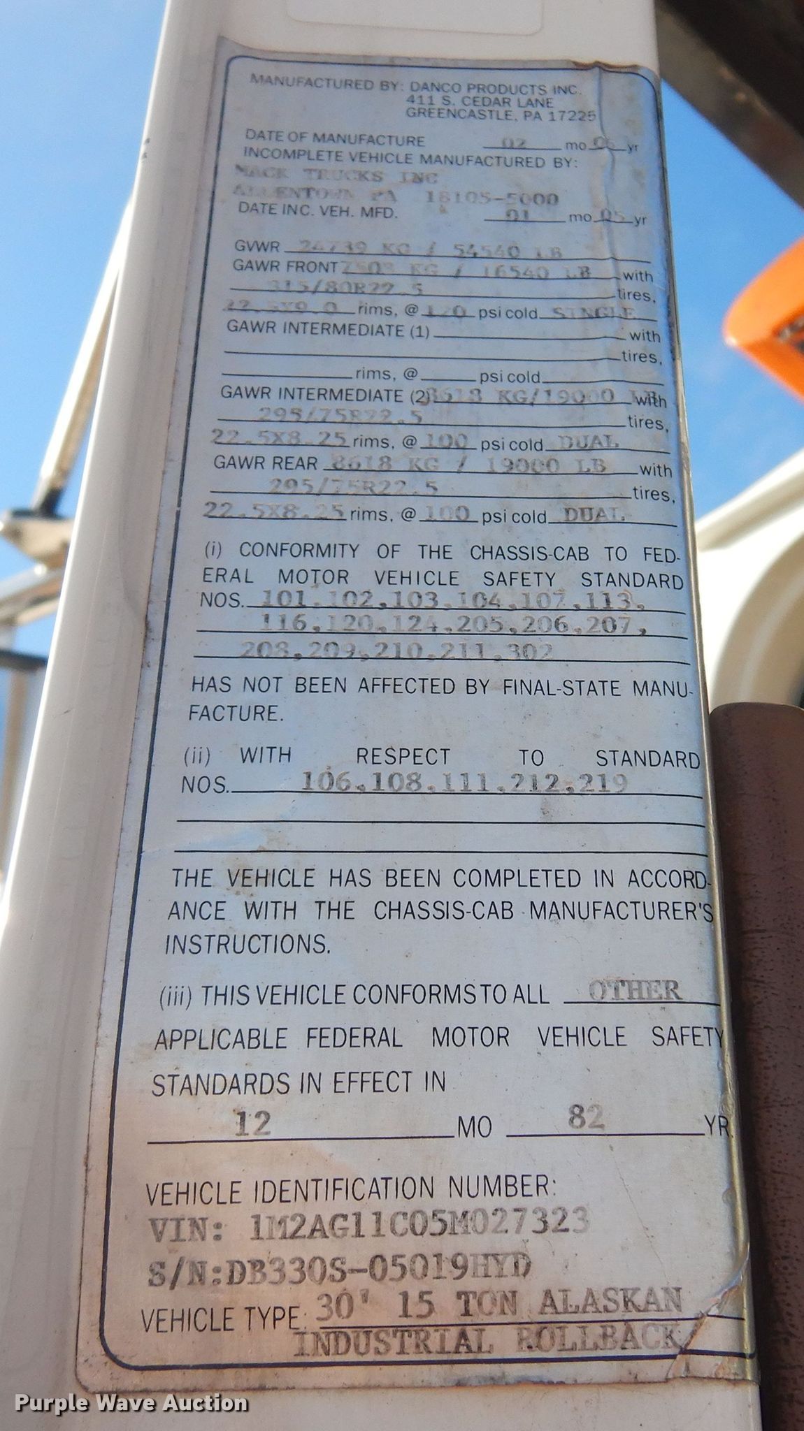 - VIN: 1M2AG11C05M027323