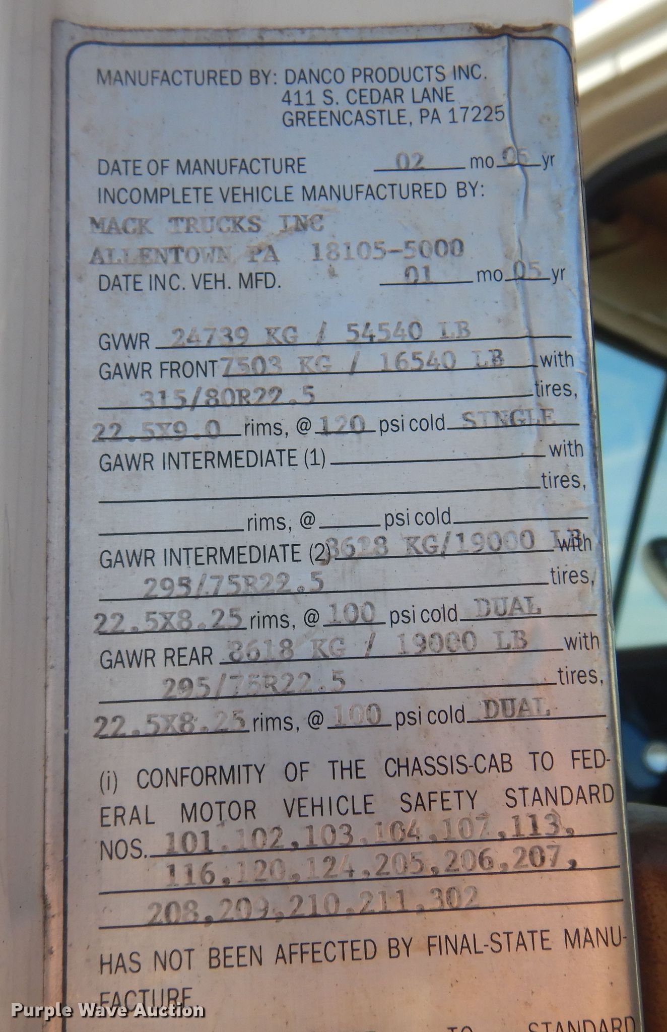 - GVWR: 54,540 lbs