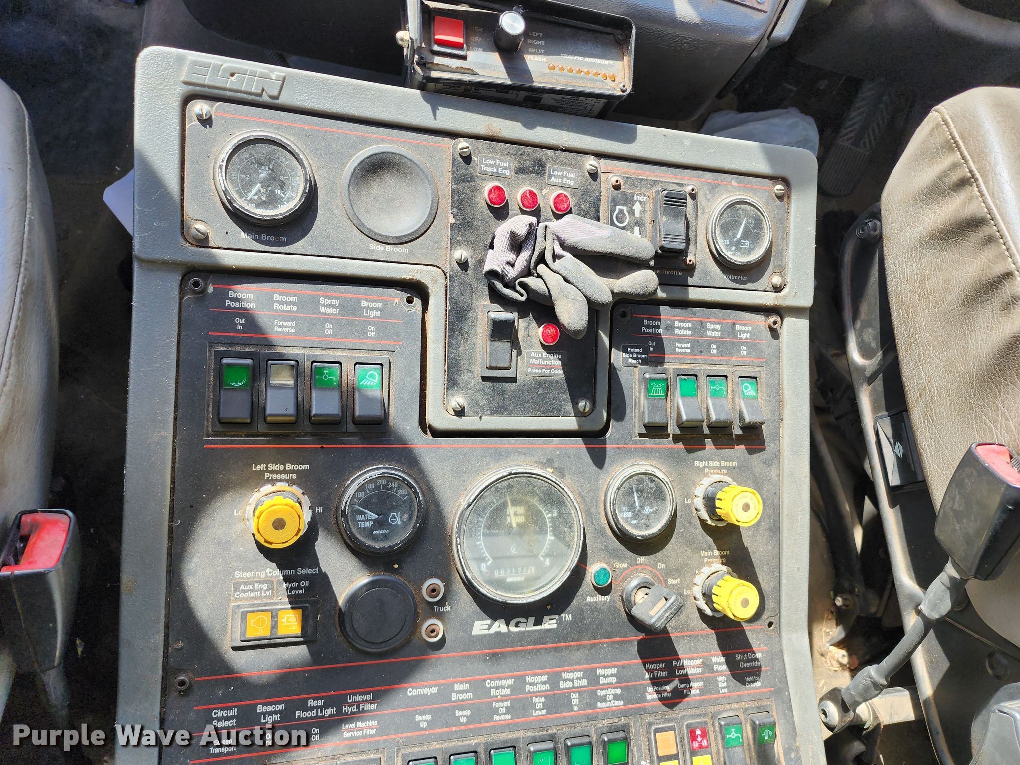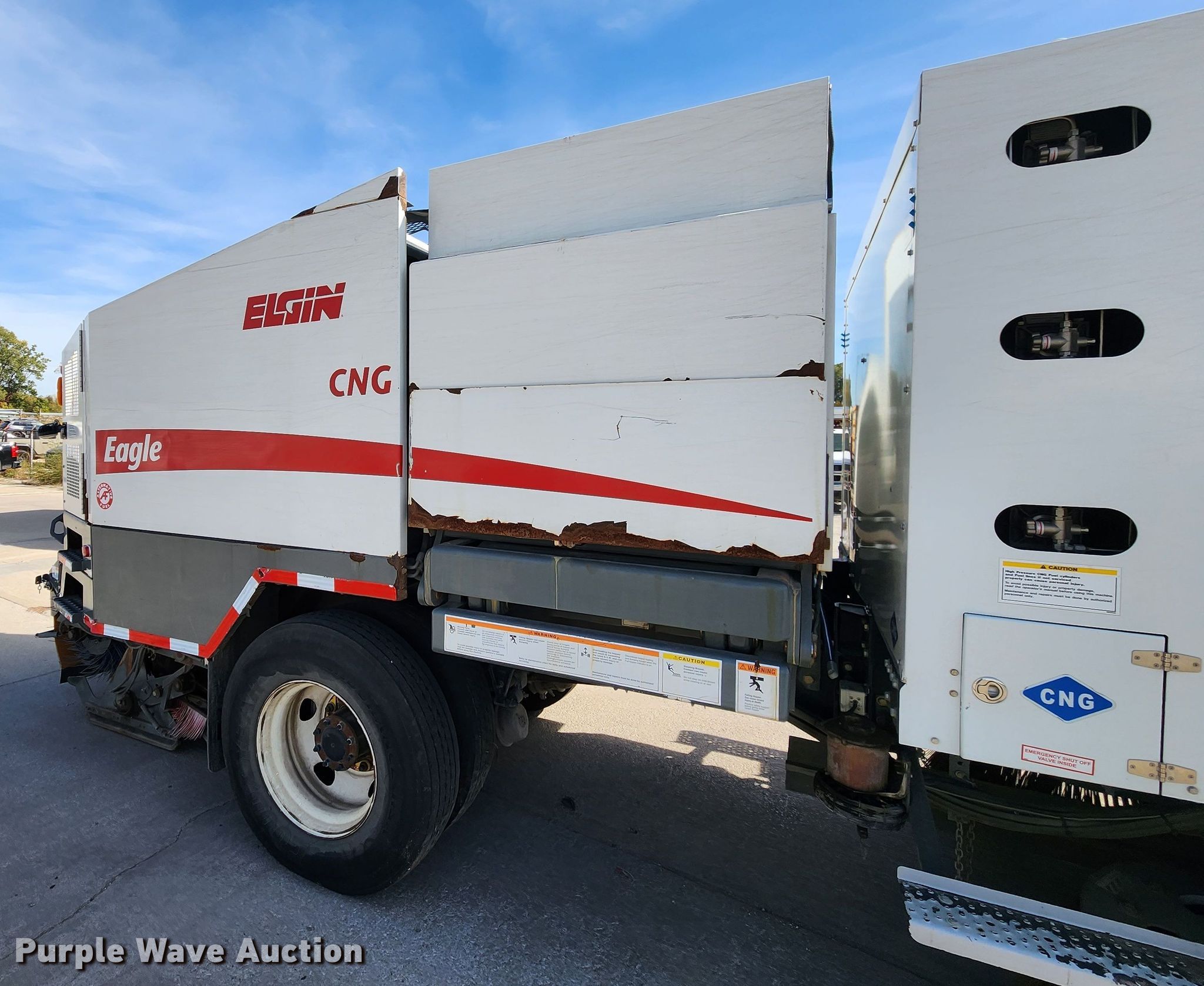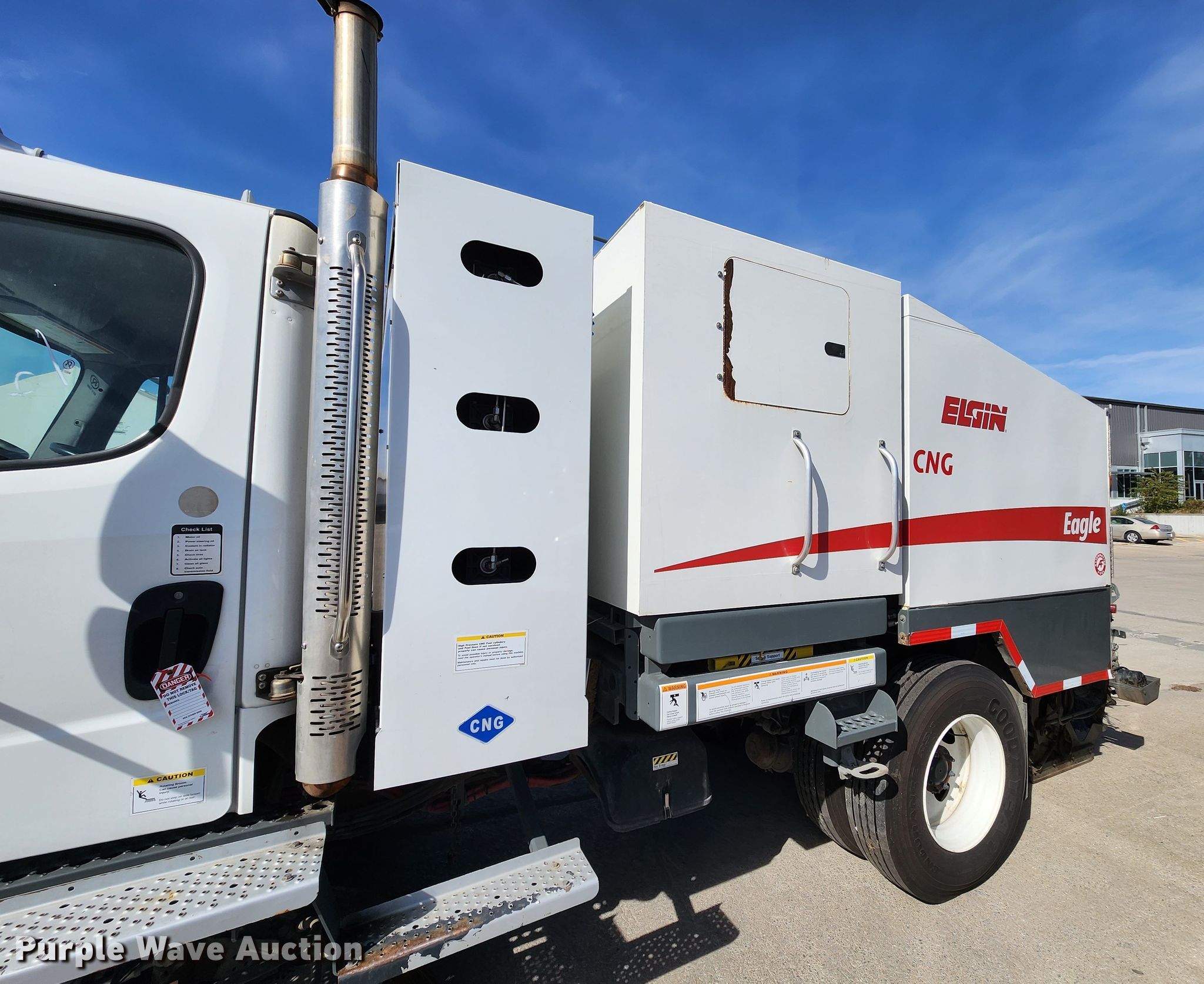 2014 Freightliner M2 106 street sweeper truck. Miles: 21,982 on odometer, VIN: 1FVXF8006EHFL2266, Unit #: 4361. Engine Cylinders: 6, Fuel type: CNG. Transmission Automatic. Chassis Brakes: Air. Operators station Enclosed cab, Heat, Dual operating station. Features Broom Width: 60", Water spray system, Sweeper bed Sweeper bed type: Conveyor Elgin Eagle, Left gutter broom Diameter: 32", Right gutter broom Diameter: 32", Engine Cylinders: 4, Fuel type: CNG, Hours: 3,192. Tires Size: 11R22.5. Notes Non-operational sweeper bed. Missouri title. City of Kansas City - Open inspection Nov. 14. 5304 Municipal Ave. Kansas City, MO 64120