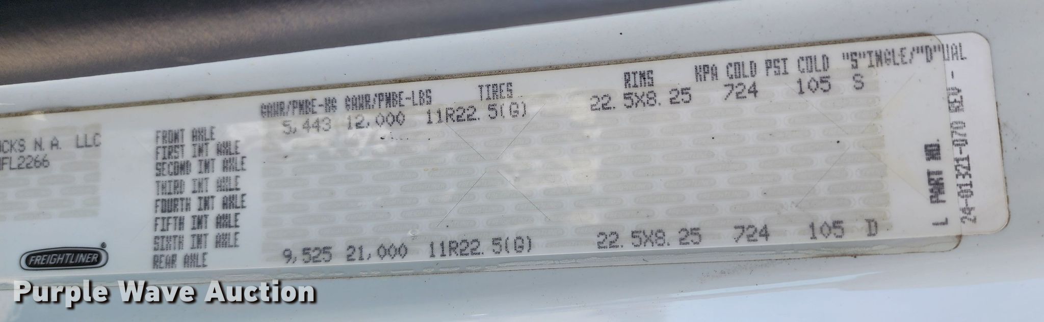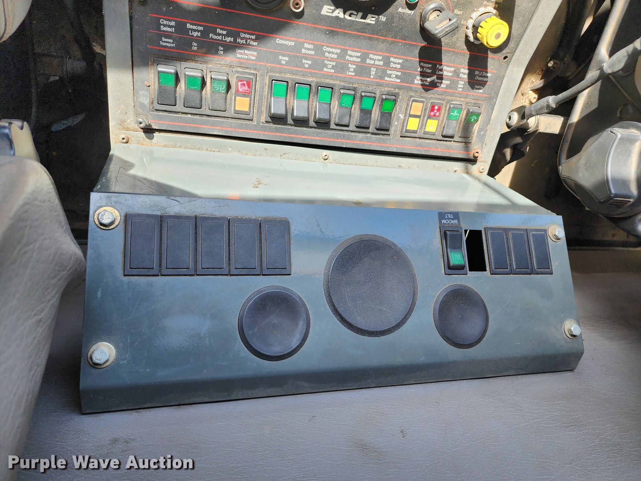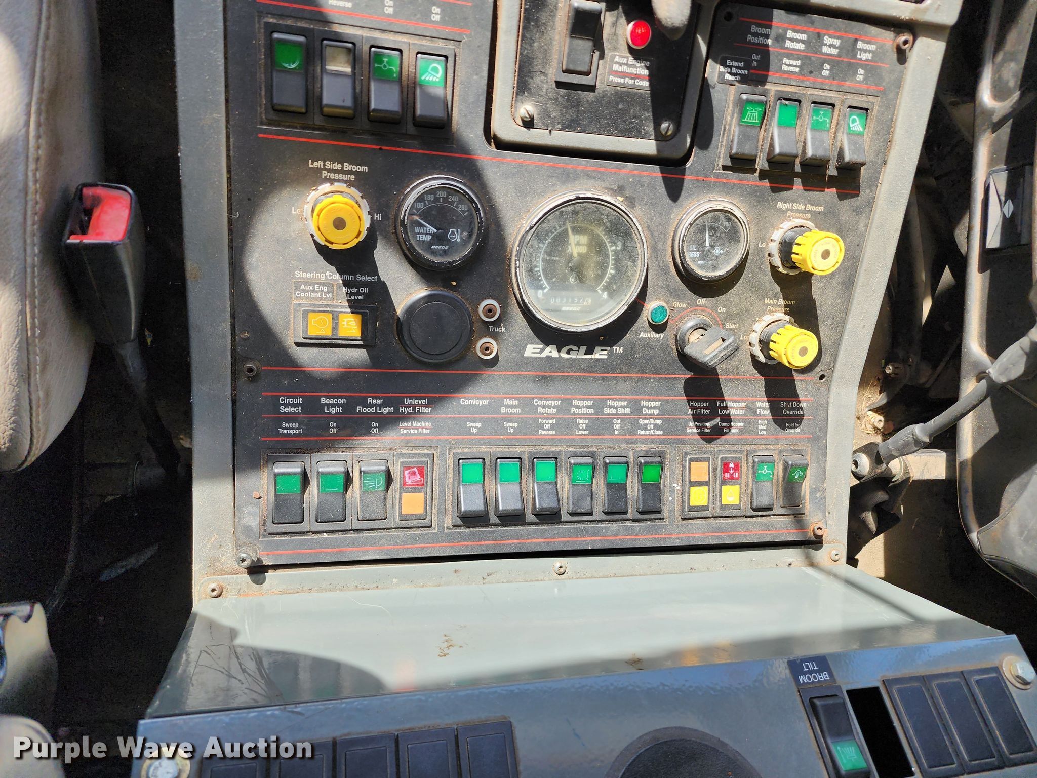 2014 Freightliner M2 106 street sweeper truck. Miles: 21,982 on odometer, VIN: 1FVXF8006EHFL2266, Unit #: 4361. Engine Cylinders: 6, Fuel type: CNG. Transmission Automatic. Chassis Brakes: Air. Operators station Enclosed cab, Heat, Dual operating station. Features Broom Width: 60", Water spray system, Sweeper bed Sweeper bed type: Conveyor Elgin Eagle, Left gutter broom Diameter: 32", Right gutter broom Diameter: 32", Engine Cylinders: 4, Fuel type: CNG, Hours: 3,192. Tires Size: 11R22.5. Notes Non-operational sweeper bed. Missouri title. City of Kansas City - Open inspection Nov. 14. 5304 Municipal Ave. Kansas City, MO 64120