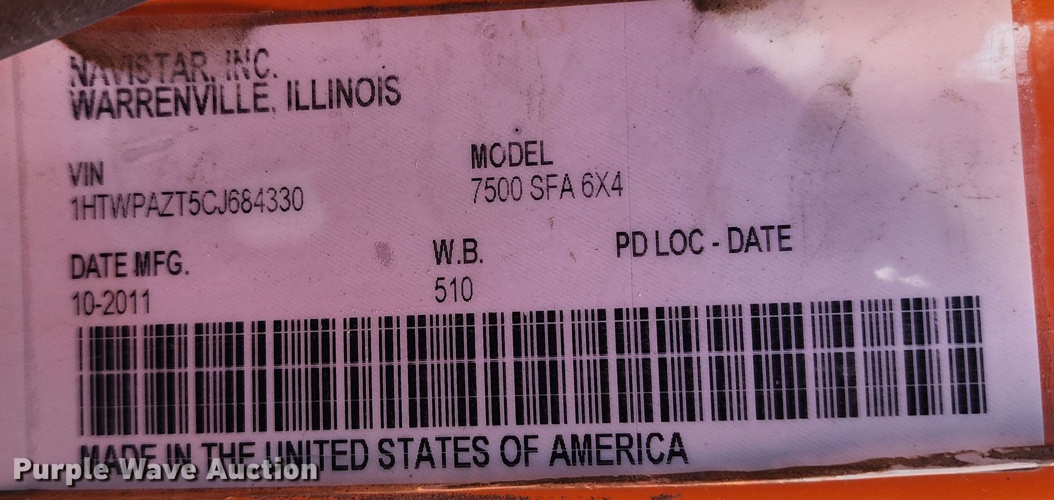 Purple Wave is selling a used Construction Dump Truck in Missouri. This item is a 2012 International 7500 dump truck with the following: Miles: Unknown, VIN: 1HTWPAZT5CJ684330, Unit #: 4116