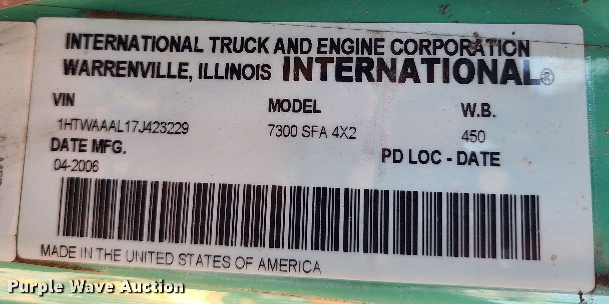 Purple Wave is selling a used Construction Dump Truck in Missouri. This item is a 2007 International 7300 dump truck with the following: Miles: Unknown, VIN: 1HTWAAAL17J423229, Unit #: 7392