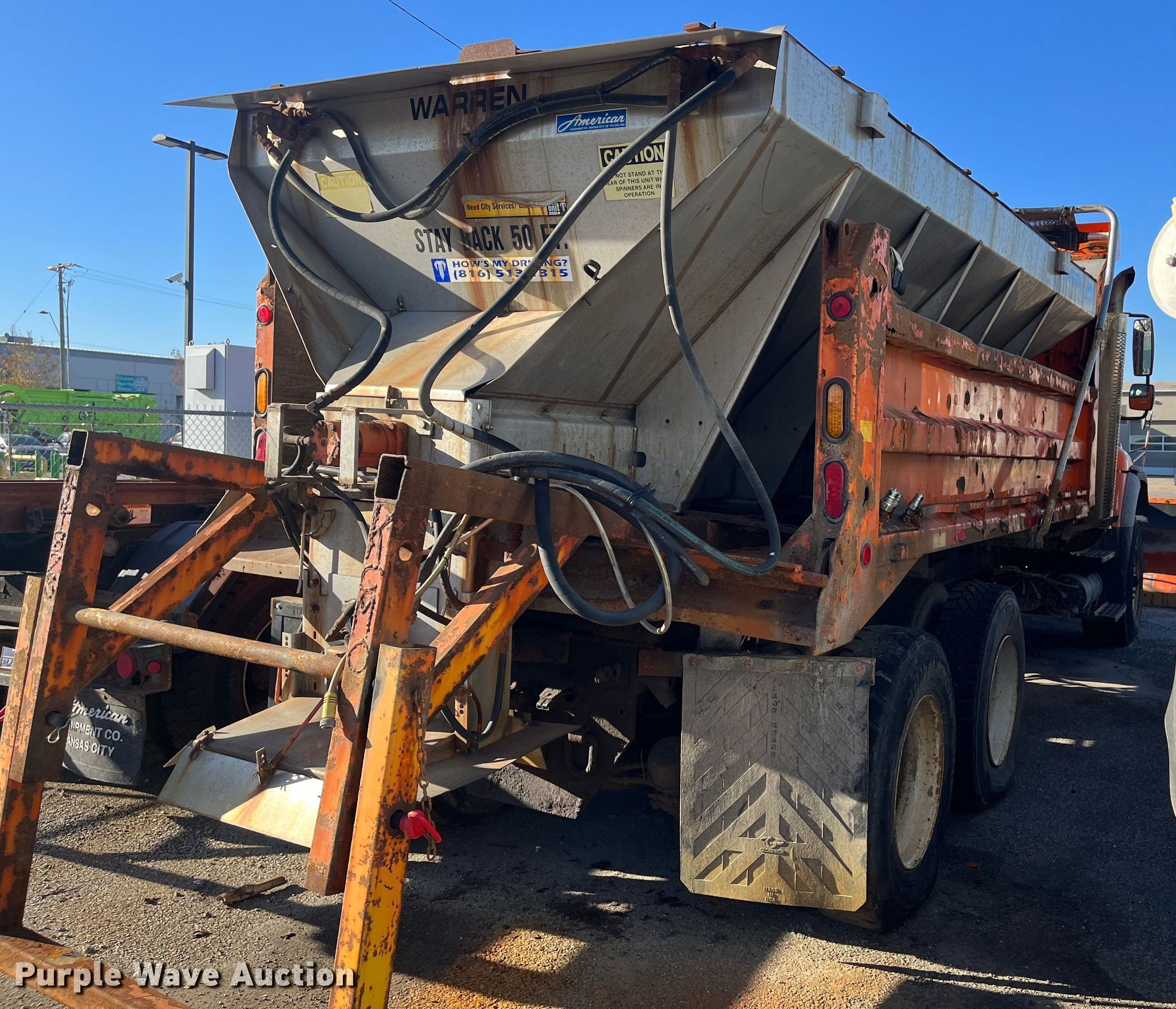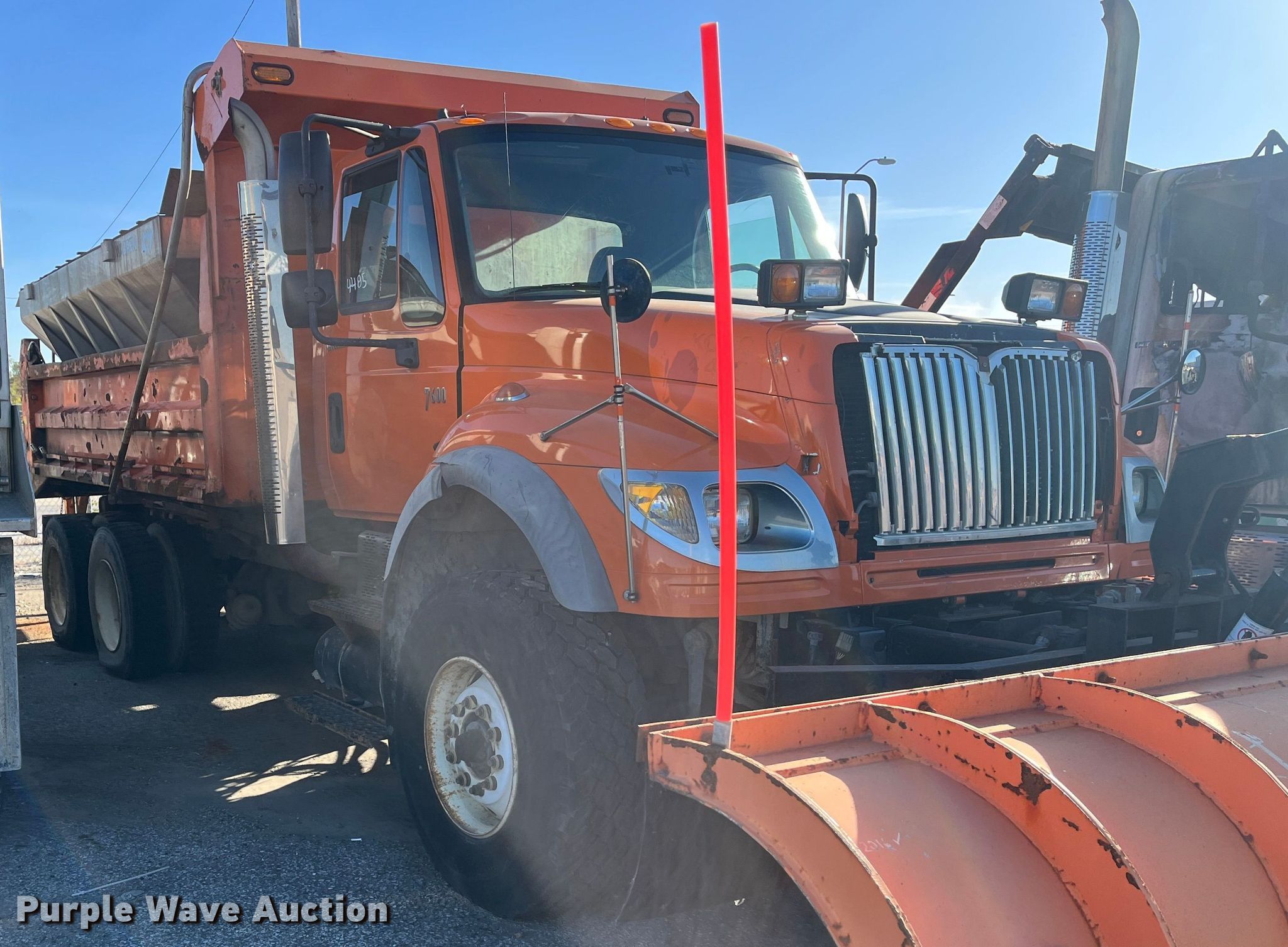 2007 International 7600 dump truck. Miles: Unknown, VIN: 1HTWYSBT17J470275, Unit #: 4485. Engine Caterpillar, Displacement: 12.5L, Cylinders: 6, Fuel type: Diesel. Transmission Allison, Automatic. Chassis Double frame, Axles: Tandem, Differential lock: Inter-axle, Suspension: Walking beam, Brakes: Air, Front mount PTO. Interior AC, Heat, Heated mirrors, Cruise control. Features Dump bed Warren, 15' L x 102" W, Side height: 32", Bed type: Steel, Roll tarp, Ram: Single , End gate: Air operated, Spreader Warren AC240014, Snow plow Henke, Width: 120". Tires Front: 425/65R22.5, Rear: 11R22.5. Notes End gate may be missing, Dead battery, Unknown operating condition. Missouri title. Mileage has not been verified. Exempt will be written in the odometer disclosure on the title. City of Kansas City - Open inspection Nov. 14. 5304 Municipal Ave. Kansas City, MO 64120