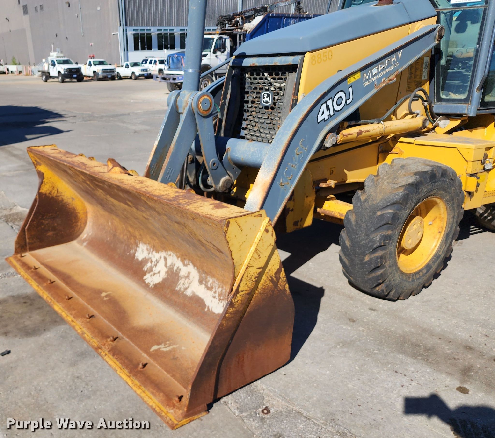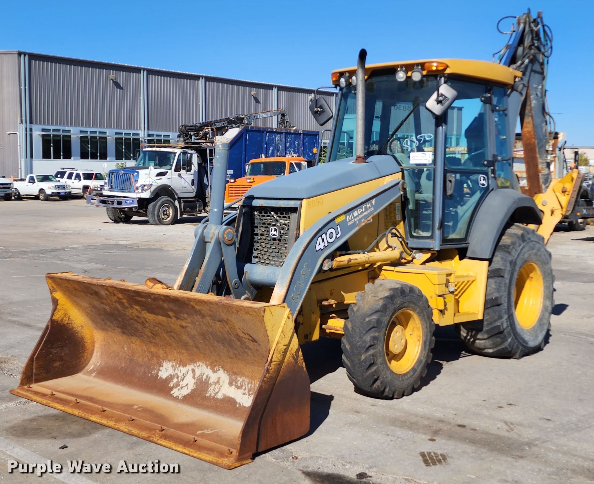 2012 John Deere 410J backhoe. Hours: 5,896 on meter, Serial: 1T0410JXLBD210464, Unit #: 8850. Engine Cylinders: 4, Fuel type: Diesel. Transmission Powershift, 4F - 3R. Chassis Four wheel drive. Operators station Enclosed cab, AC, Heat, Backhoe controls: Wobble stick / two stick. Features Loader Bucket Width: 92", Backhoe Extendable stick, Quick coupler: Manual, Auxiliary hydraulics, Bucket Width: 18", Cutting edge: Bolt-on.. Tires Front: 12.5/80R18, Rear: 21-24. Notes Dead battery. City of Kansas City - Open inspection Nov. 14. 5304 Municipal Ave. Kansas City, MO 64120