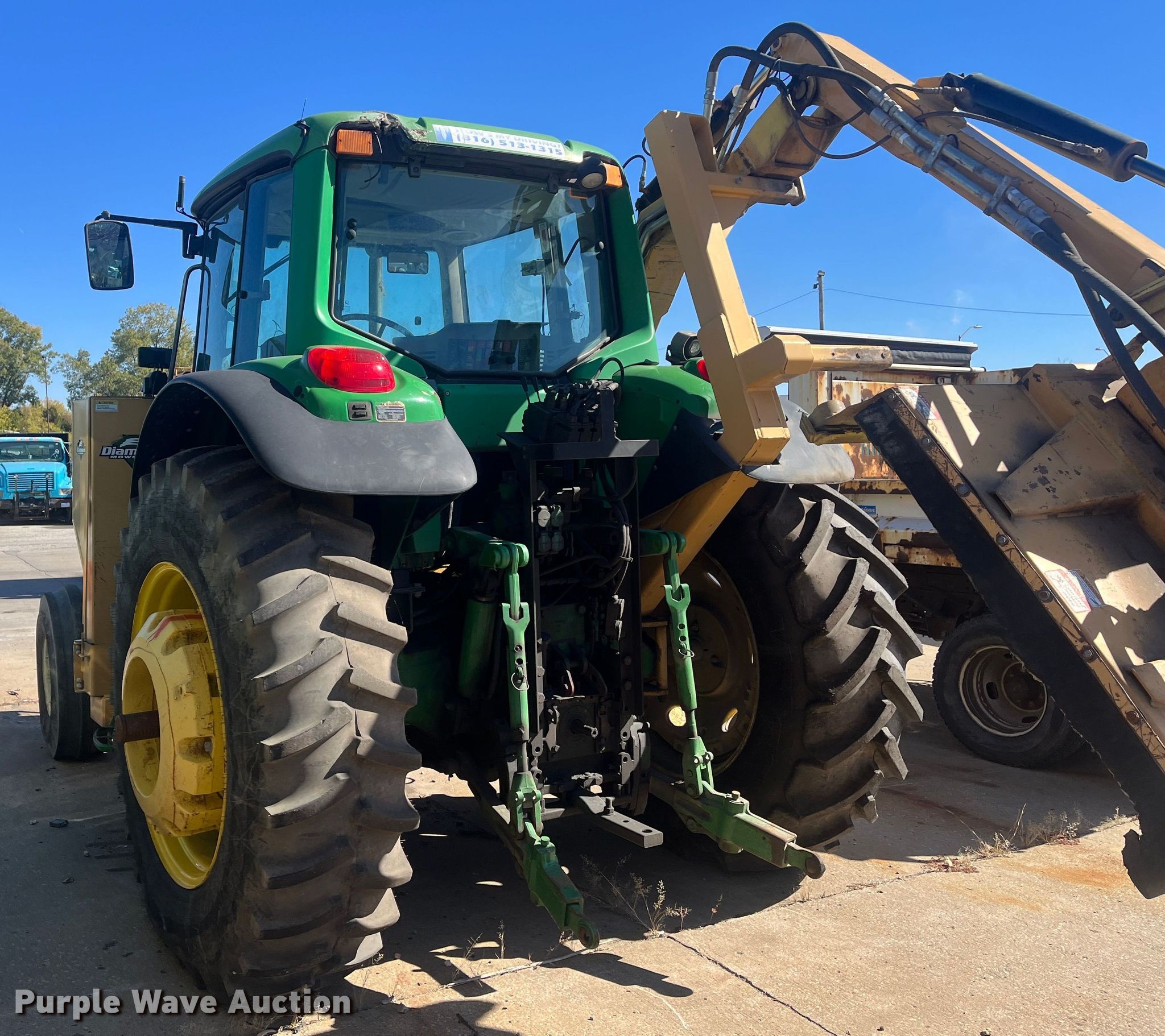 2006 John Deere 7420 tractor. Hours: Unknown, Serial: RW7420R051466, Unit #: 7692. Engine John Deere, Serial: PE6068H578648, Displacement: 6.8L, Cylinders: 6, Fuel type: Diesel. Transmission Quad-range, 16F - 16R, Left-hand reverser, Differential lock. Operators station AC, Heat. Features PTO: 540, Three point, Seven pin outlet, Hydraulic remote sets Rear: 3, Loader Controls: Joystick, Diamond side boom mower (3) blades , Cutting width: 52". Tires Front: 11.00-16, Rear: 480/8038, Wheel weights: 4. Notes Dead battery, Non-operational hood, Electrical issues. City of Kansas City - Open inspection Nov. 14. 5304 Municipal Ave. Kansas City, MO 64120
