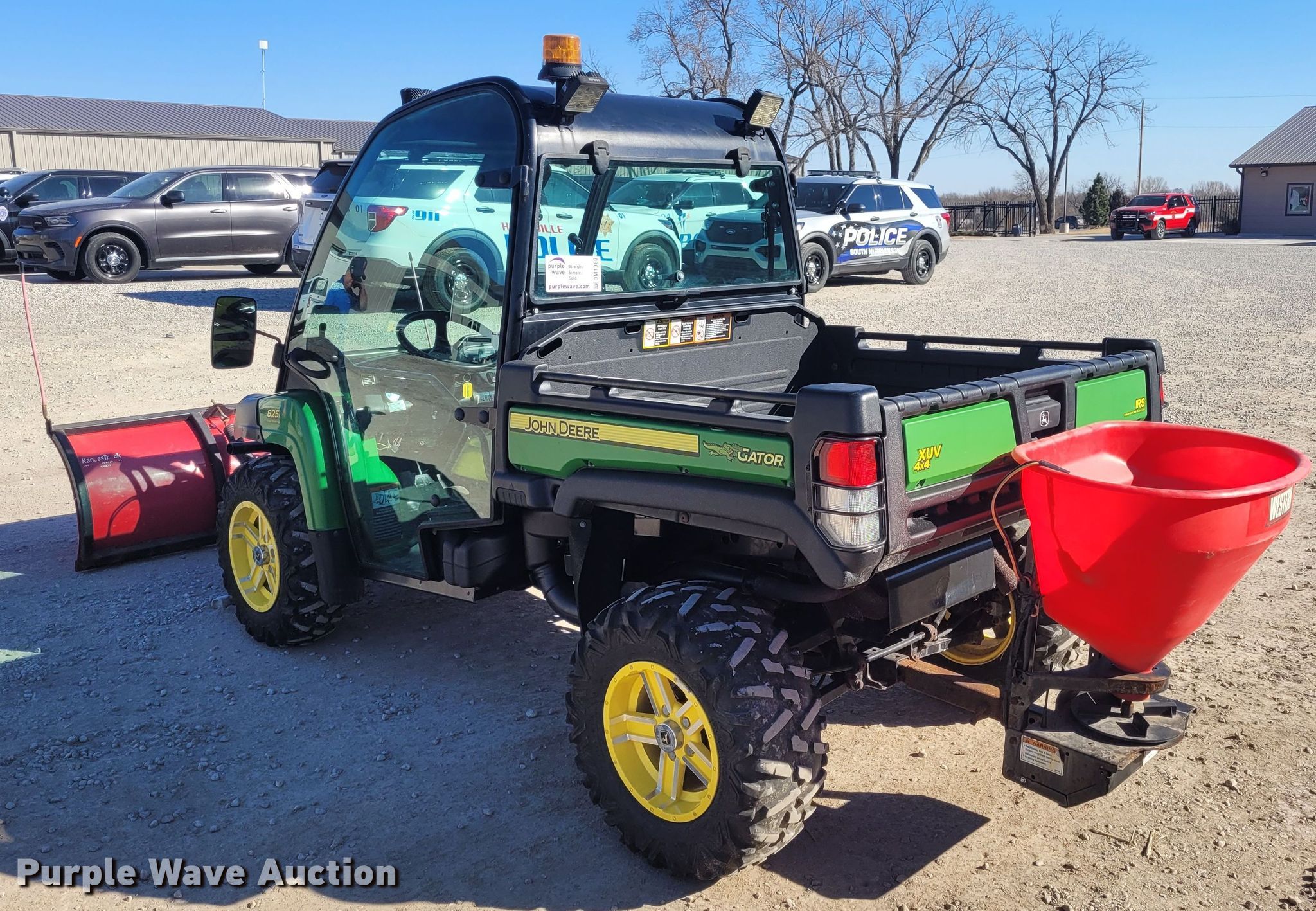 2015 John Deere 825i Gator utility vehicle. Miles: 1,697 on odometer, Hours: 516 on meter, VIN: 1M0825GEEFM103802. Engine Displacement: 812 cc, Fuel type: Gas, Electric start. Transmission Automatic. Chassis Four wheel drive. Operators station Enclosed cab, Heat. Features Receiver hitch, Dump bed Dump bed type: Manual, The Boss snow plow Width: 6, Western spreader. Tires Front: 27x9.00R14, Rear: 27x11.00R14. Notes Steering components replaced. View repairs. Kansas title. Title distribution may be delayed up to 30 days from verification of funds. Superior Landscape Management Inc.. Andover, KS 67002