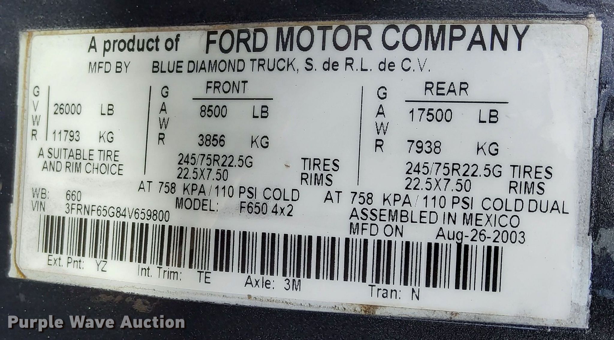 Purple Wave is selling a used Flat Bed Truck in Kansas. This item is a 2004 Ford F650 Super Duty flatbed truck with the following: Miles: 238,679 on odometer, VIN: 3FRNF65G84V659800